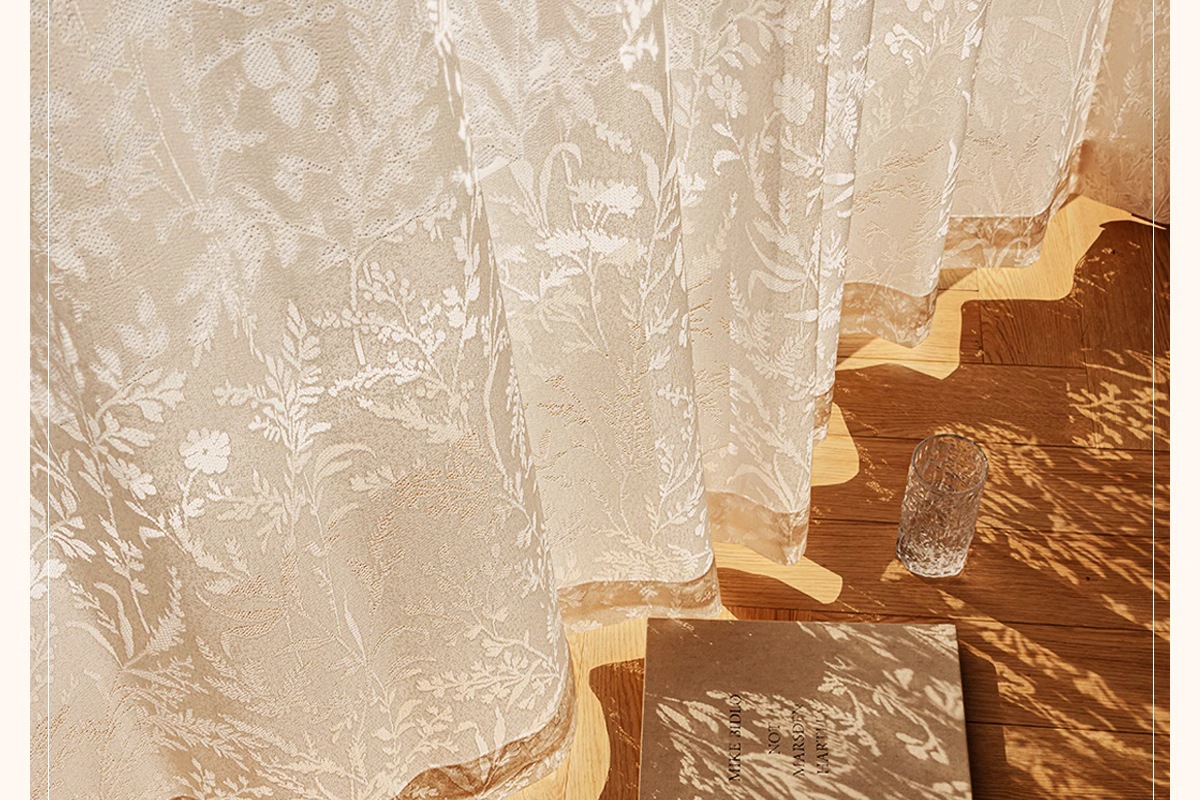 프랑스 낭만적 인 중공 거즈 커튼 투명한 구불 구불 한 달 지점 그림자 침실 발코니 거실 빛 고급 햇빛