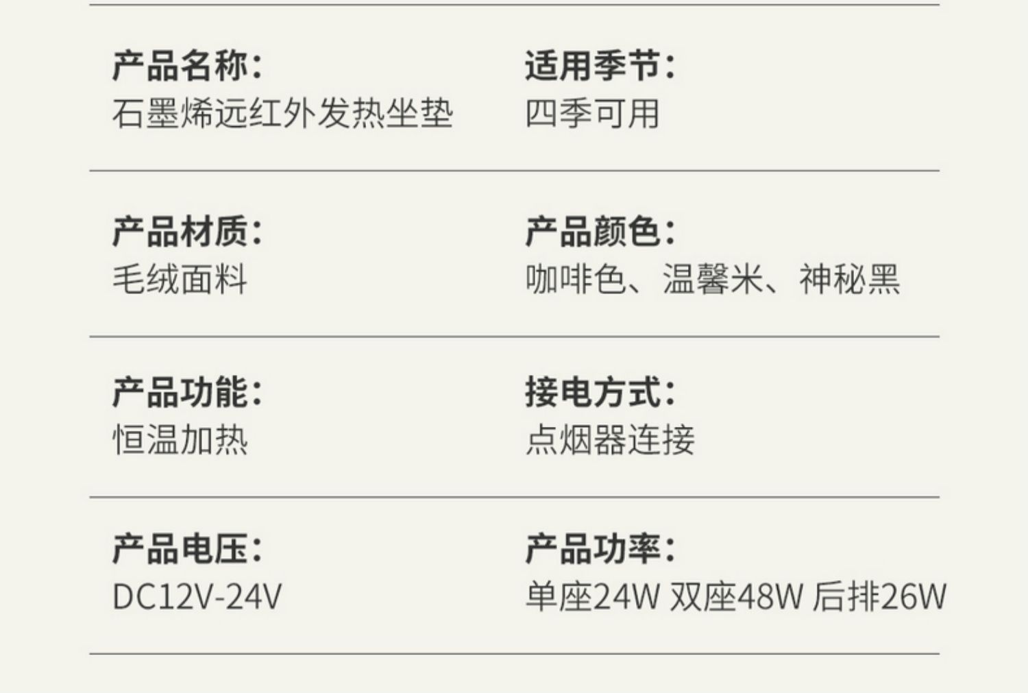 • [그래핀히팅] 뒷좌석-커피색상★3초만에 빠른 가열★자동 시작 및 중지