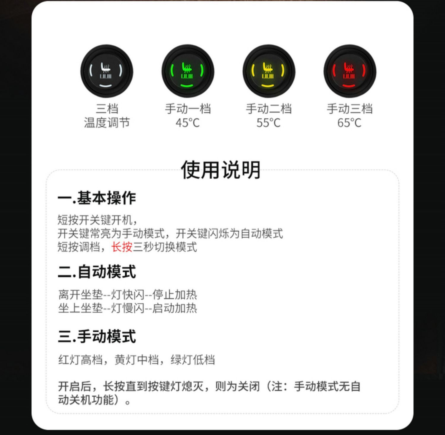 • [그래핀히팅+요추받침+요추마사지] 5인승 차량 - 블랙★3초만에 빠른 가열★시작하고 중지하세요