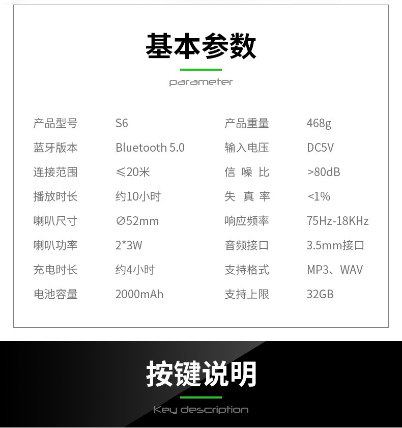 S6 무선 블루투스 스피커 홈 과체중 서브 우퍼 야외 휴대 전화 미니 스피커 휴대용 카드 USB 디스크