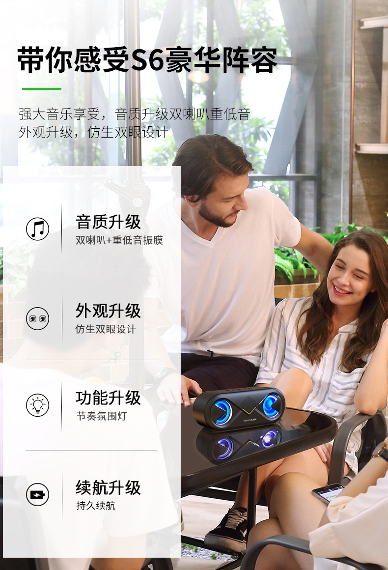 S6 무선 블루투스 스피커 홈 과체중 서브 우퍼 야외 휴대 전화 미니 스피커 휴대용 카드 USB 디스크스토어 가기