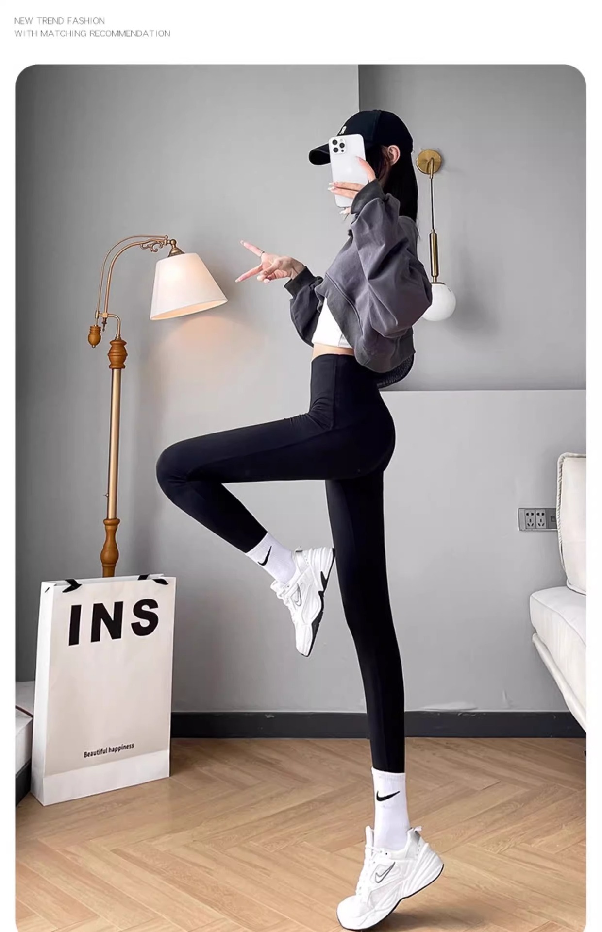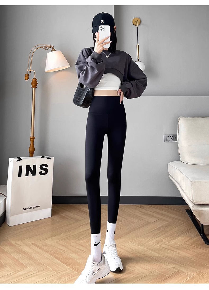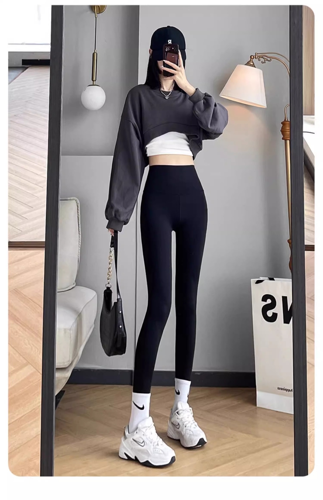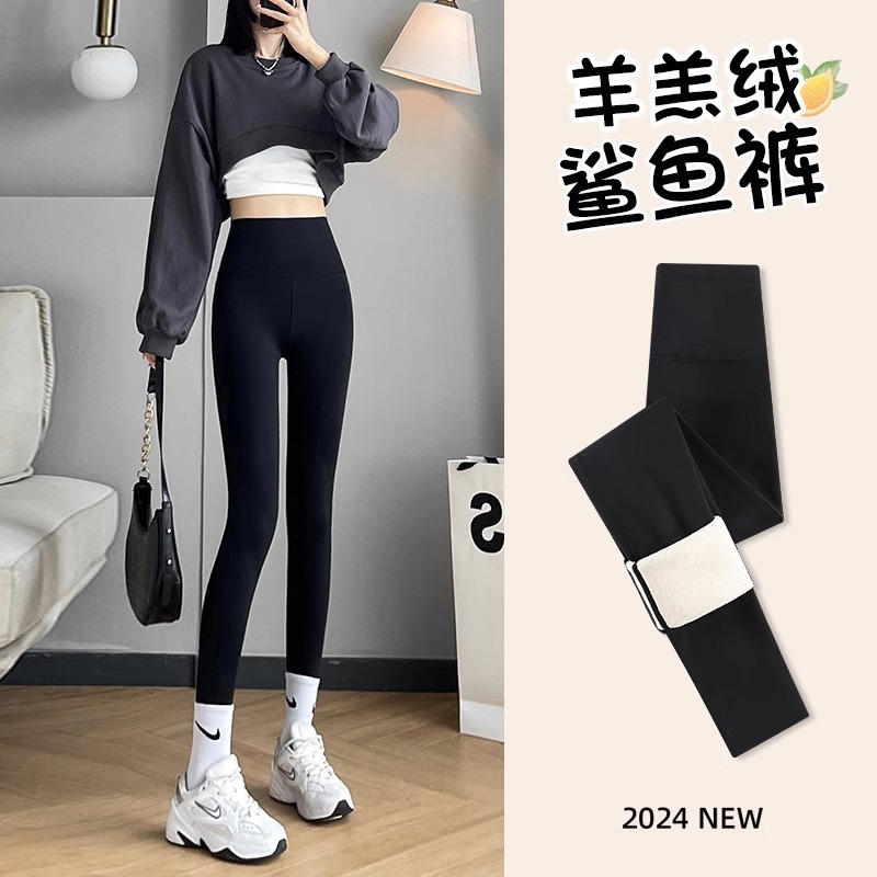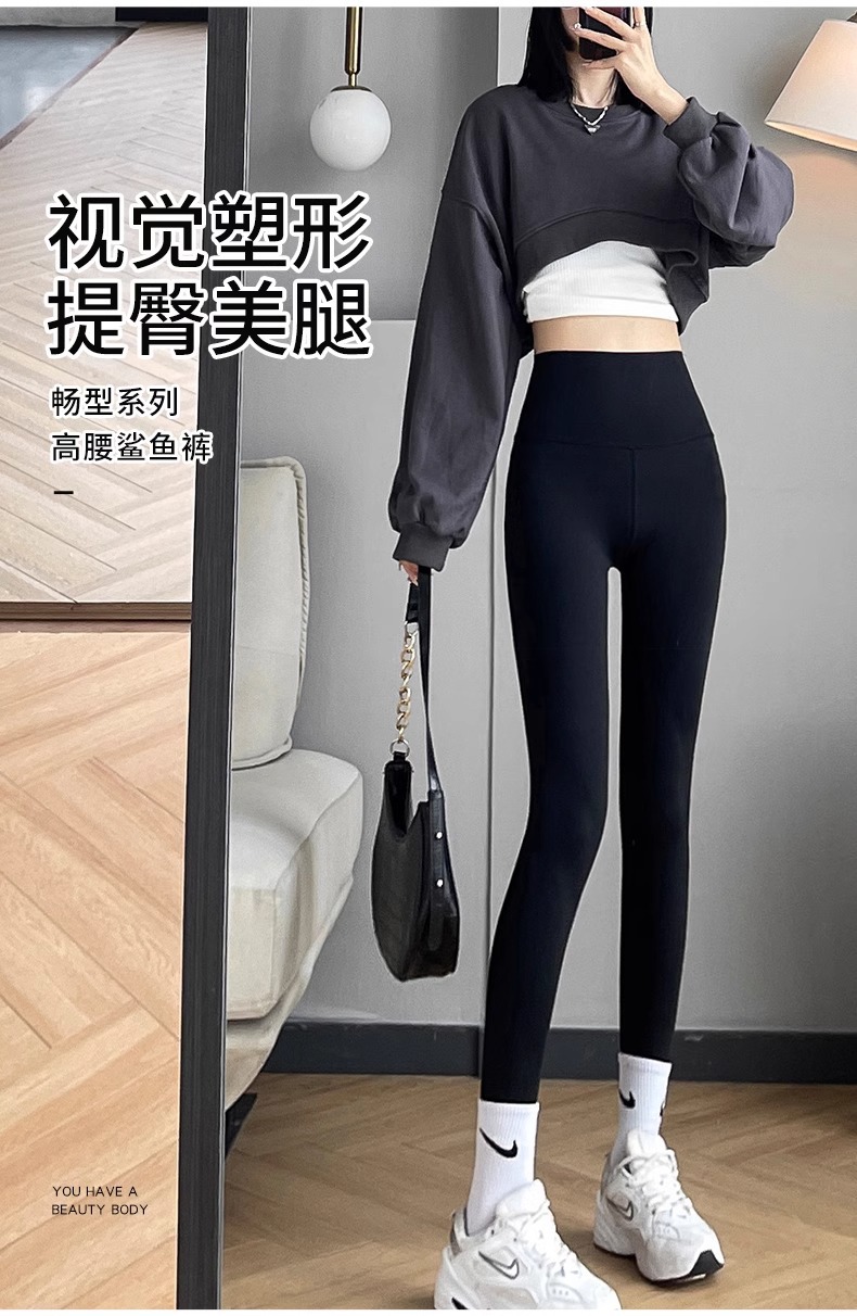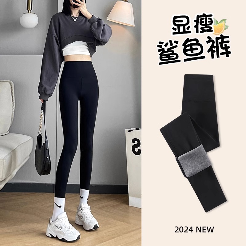 상어 바지 여성 외부는 봄과 가을 2025 새로운 가을과 겨울 기모 검은 높은 허리 슬리밍베이스 요가 바비 바지스토어 가기
