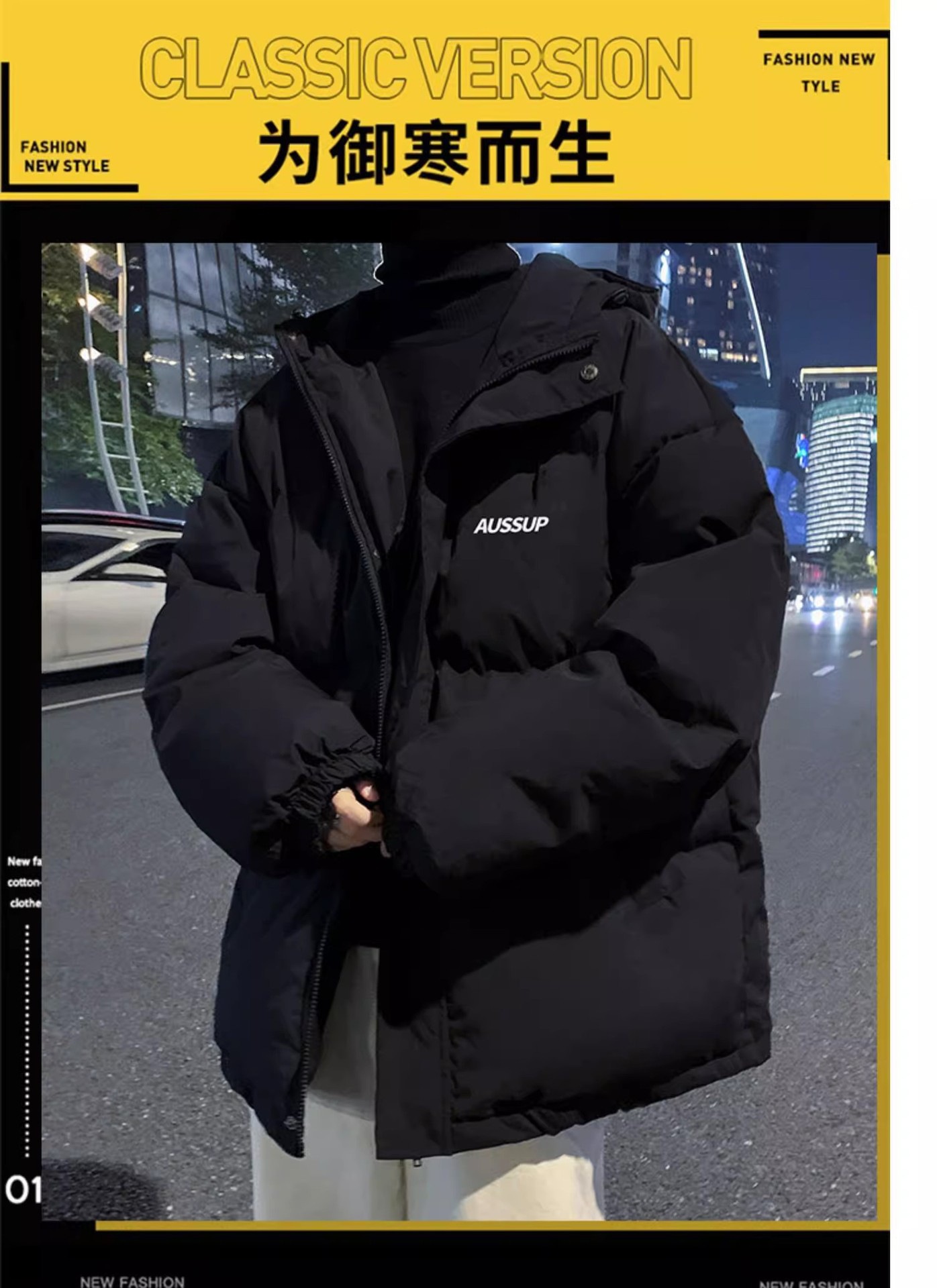 다운 코튼 패딩 재킷 남성용 겨울 2024 새로운 두꺼운 재킷면 패딩 재킷 코트 트렌디 한 플러스 사이즈 패딩 재킷 빵 의류스토어 가기