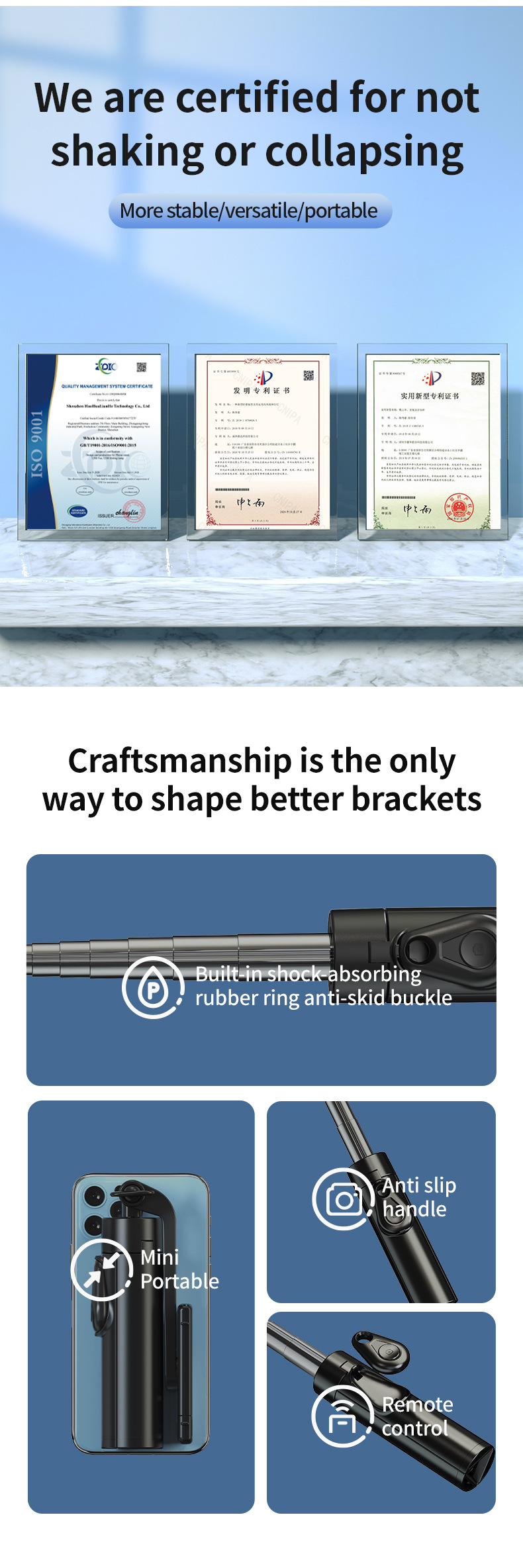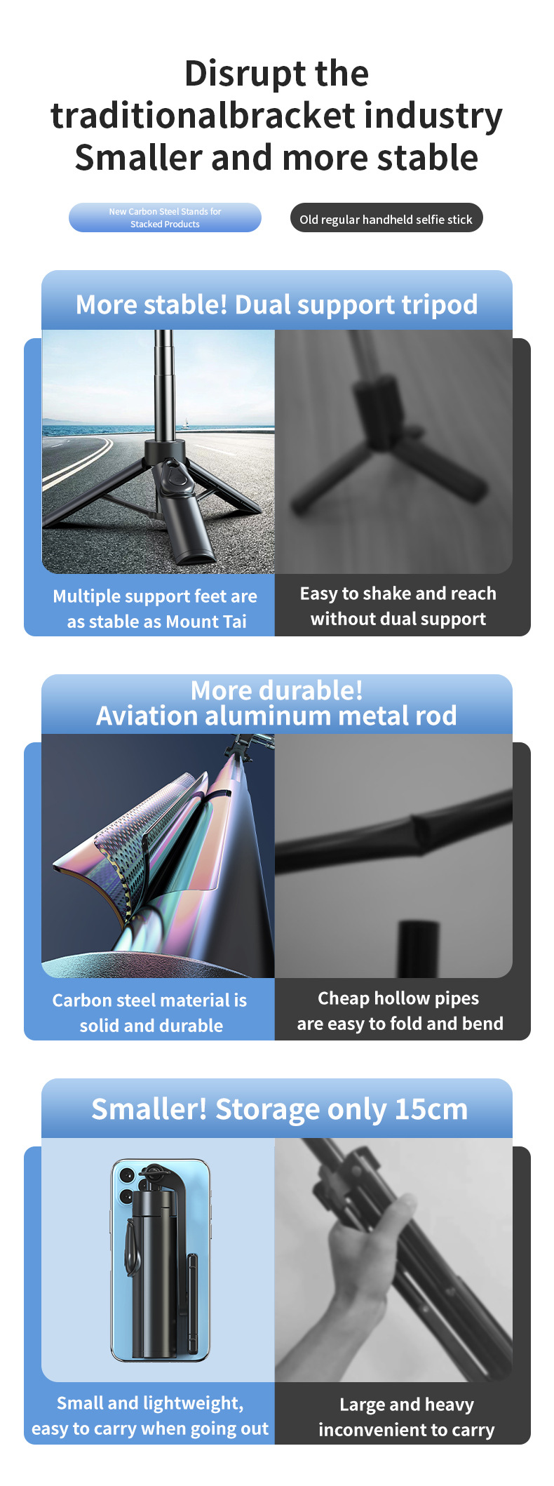 새로운 휴대 전화 셀카 스틱 미니 시리즈 휴대 전화 홀더 통합 휴대용 텔레스코픽 블루투스 사진 셀카 스틱스토어 가기