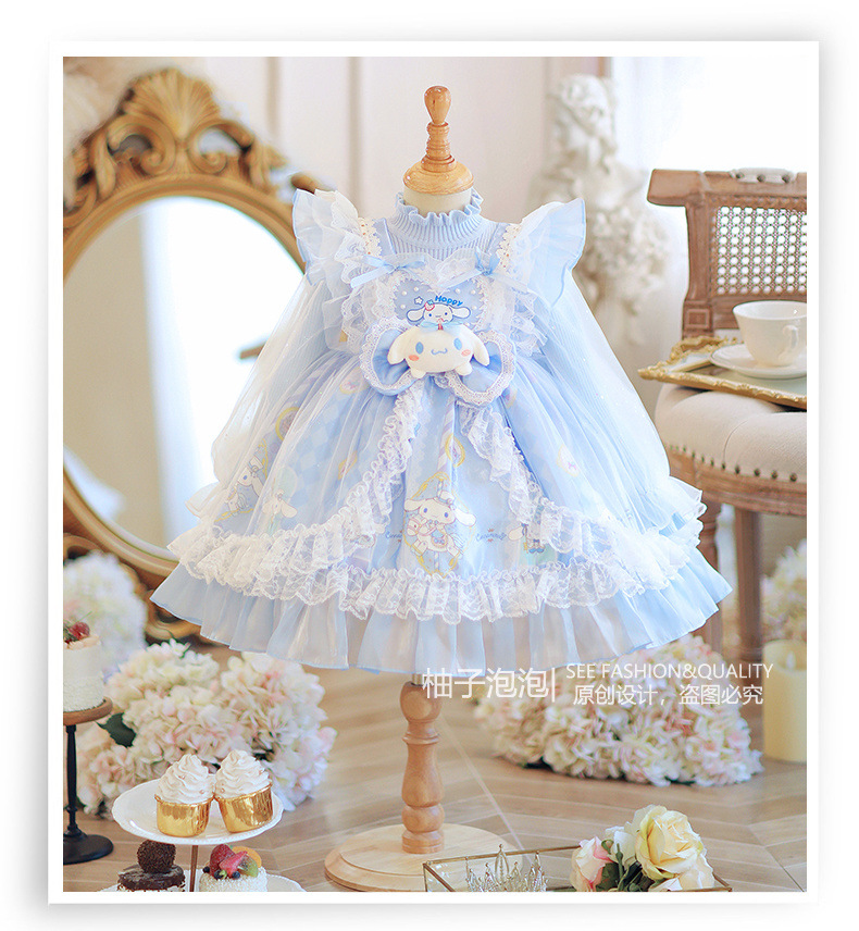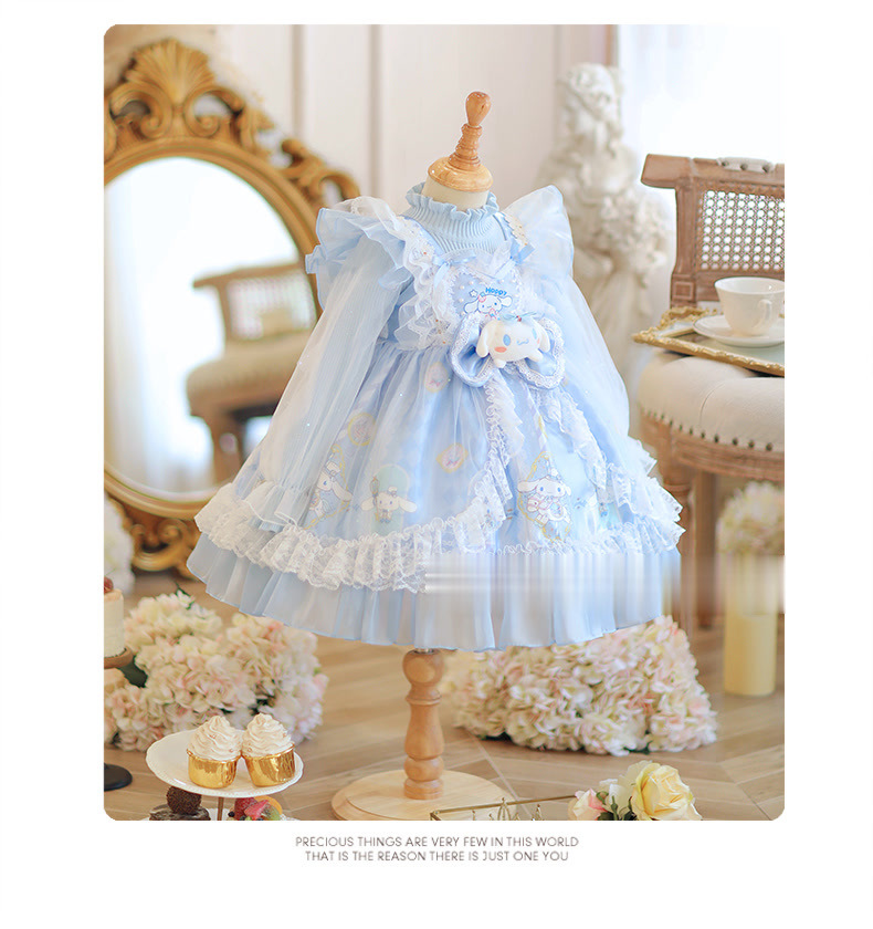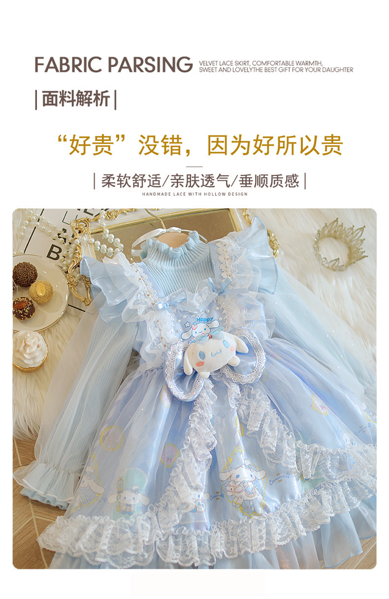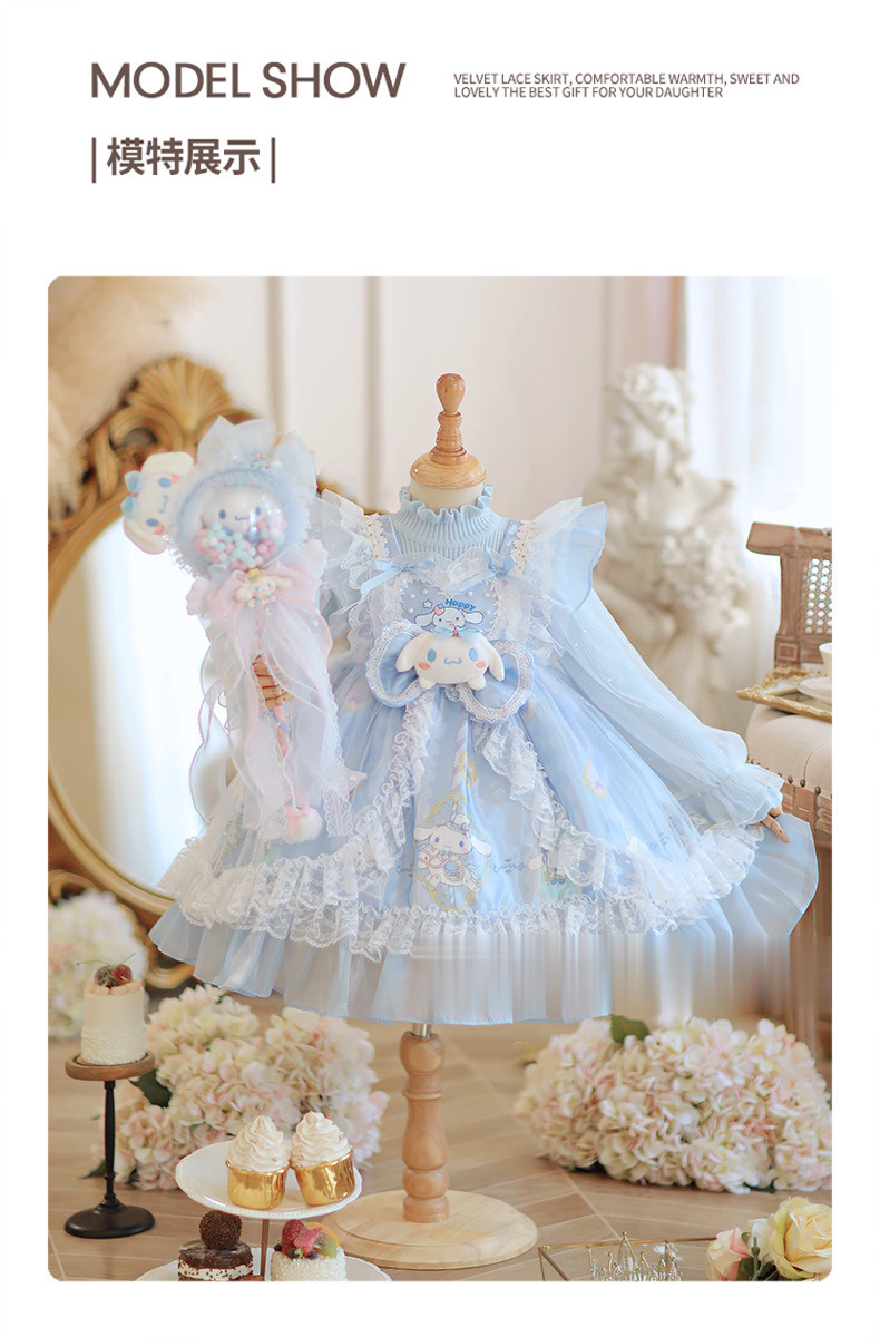 여자 유구이 개 원피스 가을과 겨울 새로운 어린이 니트 로리타 폰테 원피스 아기 생일 원피스 호스트