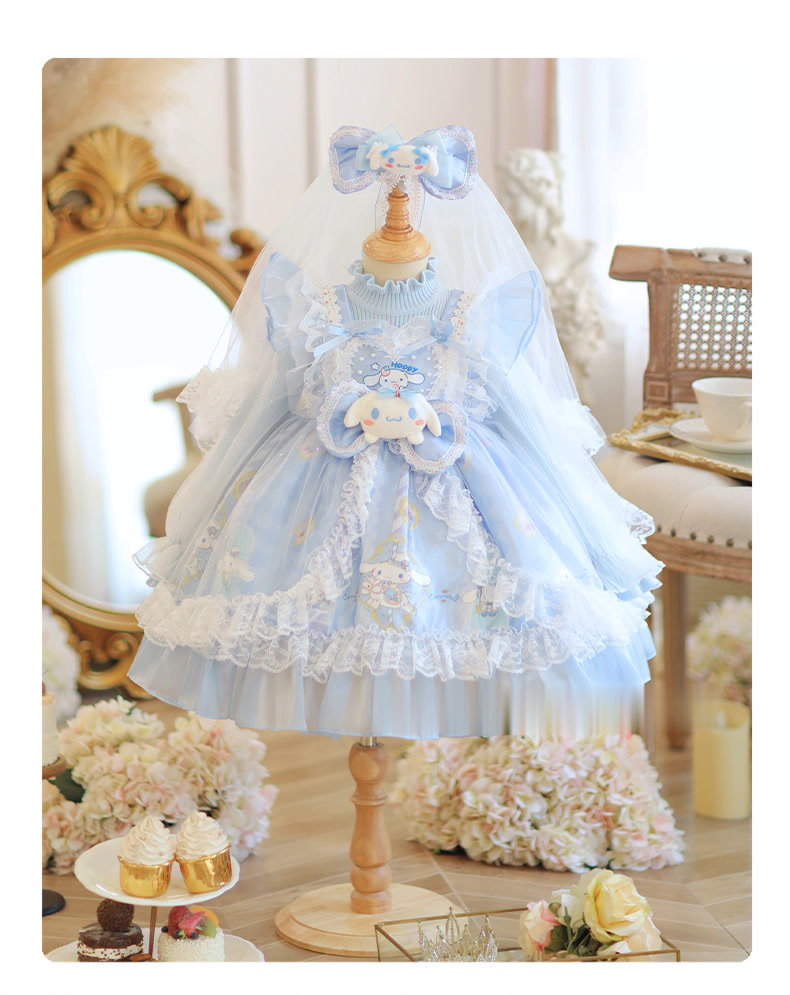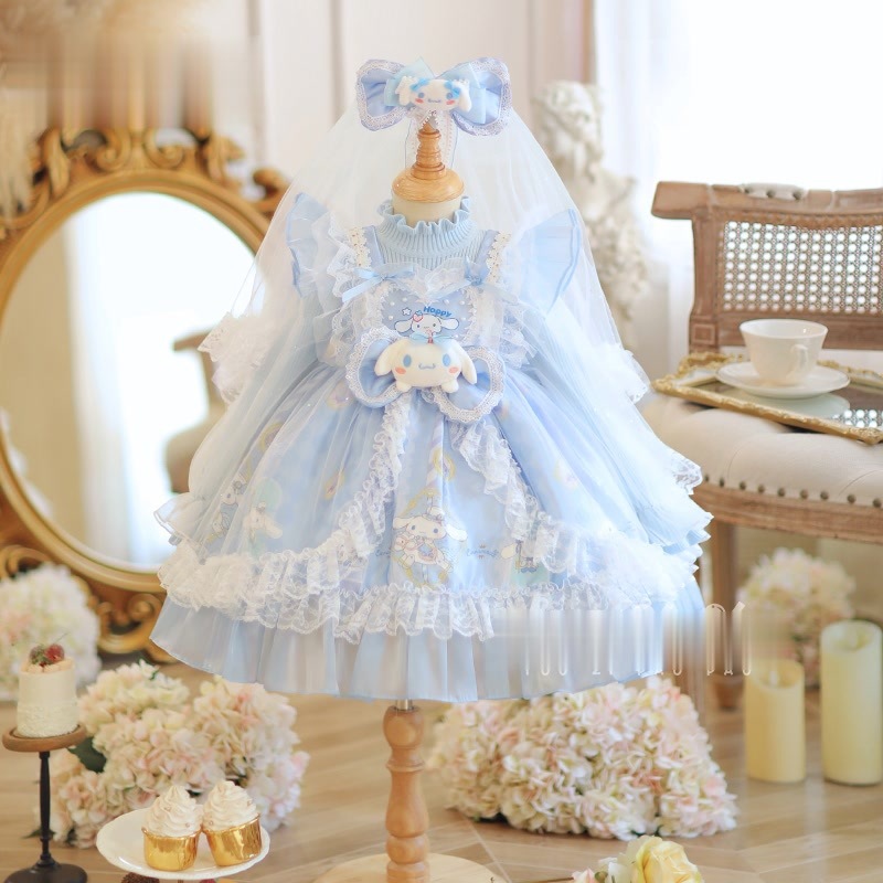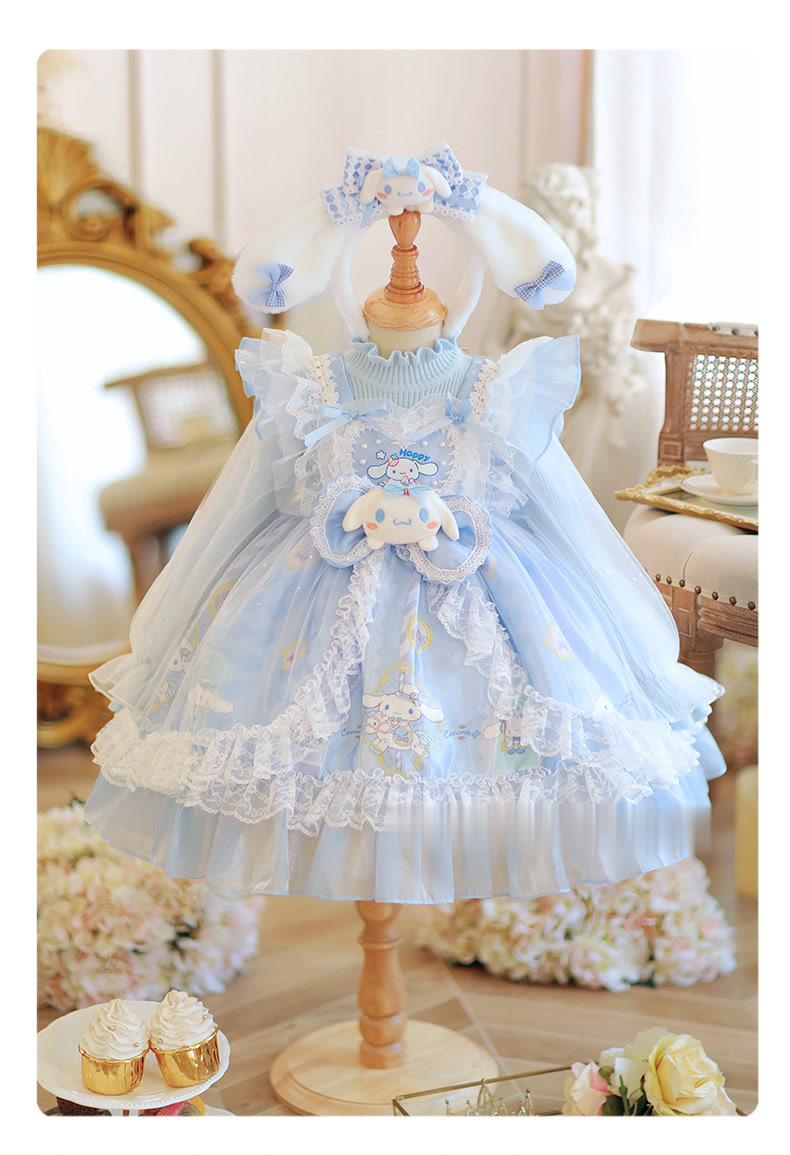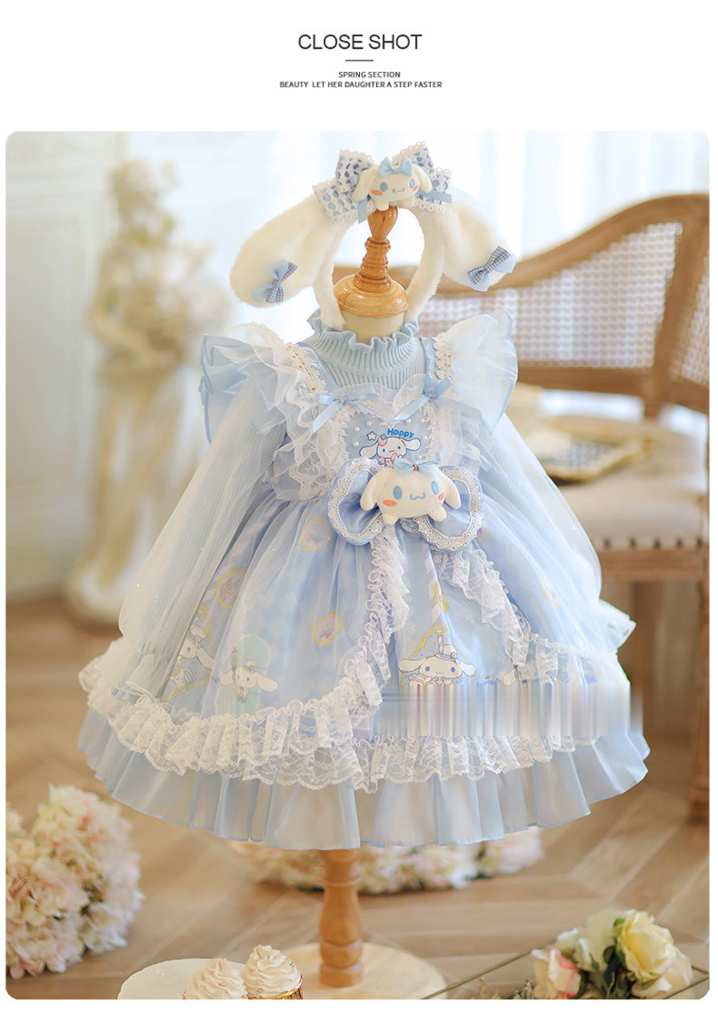 여자 유구이 개 원피스 가을과 겨울 새로운 어린이 니트 로리타 폰테 원피스 아기 생일 원피스 호스트
