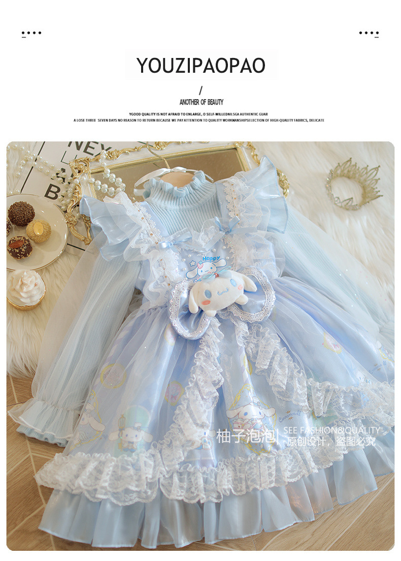 여자 유구이 개 원피스 가을과 겨울 새로운 어린이 니트 로리타 폰테 원피스 아기 생일 원피스 호스트스토어 가기
