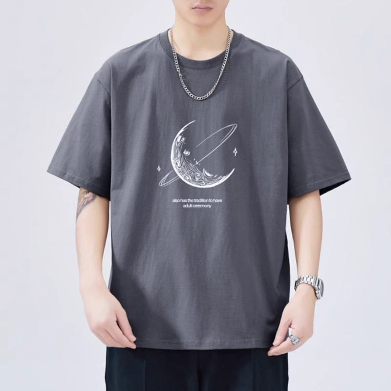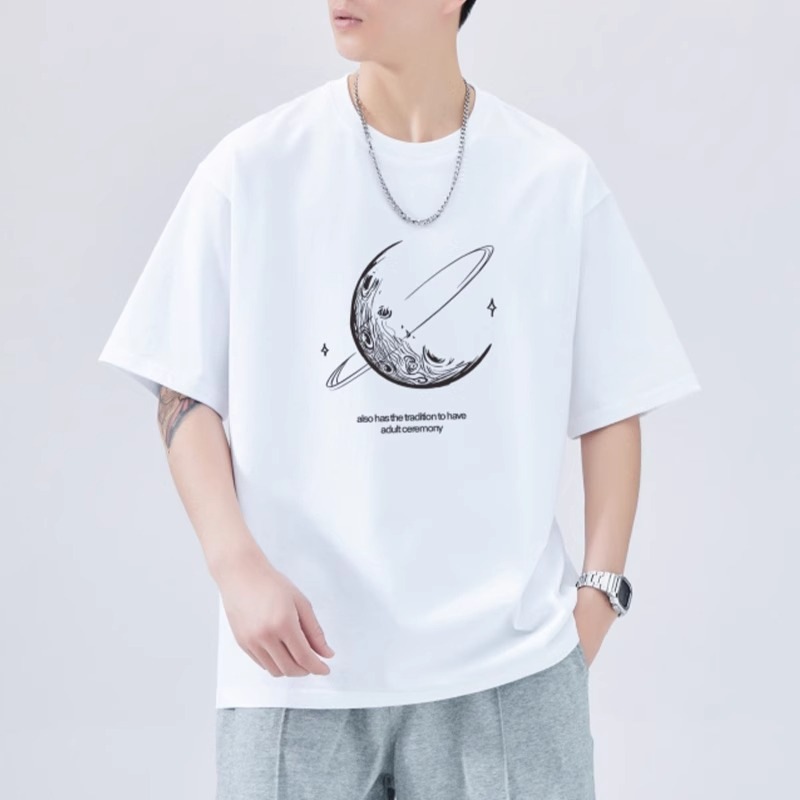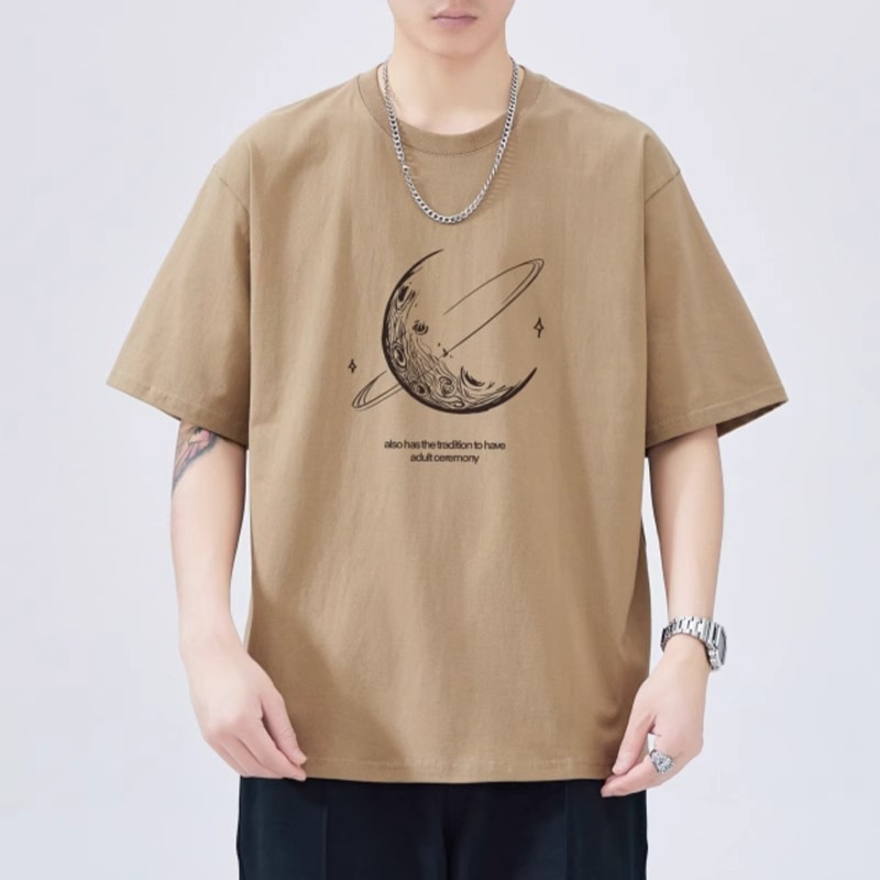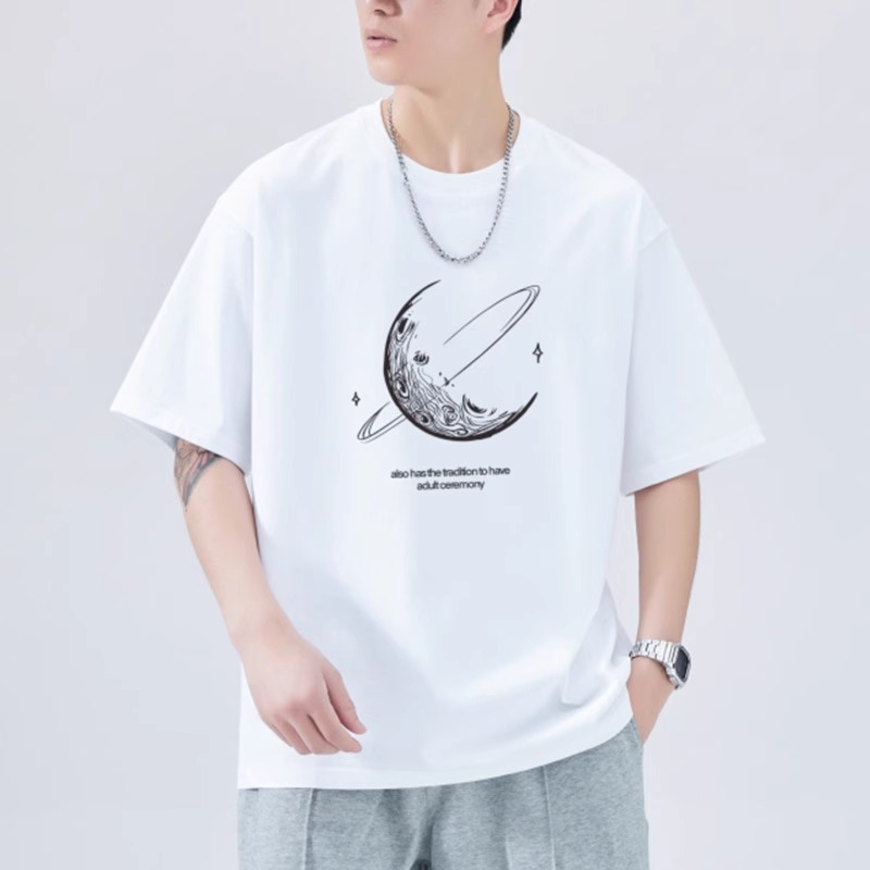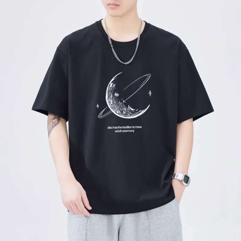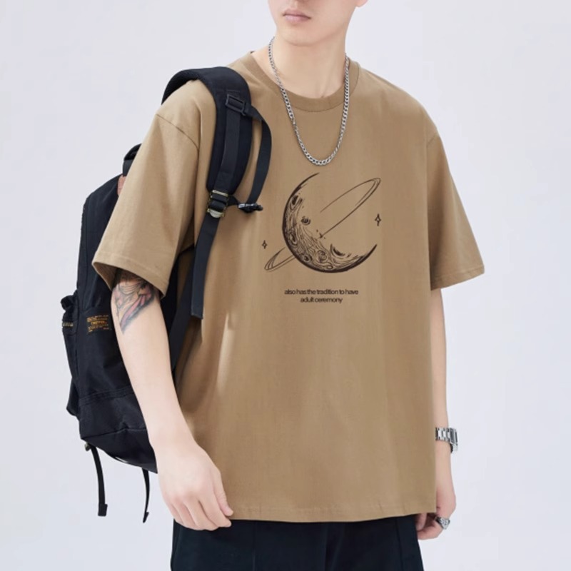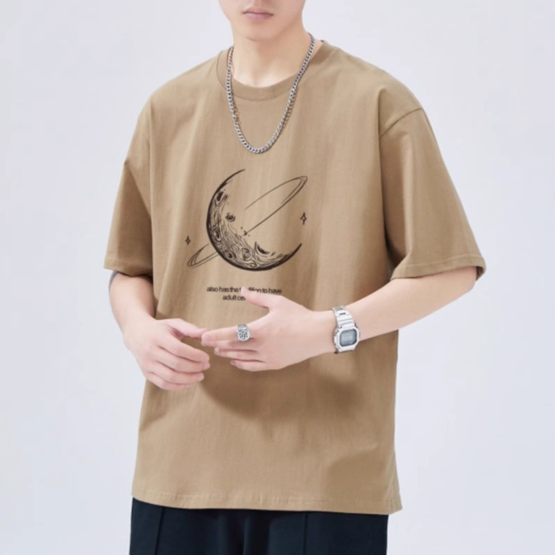 순수 코튼 크루 넥 반팔 티셔츠 소년 여름 얇은 유행 인쇄 느슨한 반소매 티셔츠 일본베이스 탑스토어 가기