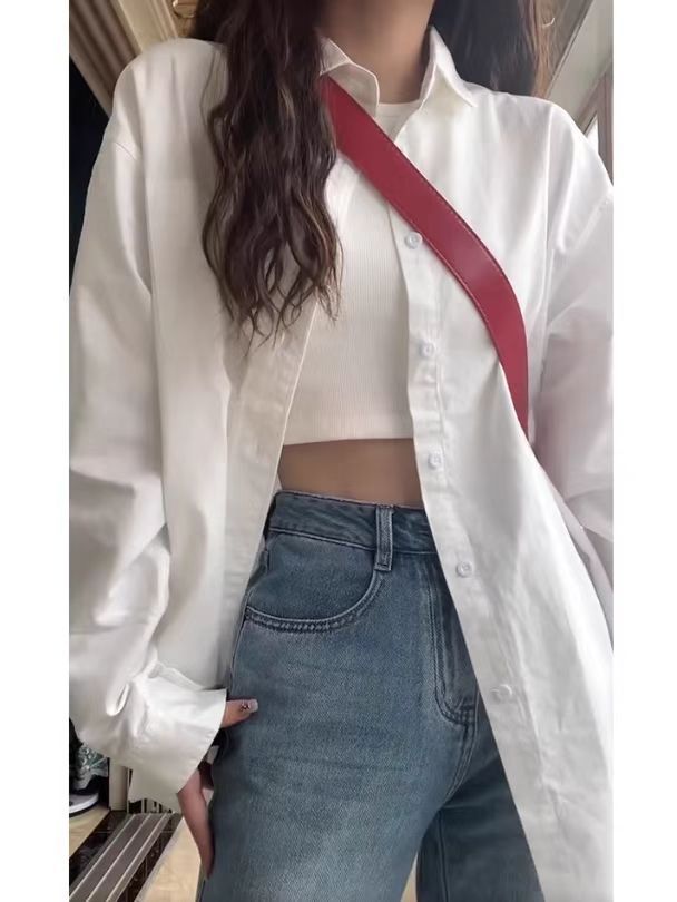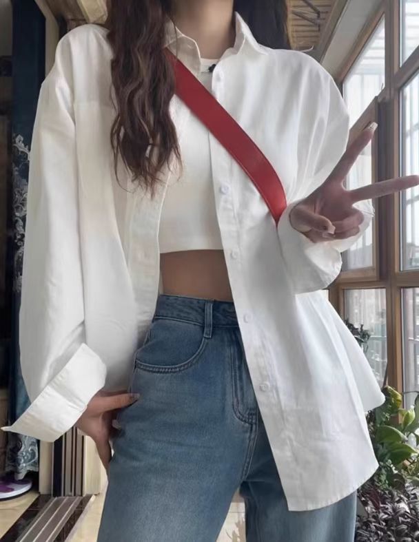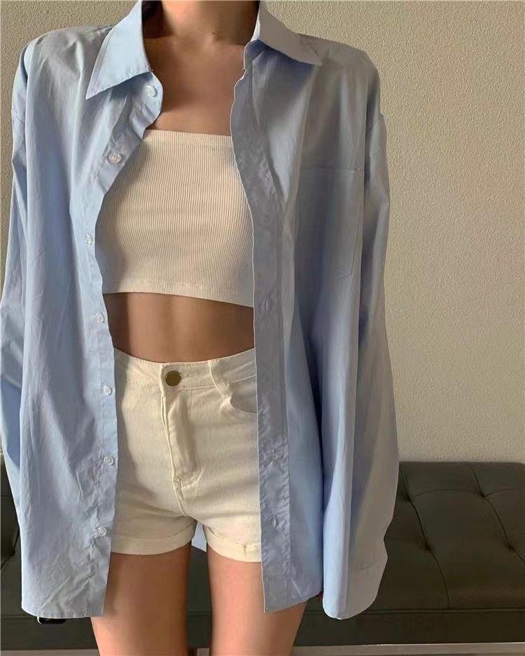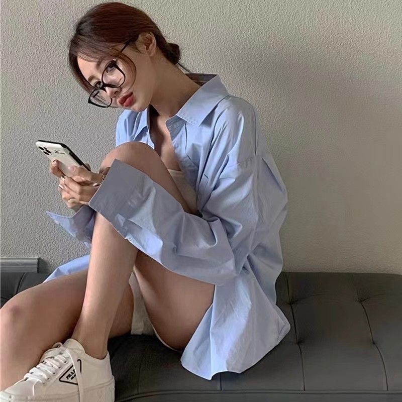 프랑스 클라인 블루 긴 소매 코튼 셔츠 여성의 이른 가을 최고 패션 올 매치 아우터 셔츠 여성 크로스-국경 도매