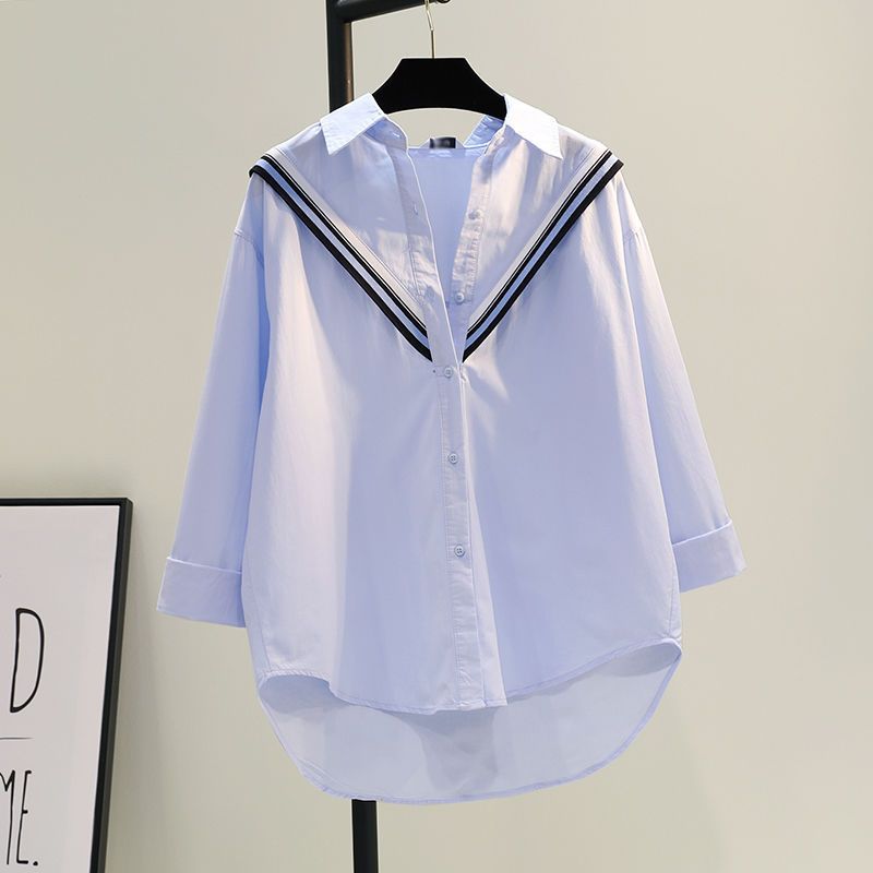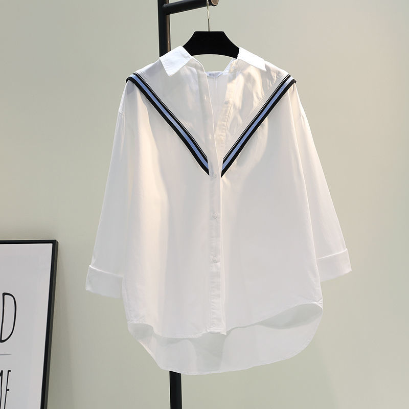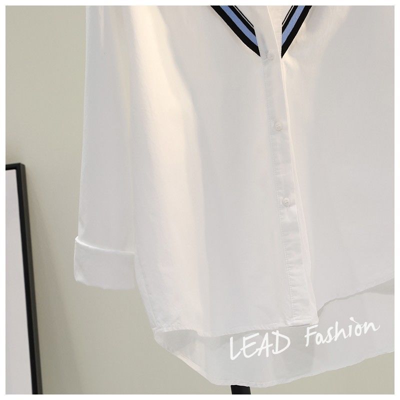 흰색 바느질 긴팔 셔츠 짧은 코트 여성의 이른 봄 새로운 한국 스타일 느슨한 캐주얼 셔츠 카디건 탑