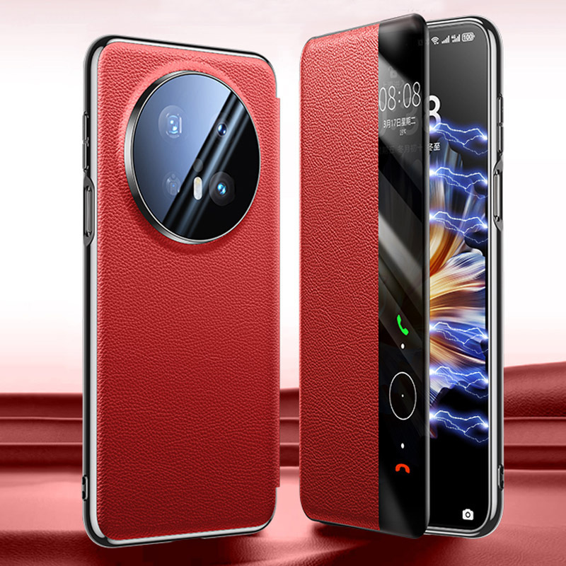 화웨이 Mate70 프로 스마트 창 가죽 케이스 마그네틱 흡입 플립 도금 전화 케이스 RS Cowhide 보호 케이스