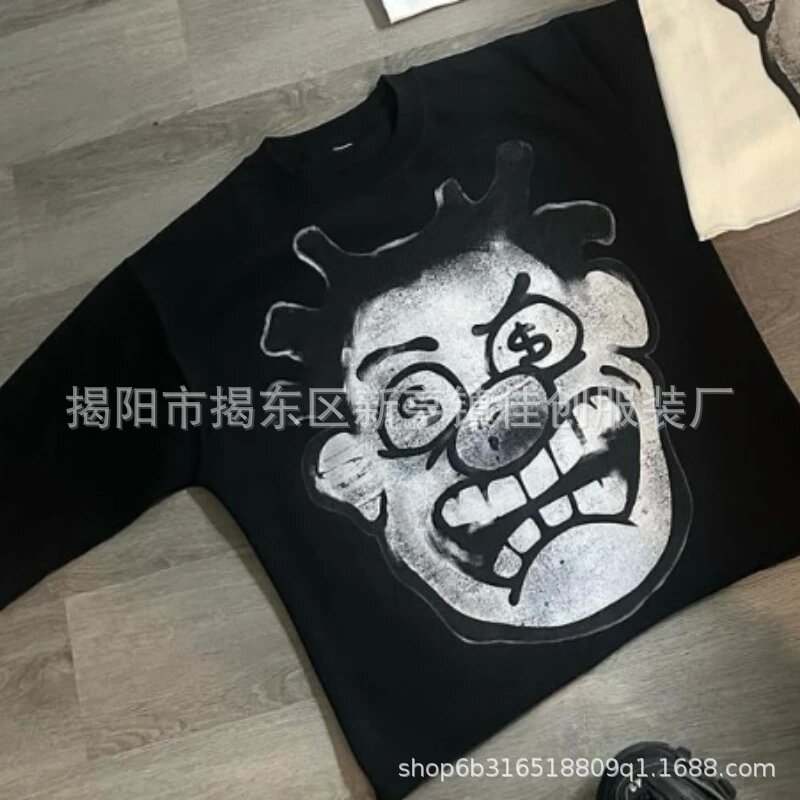跨境潮牌Y2k长款卡通图案印花T恤男夏季新款美式休闲圆领短袖潮