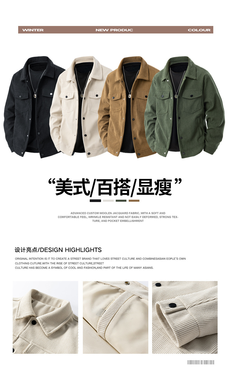 국경 간 남자 봄 코트 코듀로이 재킷 남자 하이 엔드 긴팔 캐주얼 올 매치 작업 패션 의류스토어 가기