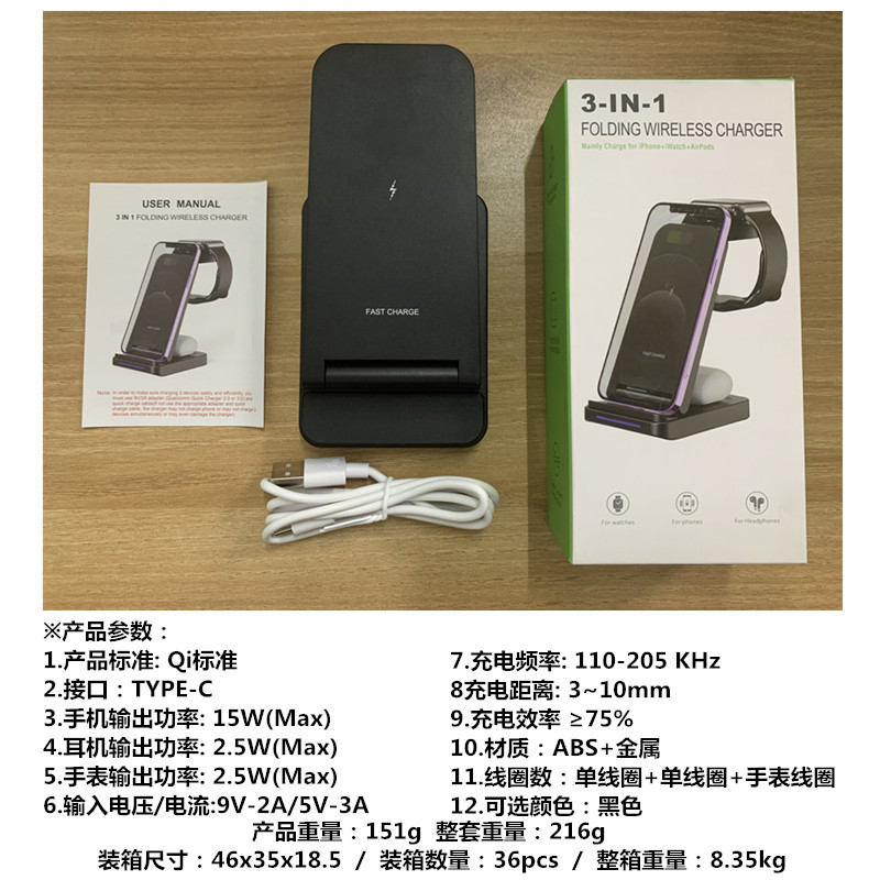 무선 자기 충전 무선 3 대 1 무선 충전기 massafe15W Pingguo 휴대 전화 빠른 자기 충전스토어 가기