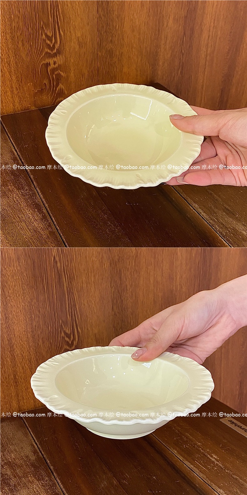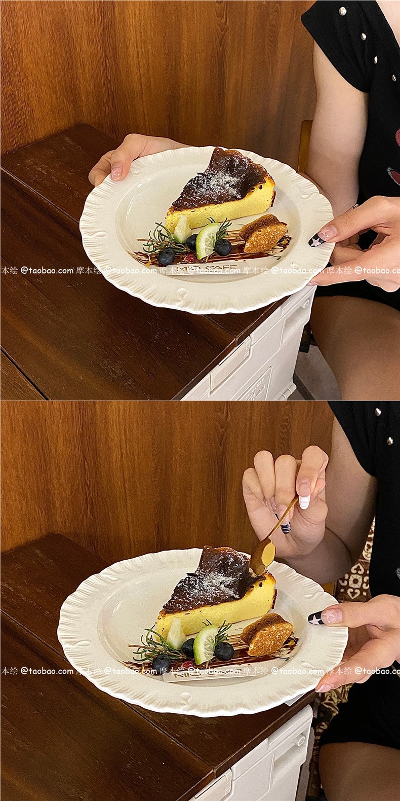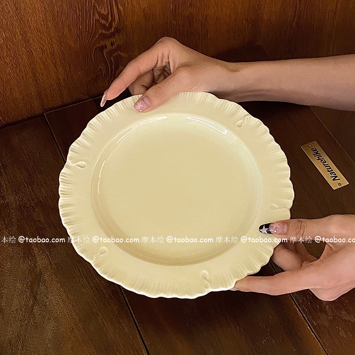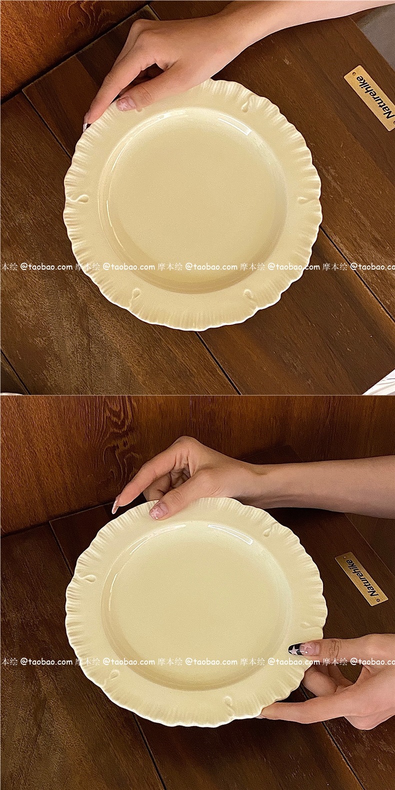 프랑스 스타일 릴리프 플레이트 가정용 세라믹 디너 플레이트 빈티지 플랫 플레이트 파 가티 서양 음식 그릇 크림 스타일 디저트 그릇스토어 가기