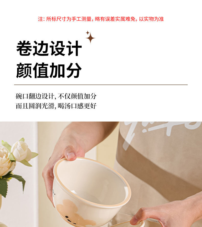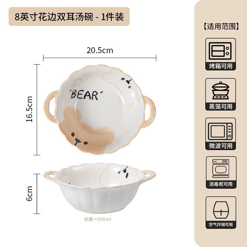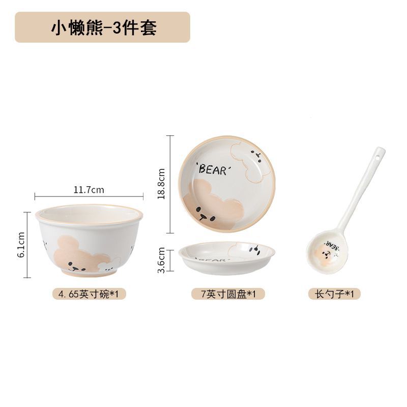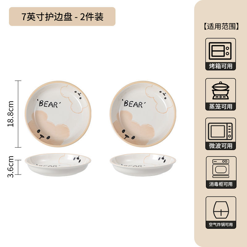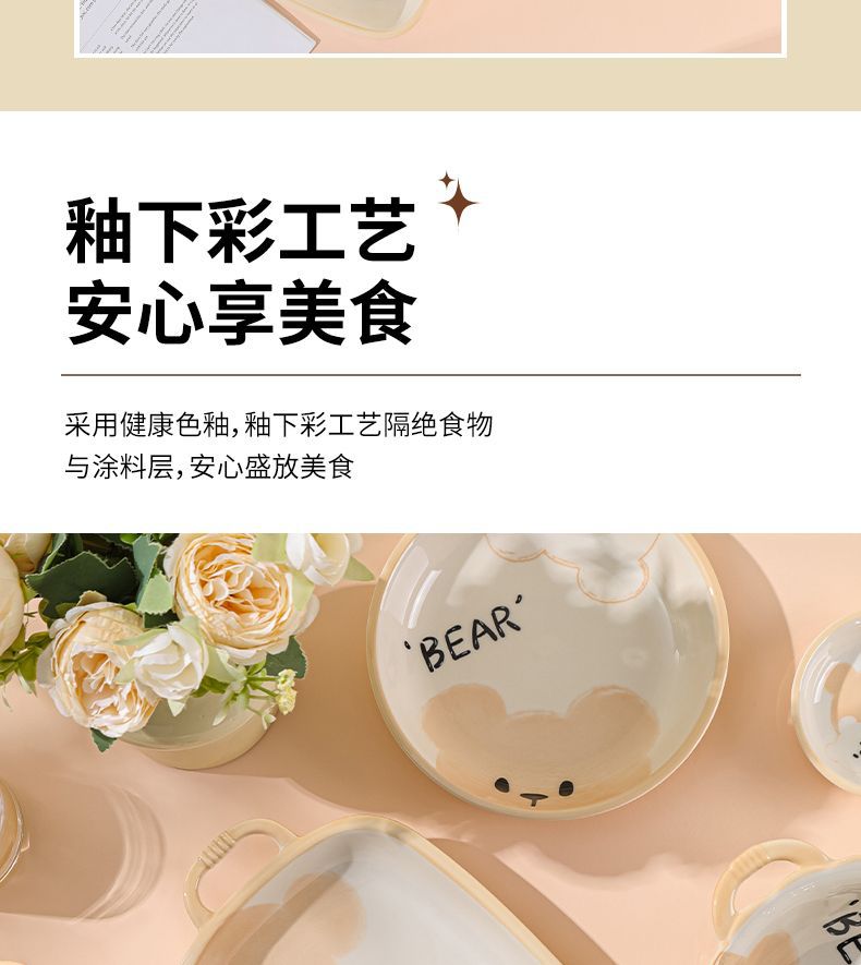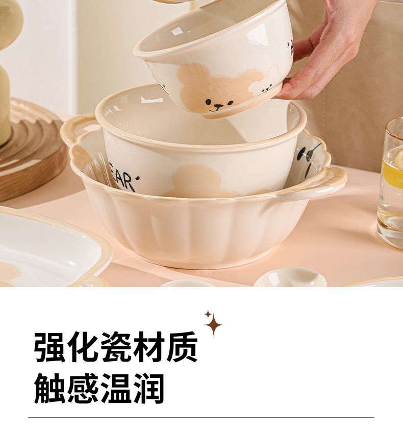 그릇과 접시 세트, 귀여운 크림 스타일의 인터넷 연예인 고급스러운 세라믹 유약 컬러 가정용 밥그릇과 접시