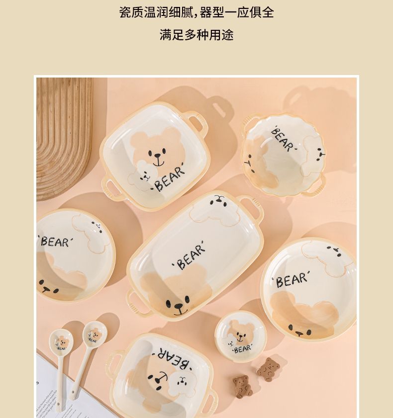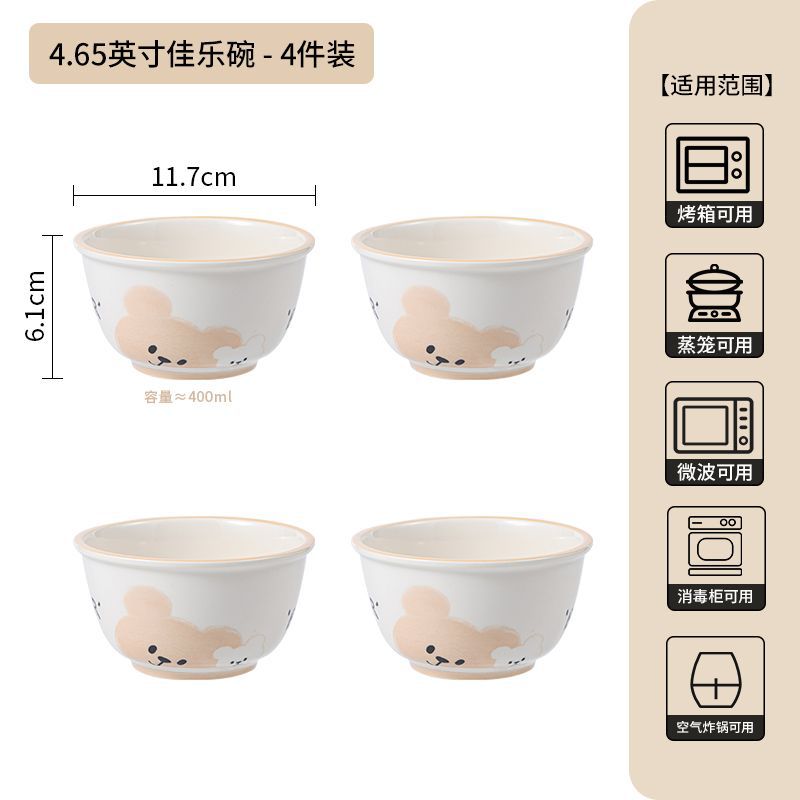 그릇과 접시 세트, 귀여운 크림 스타일의 인터넷 연예인 고급스러운 세라믹 유약 컬러 가정용 밥그릇과 접시스토어 가기