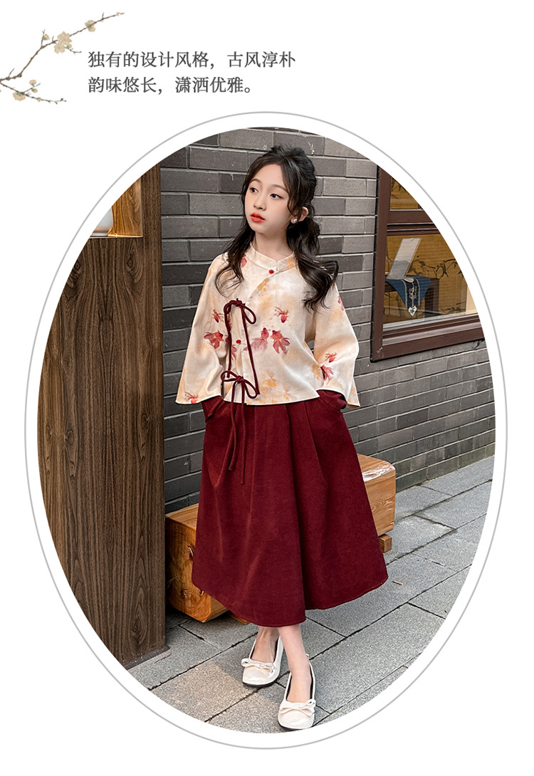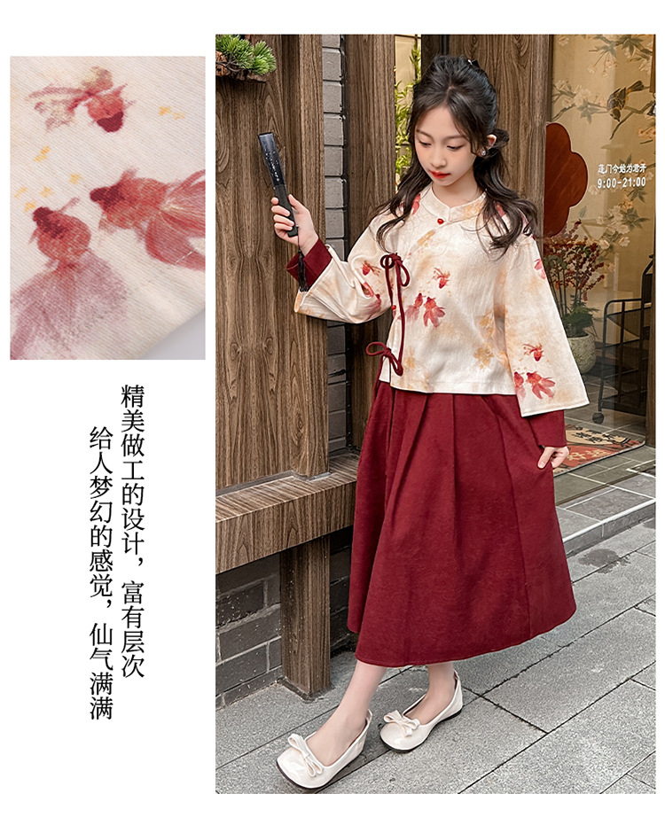 소녀의 봄과 가을 새로운 서양 스타일 클래식 스타일 코이 국립 스타일 말 얼굴 치마 세트 소녀 중국 스타일 원피스스토어 가기