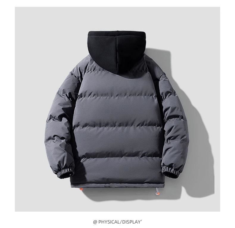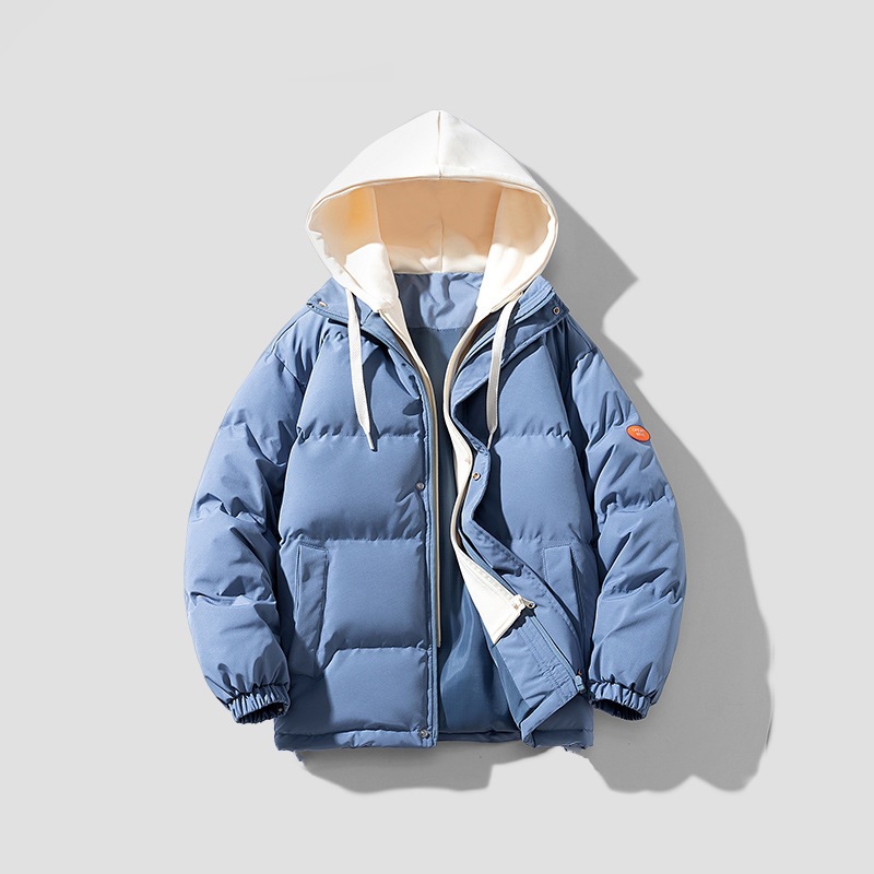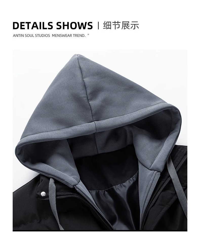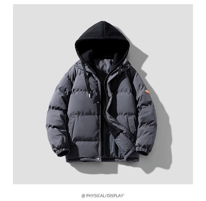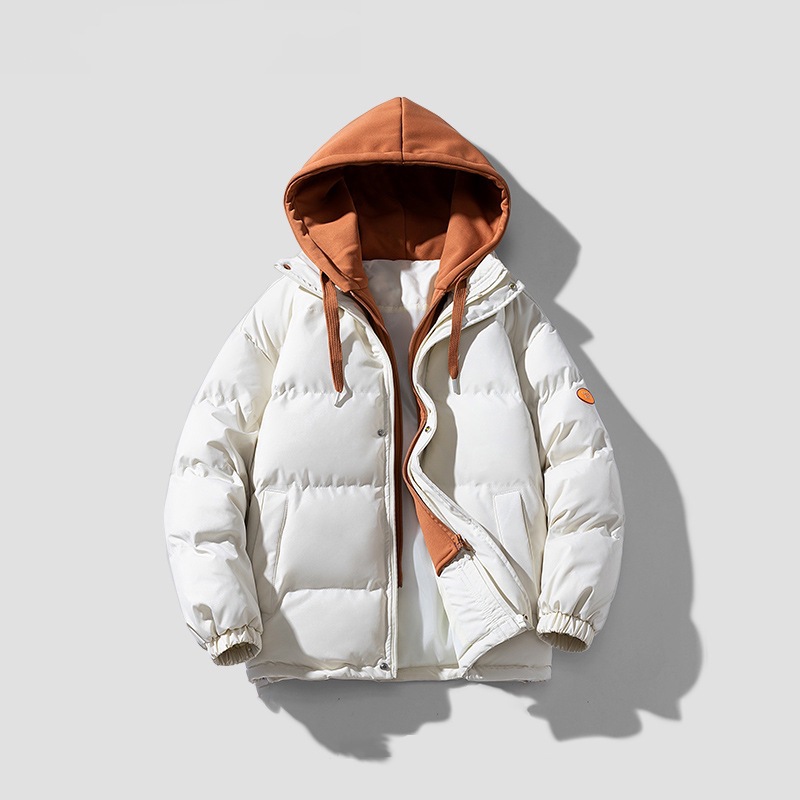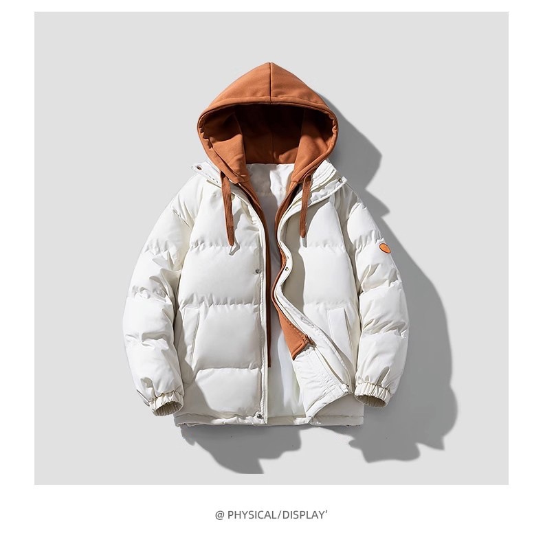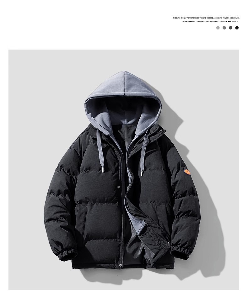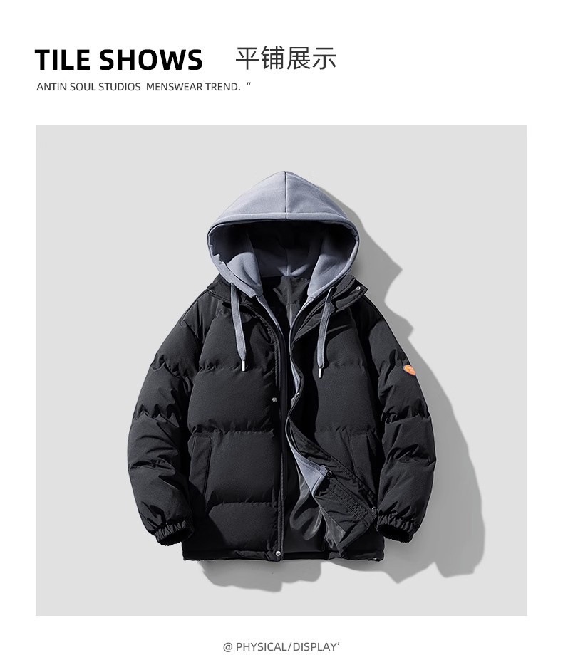 가짜 2 피스 코튼 패딩 의류 남성 겨울 루즈 캐주얼 두꺼운 따뜻한 코튼 패딩 재킷 일본 스타일 트렌디 한 커플의 후드 코튼 패딩 재킷