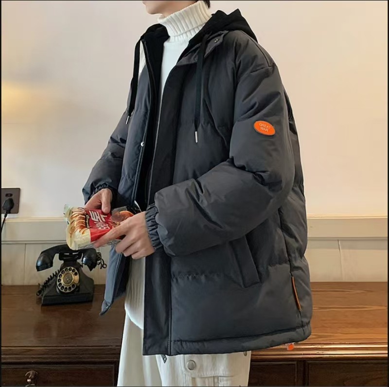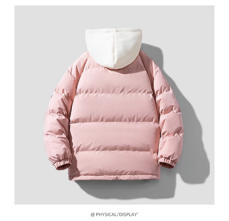 가짜 2 피스 코튼 패딩 의류 남성 겨울 루즈 캐주얼 두꺼운 따뜻한 코튼 패딩 재킷 일본 스타일 트렌디 한 커플의 후드 코튼 패딩 재킷스토어 가기
