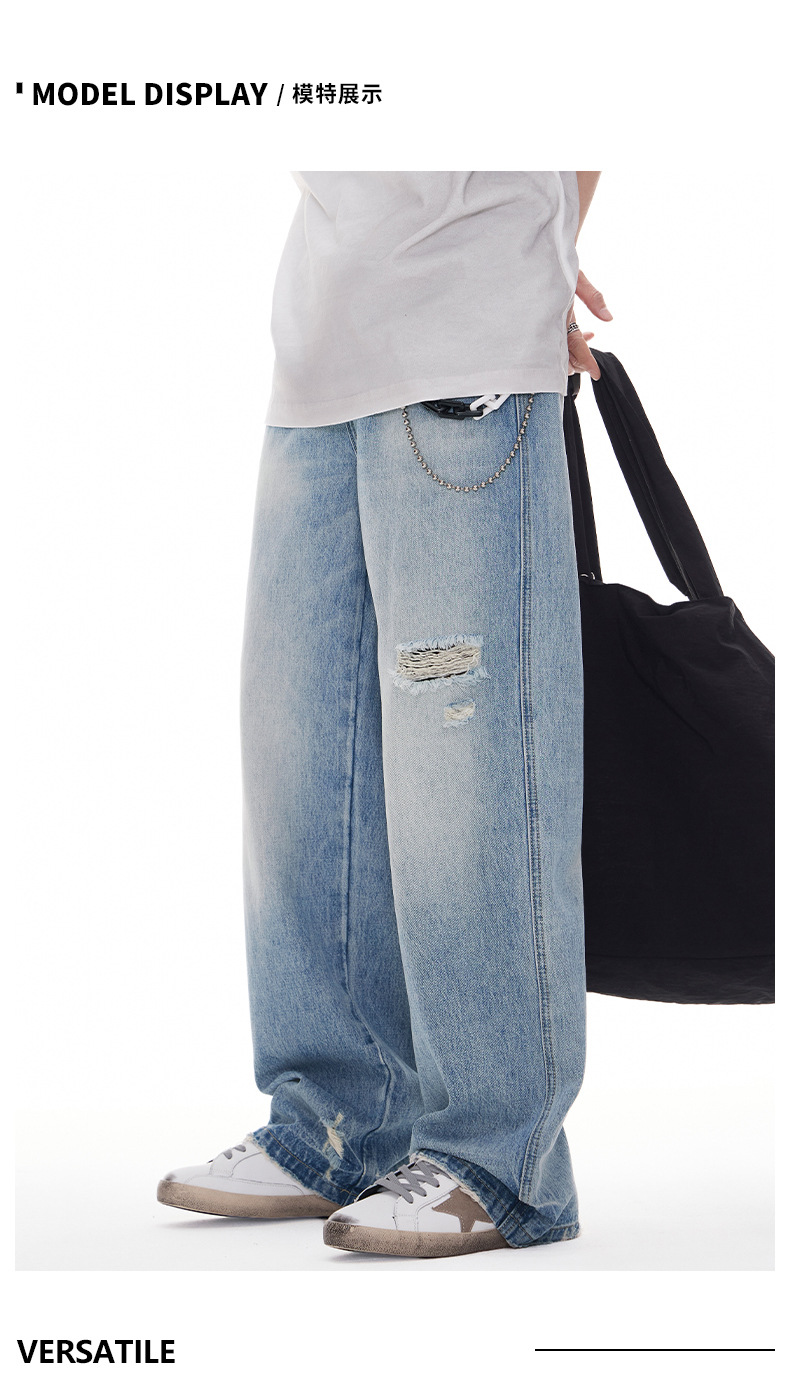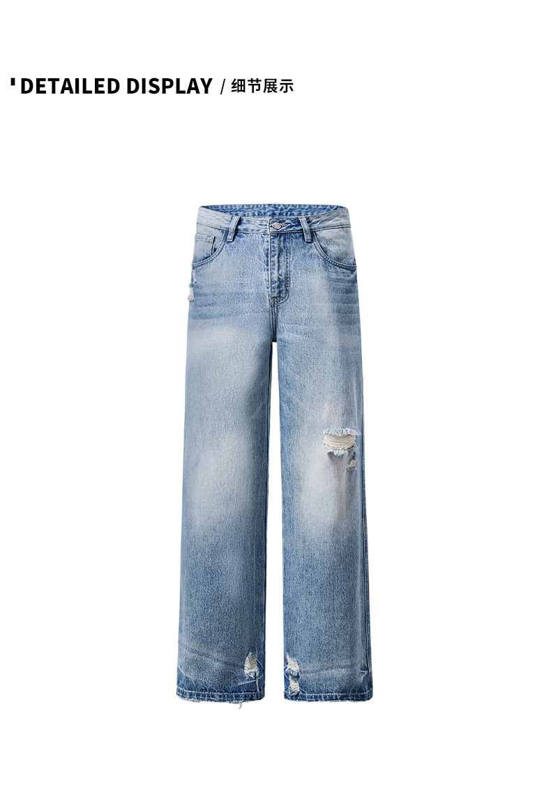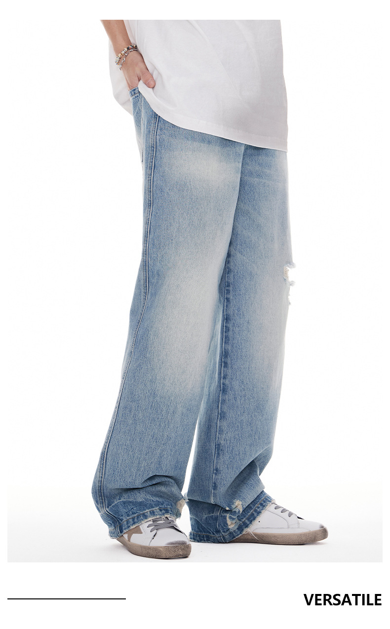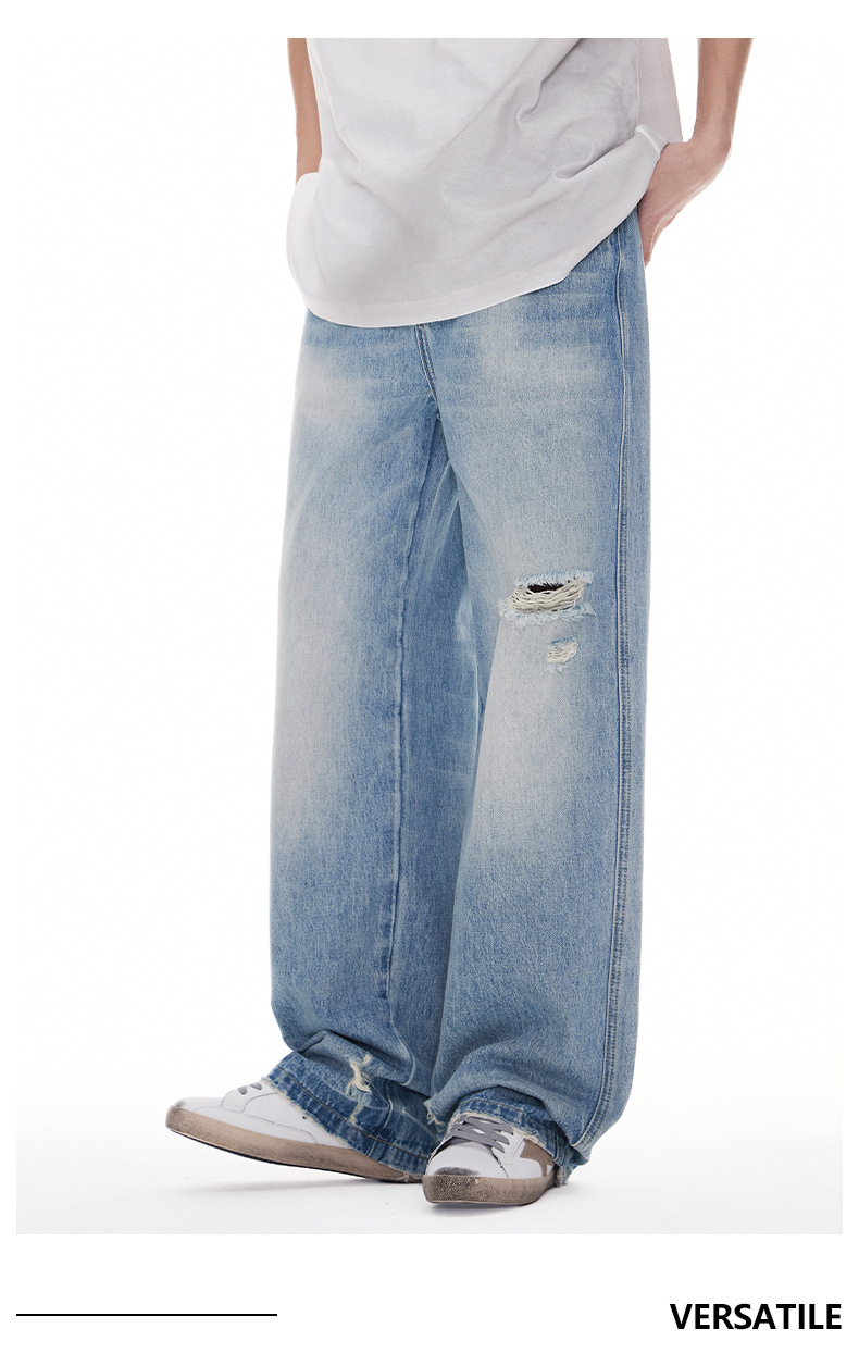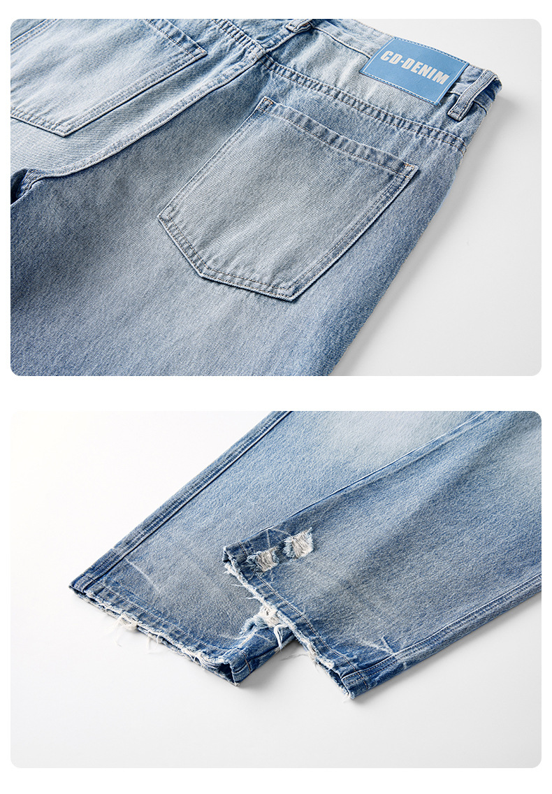 CD 아메리칸 레트로 라이트 블루 리핑 청바지 남자 2025 새로운 하이 스트리트 패션 브랜드 단순 올 매치 걸레 바지스토어 가기