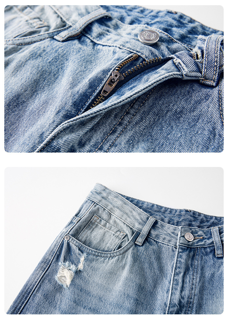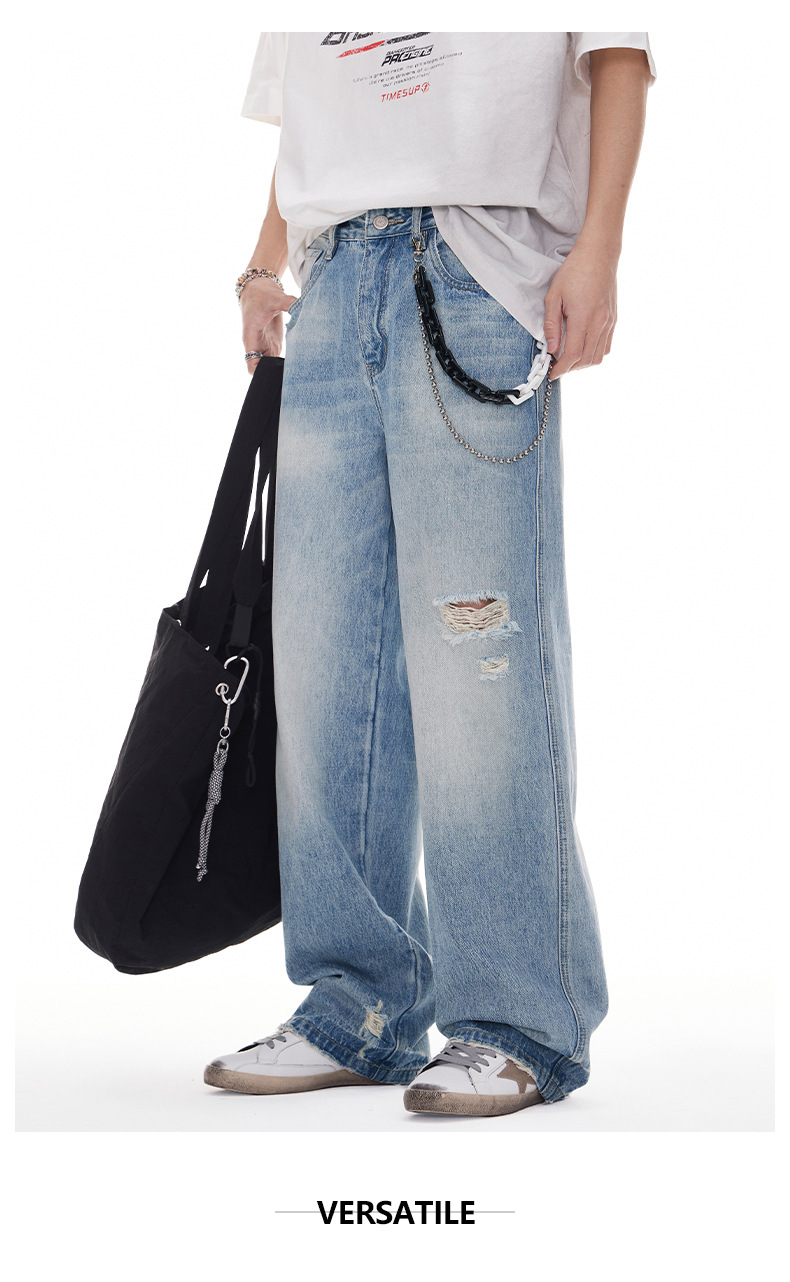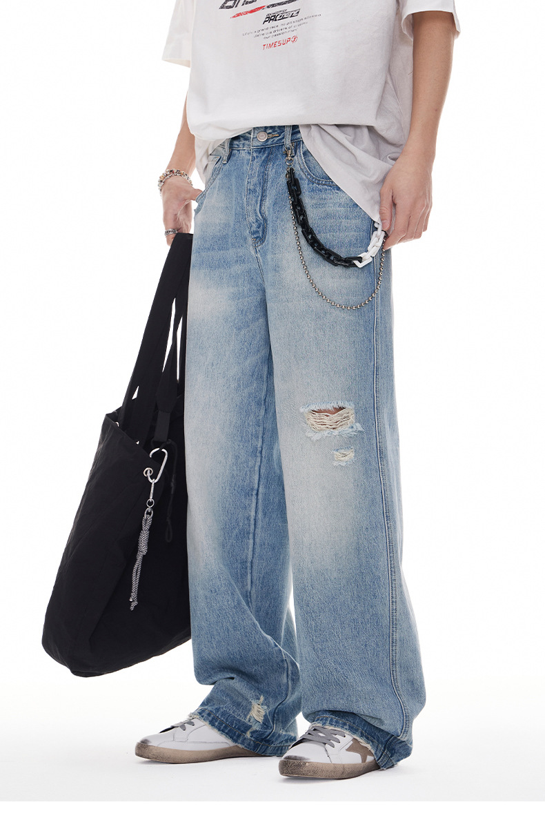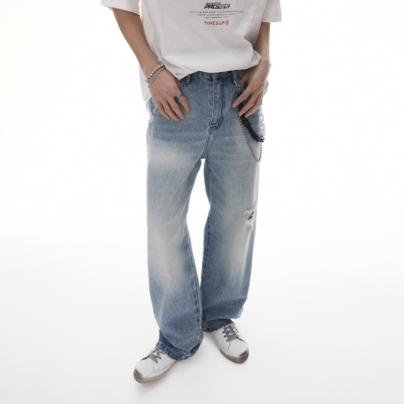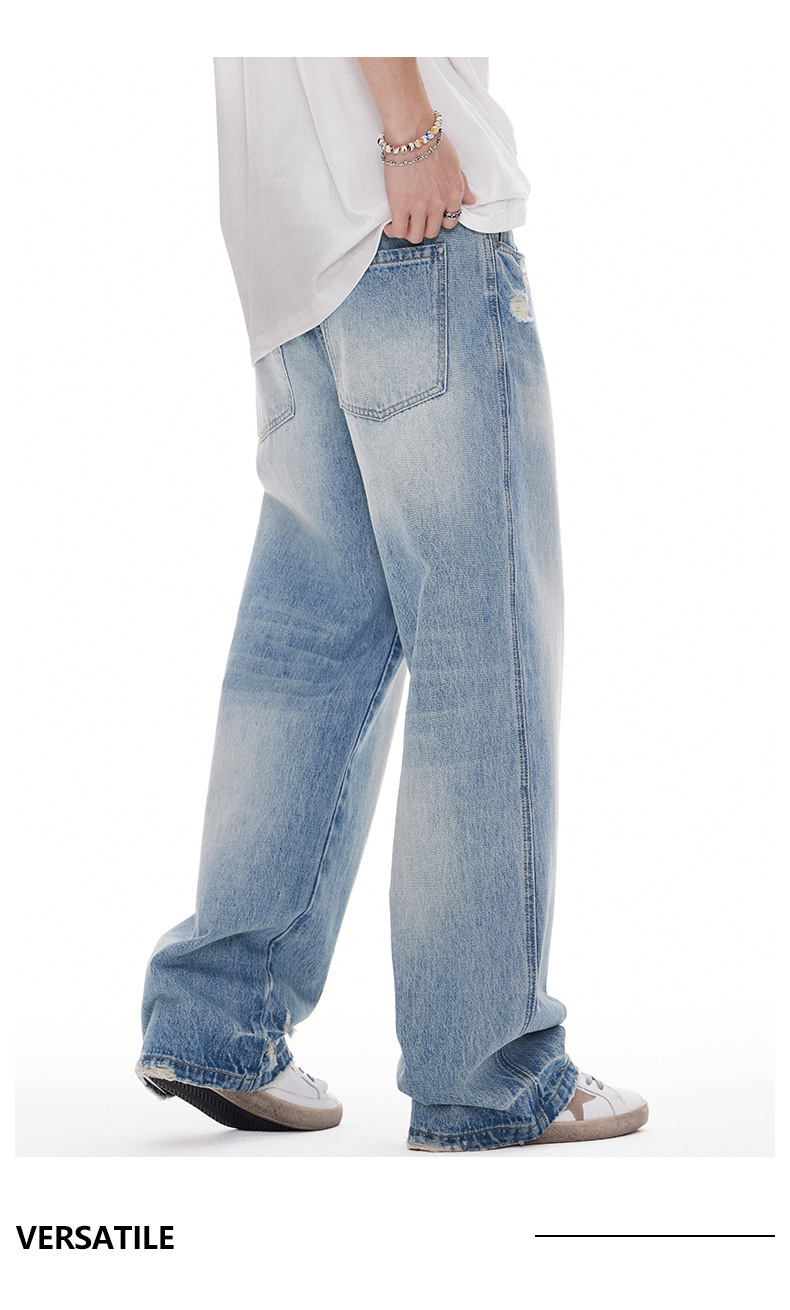 CD 아메리칸 레트로 라이트 블루 리핑 청바지 남자 2025 새로운 하이 스트리트 패션 브랜드 단순 올 매치 걸레 바지스토어 가기