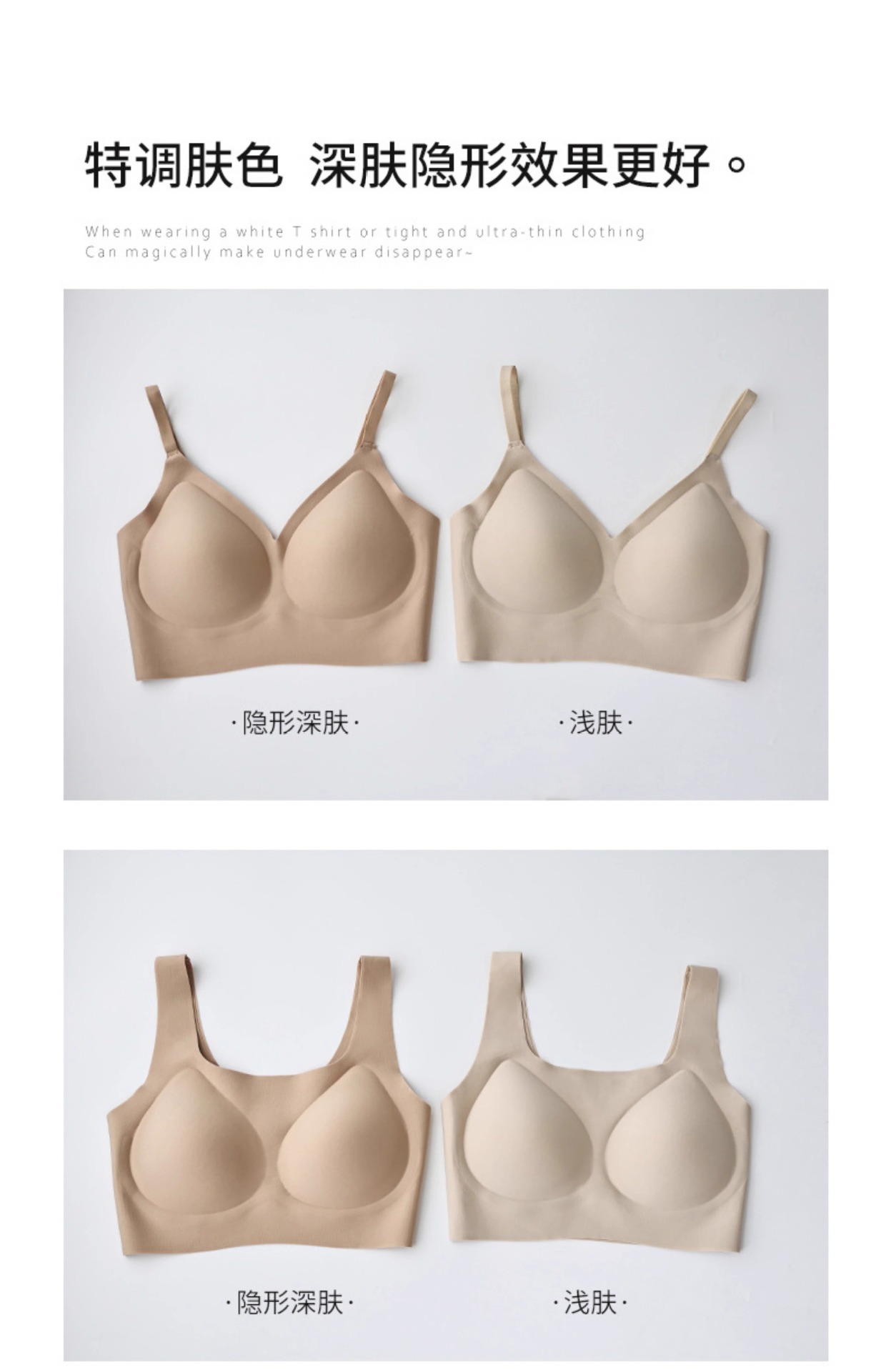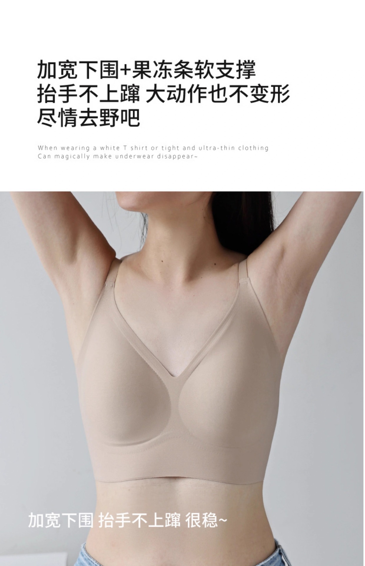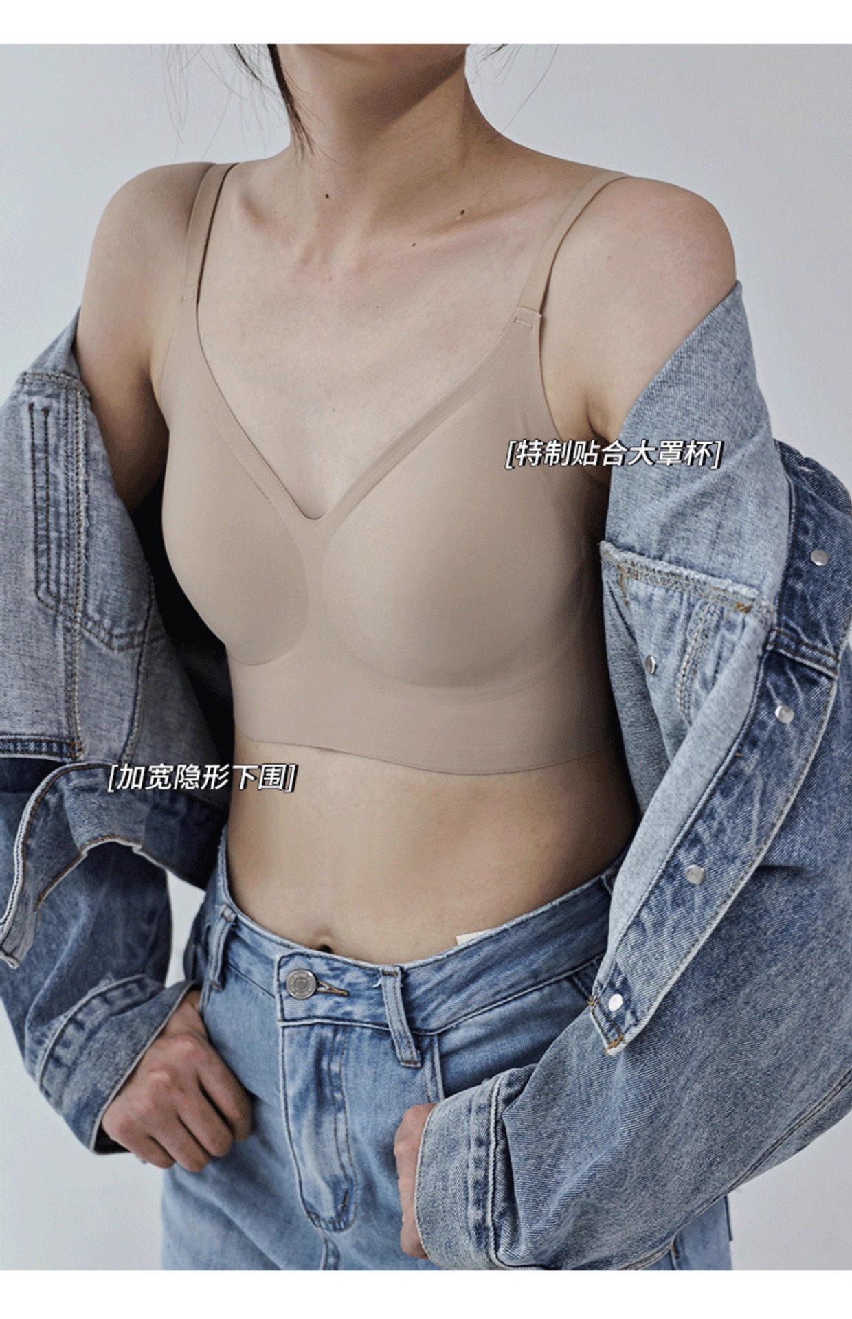 원활한 얇은 보이지 않는 피부색 액체 기초 속옷 여성의 큰 가슴 작은 모임 처짐 방지 조정 가능한 브래지어