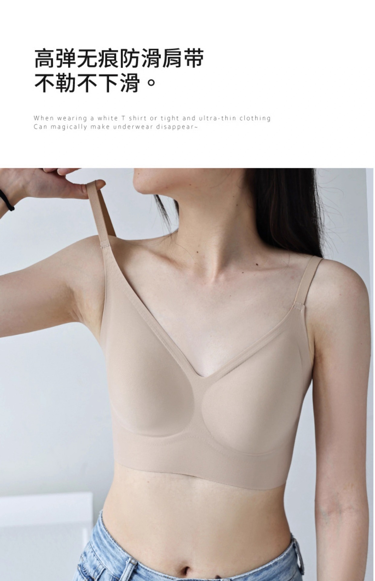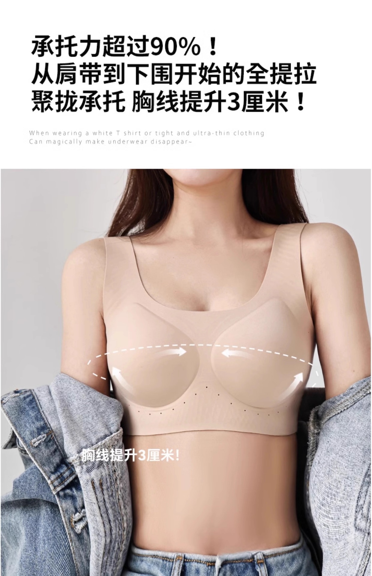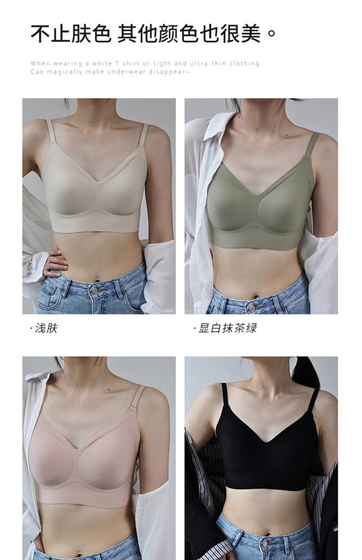 원활한 얇은 보이지 않는 피부색 액체 기초 속옷 여성의 큰 가슴 작은 모임 처짐 방지 조정 가능한 브래지어