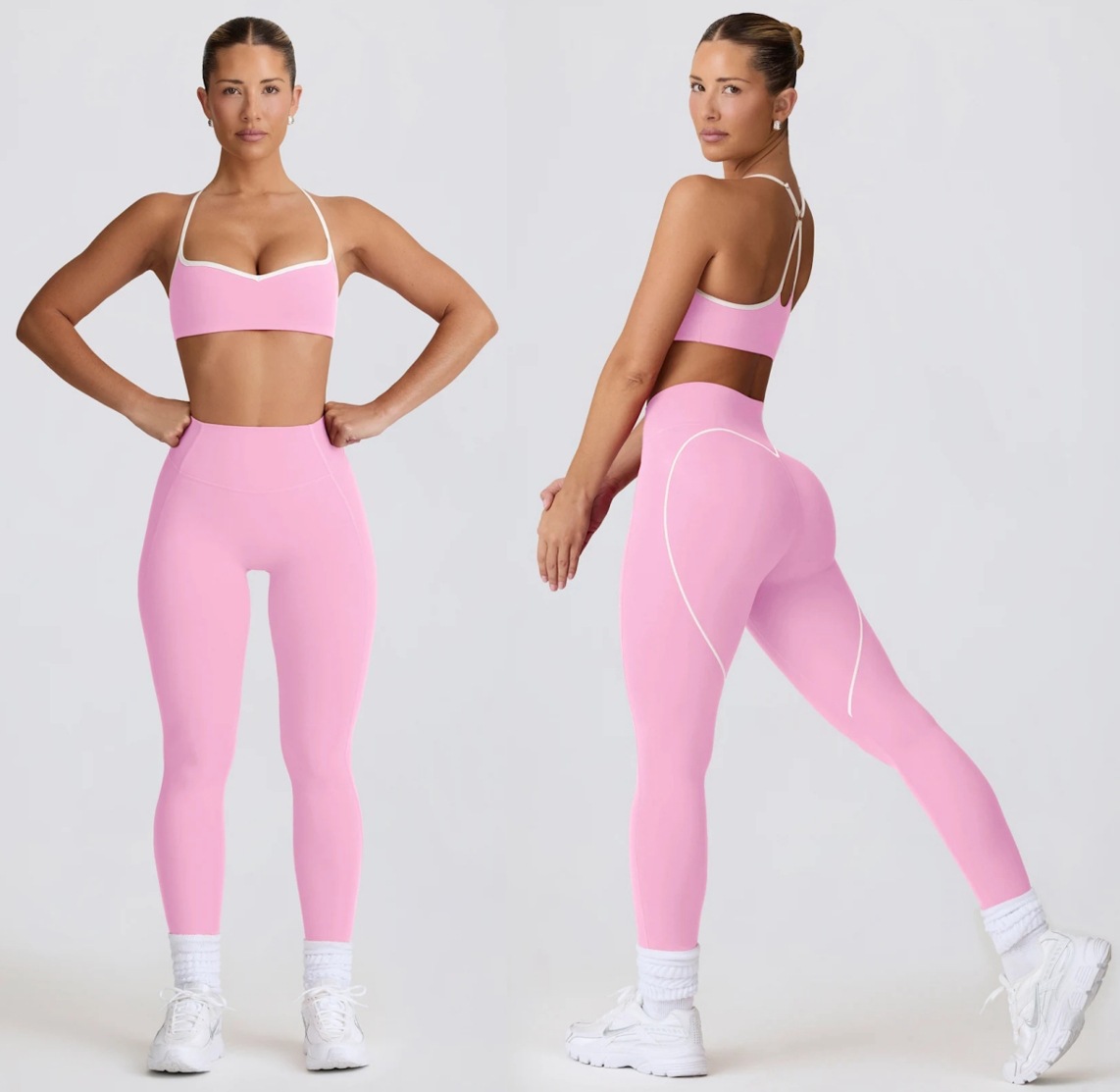 알몸 높은 허리 요가 바지 가슴 패드 충격 방지 속옷 충격 방지 뷰티 백 요가 세트 투피스 세트가있는 엉덩이 피트니스 바지스토어 가기