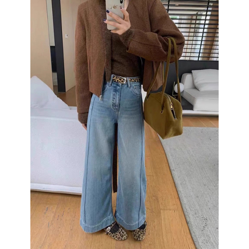 패션 와이드 레그 청바지 여성 2025 봄 새로운 한국 스타일 하이 웨이스트 올 매치 슬림 룩 작은 할머니 트렌디 바지스토어 가기