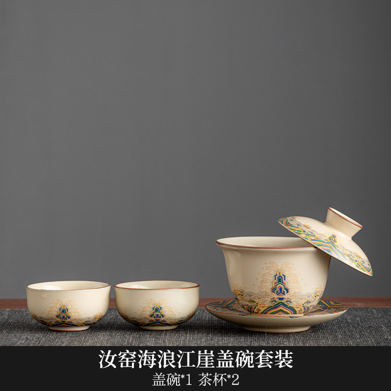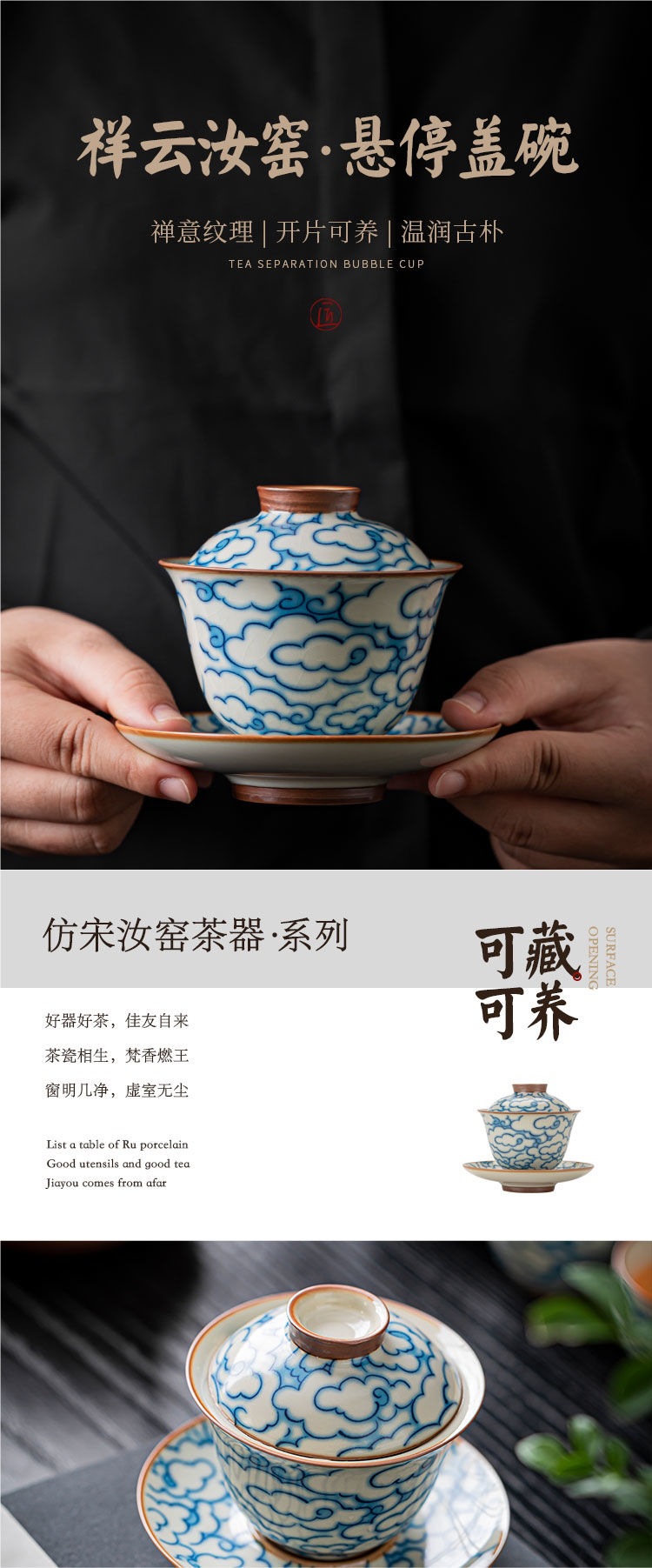 Ru Kiln Sicai 커버 보울 호버 티 보울 싱글 핫 티 쿵푸 티 세트 가정용 세라믹 티 컵