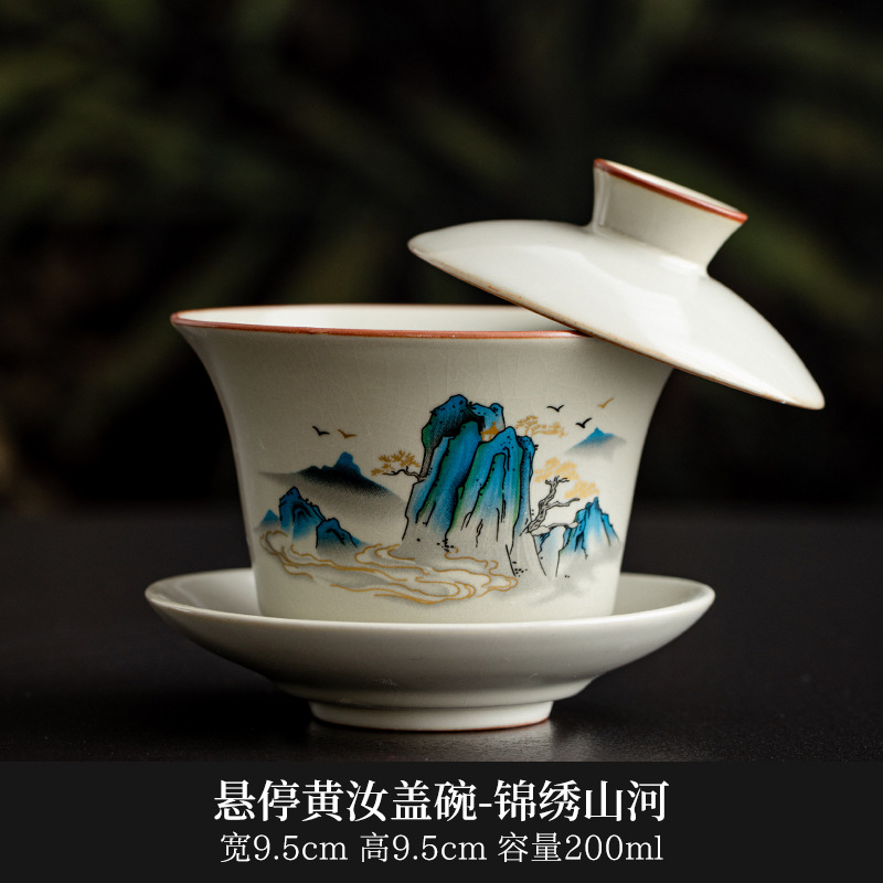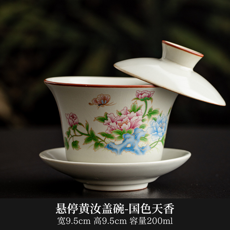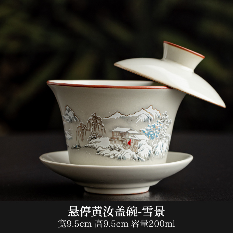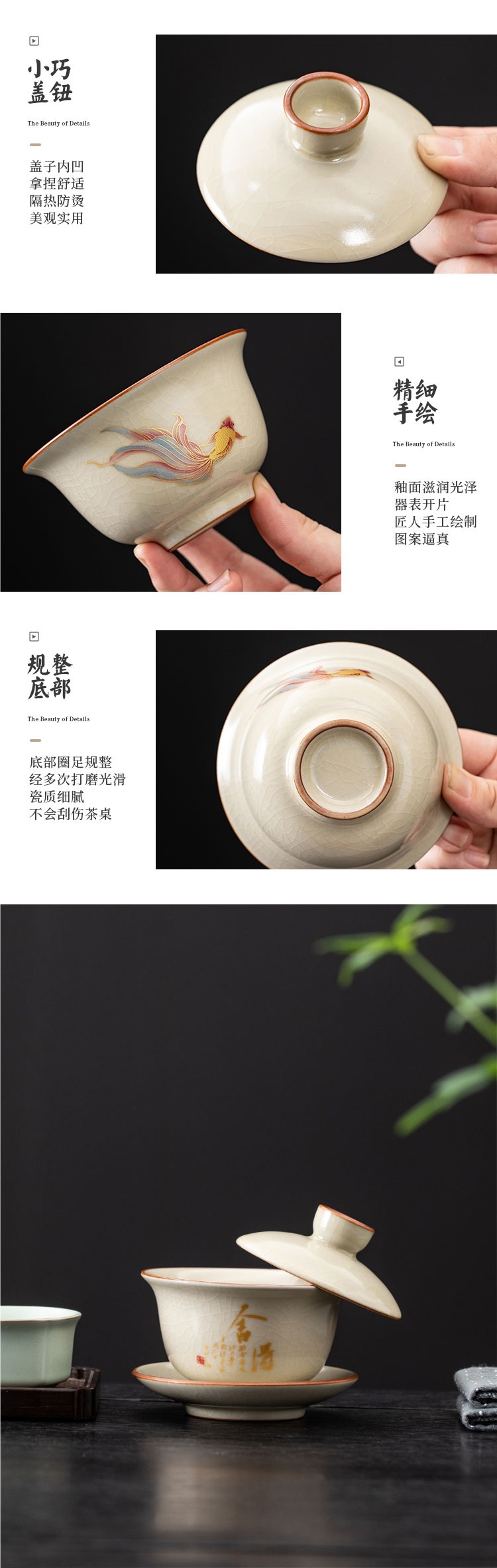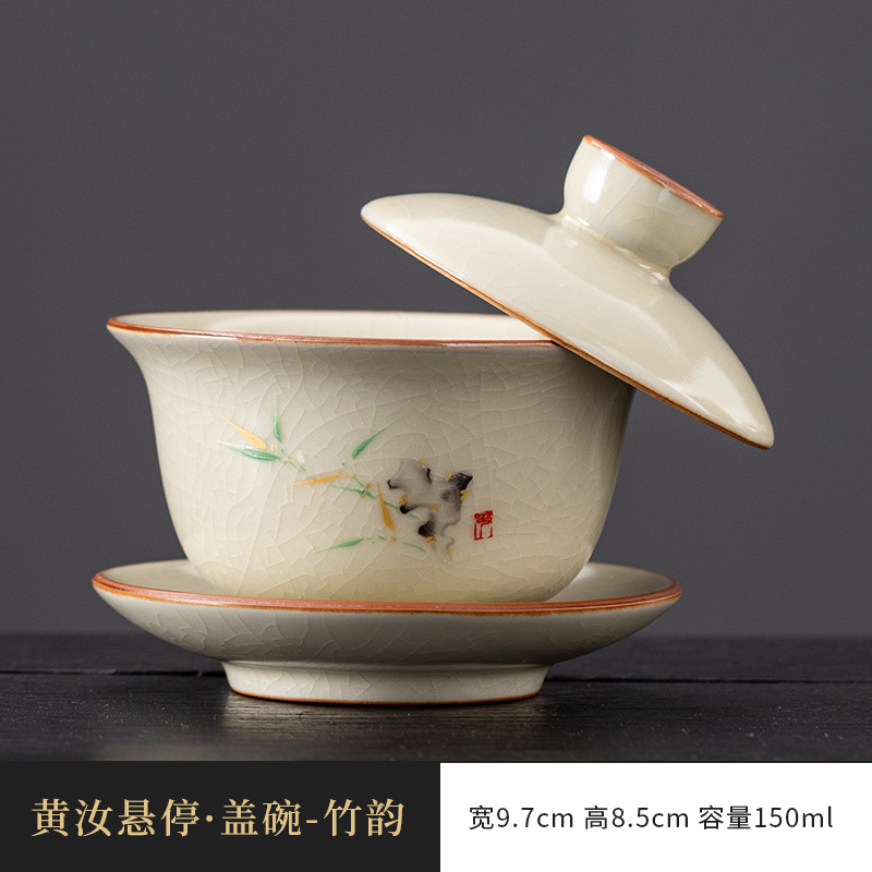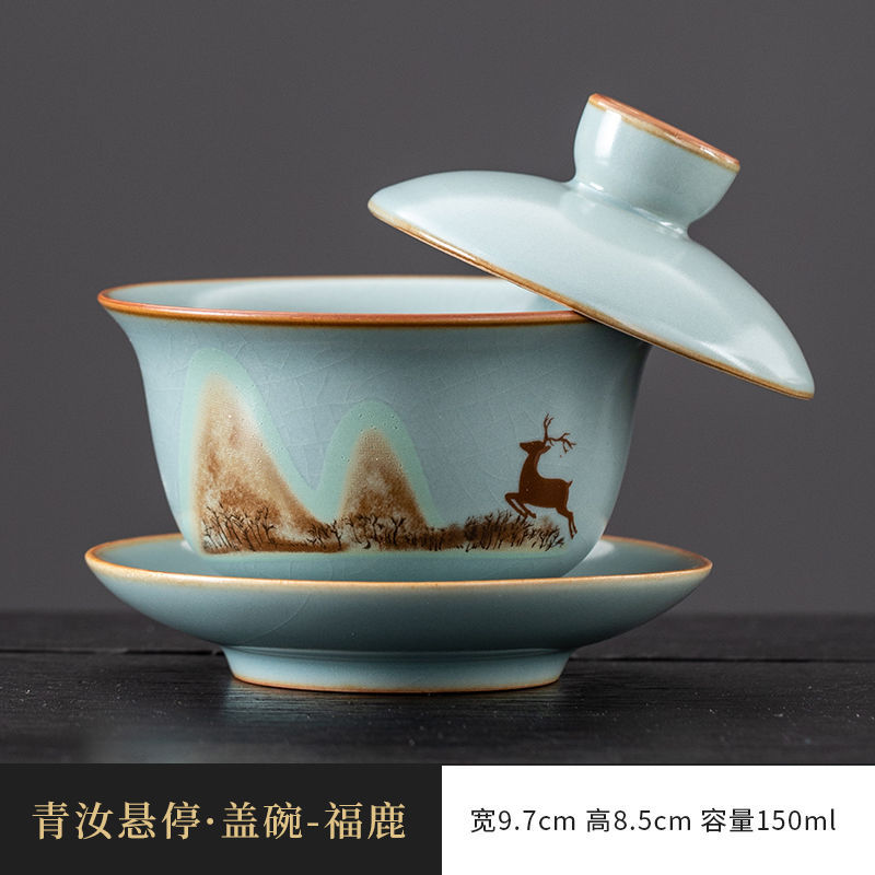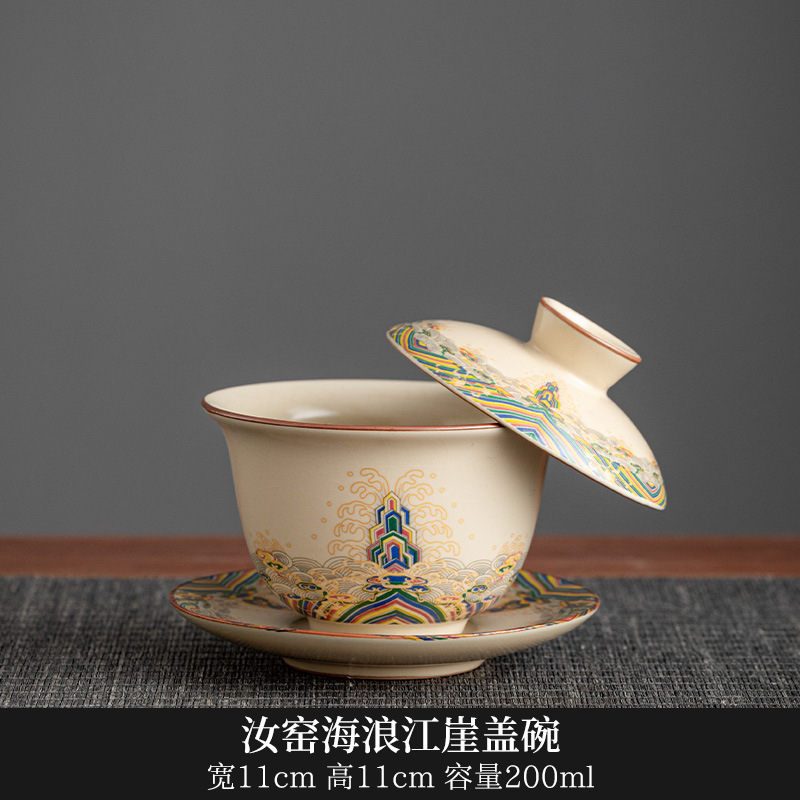 Ru Kiln Sicai 커버 보울 호버 티 보울 싱글 핫 티 쿵푸 티 세트 가정용 세라믹 티 컵스토어 가기