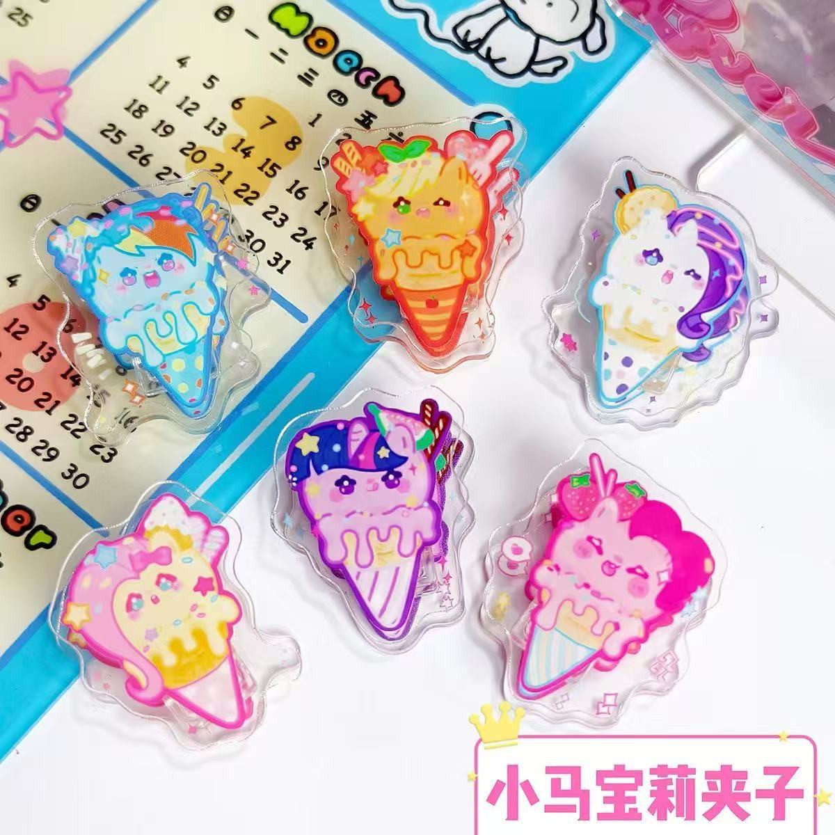 작은 말 모양 메모지 폴리 pp 클립 ins 소녀 애니메이션 손그림 귀여운 양면 아크릴 수납 시험지 바인더