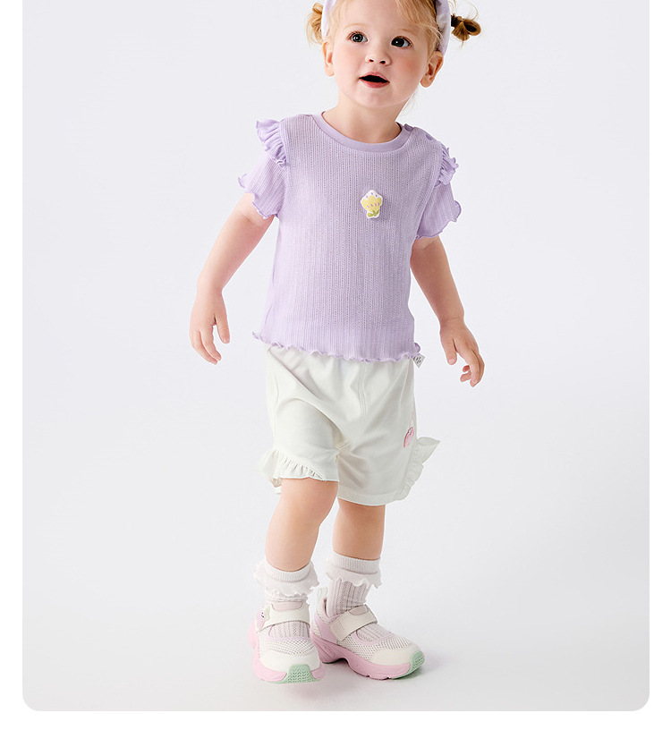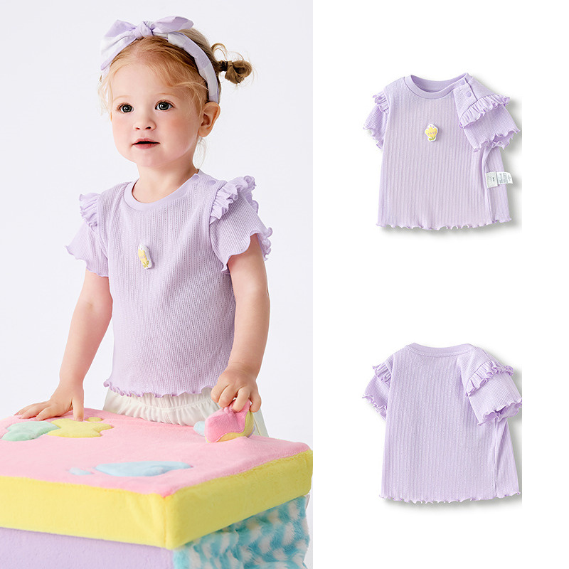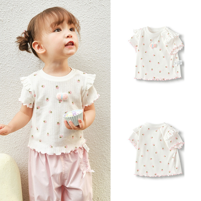 아기의 반팔 티셔츠 아기 소녀의 최고 2025 새로운 아동복 어린이 봄과 여름 착용 달콤하고 절묘한 서양식 트렌디스토어 가기