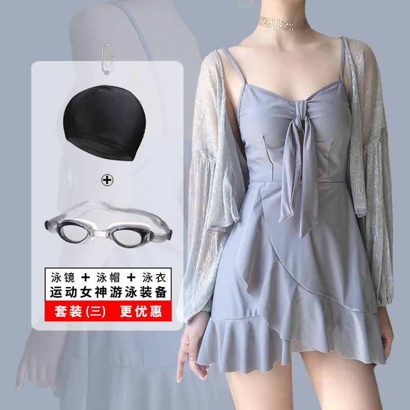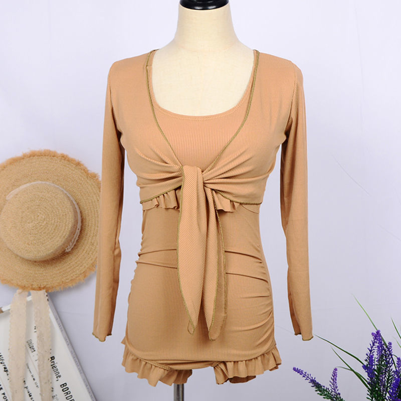 슈퍼 페어리 수영복 여성 플러스 사이즈 통통녀 보수적 인 배꼽 뒤덮인 슬리밍 고기-커버 긴팔 선 스크린 온천 수영복