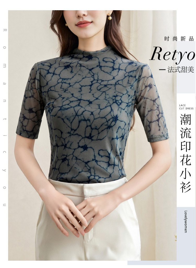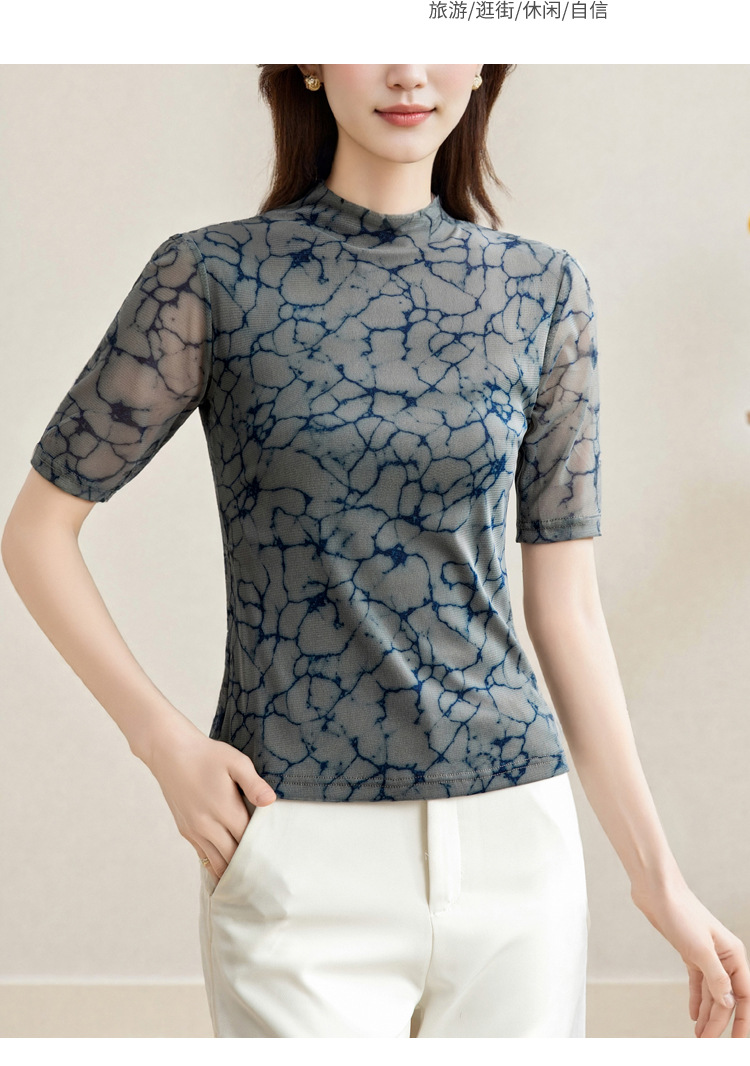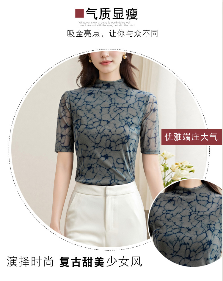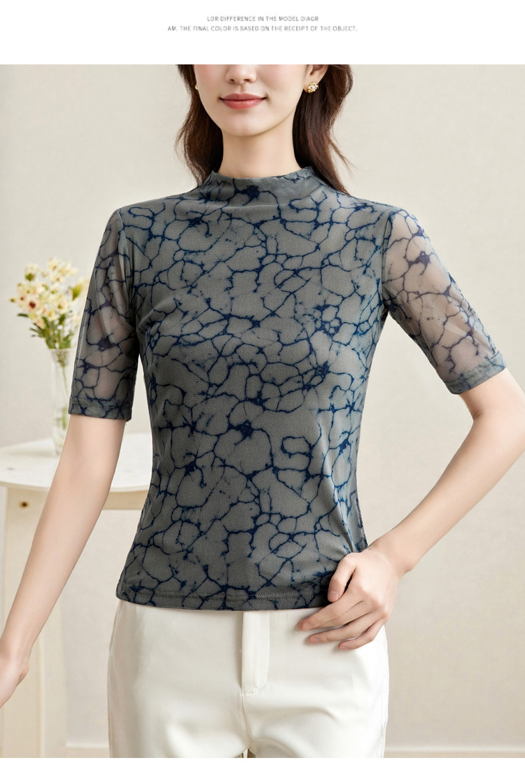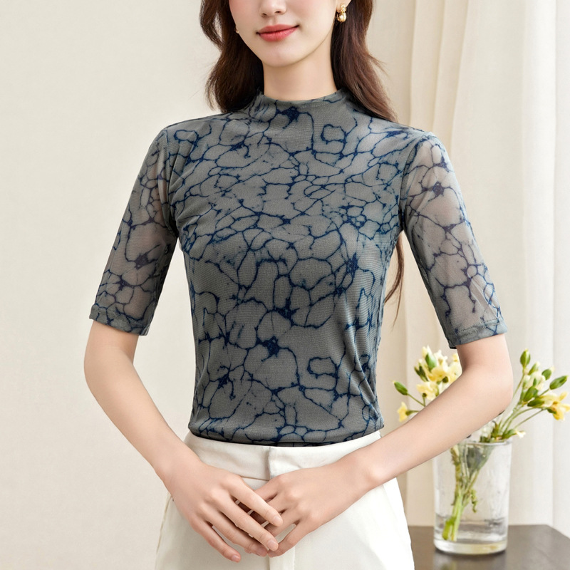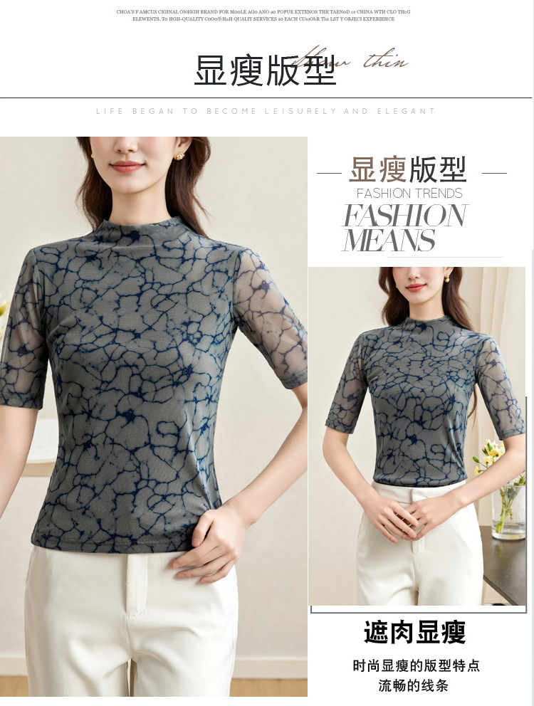 2025 새로운 재고 티셔츠 여성 플러스 사이즈 메쉬 더블 레이어 베이스 셔츠 여성용 미드 슬리브 봄 가을 여름 탑