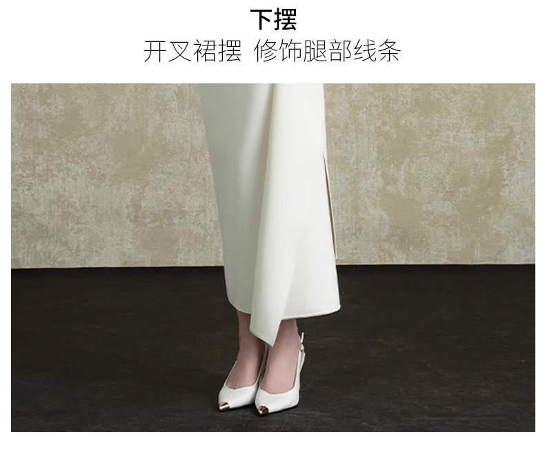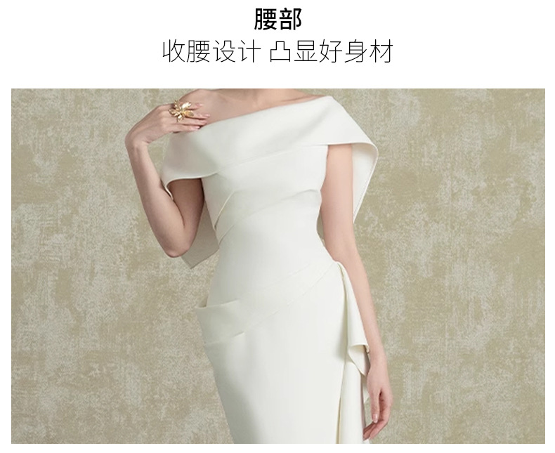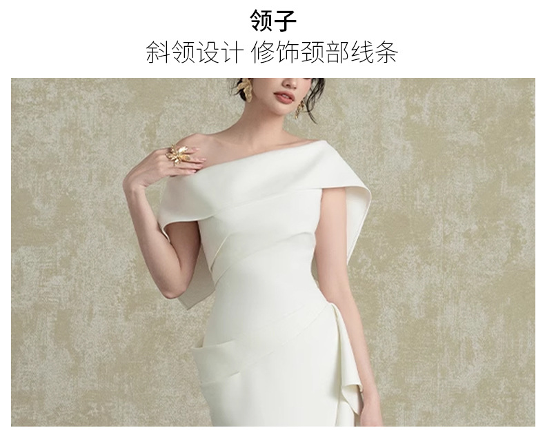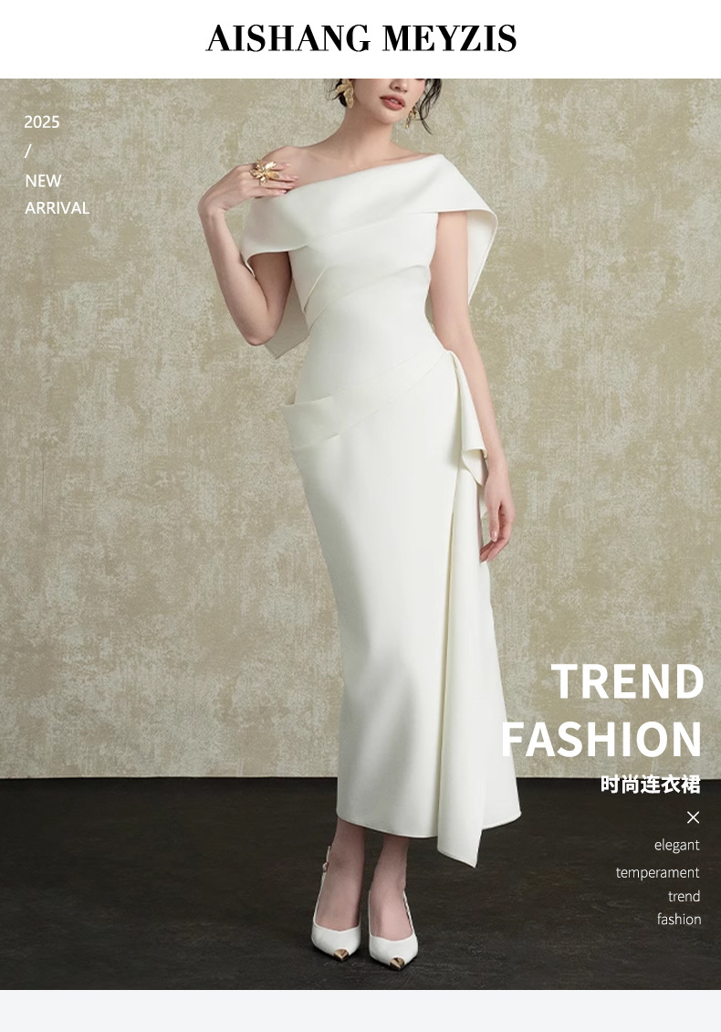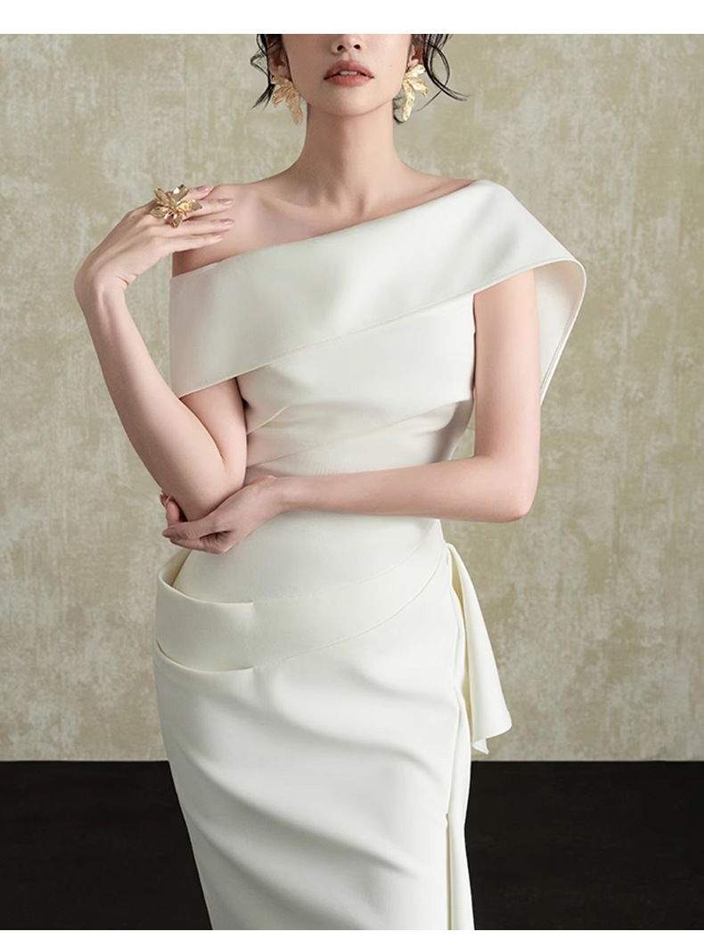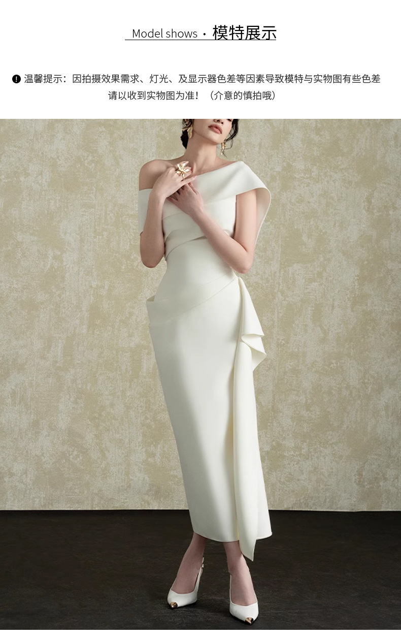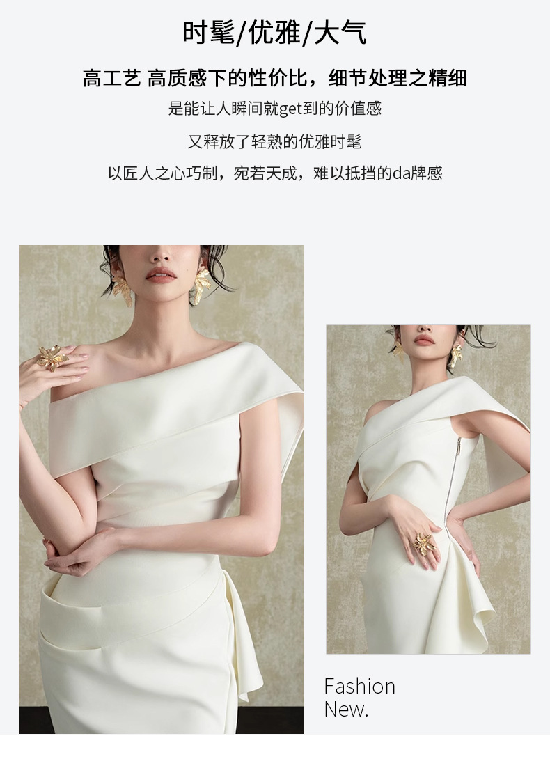 프랑스 사교계 Oblique Collar Ruffle 원피스 여성의 2025 년 새로운 흰색 우아한 분할 허리 원피스스토어 가기