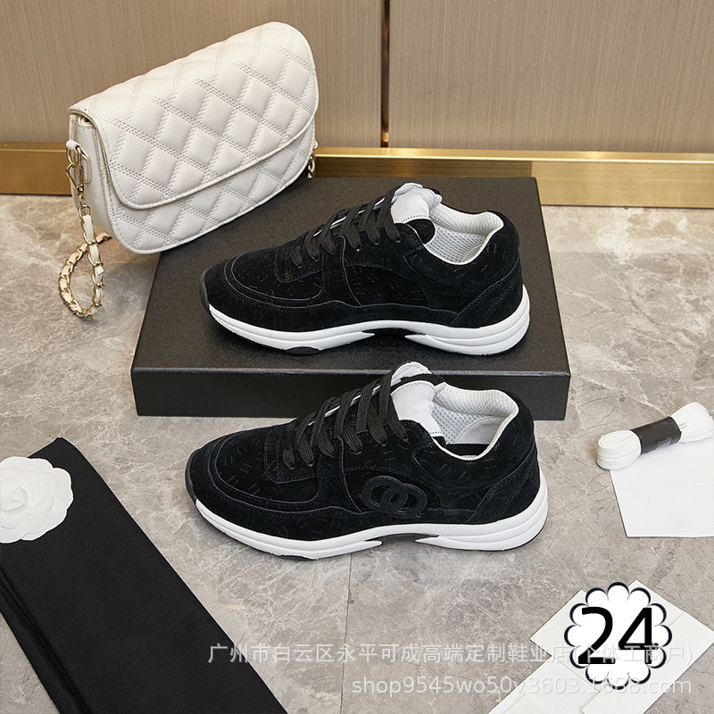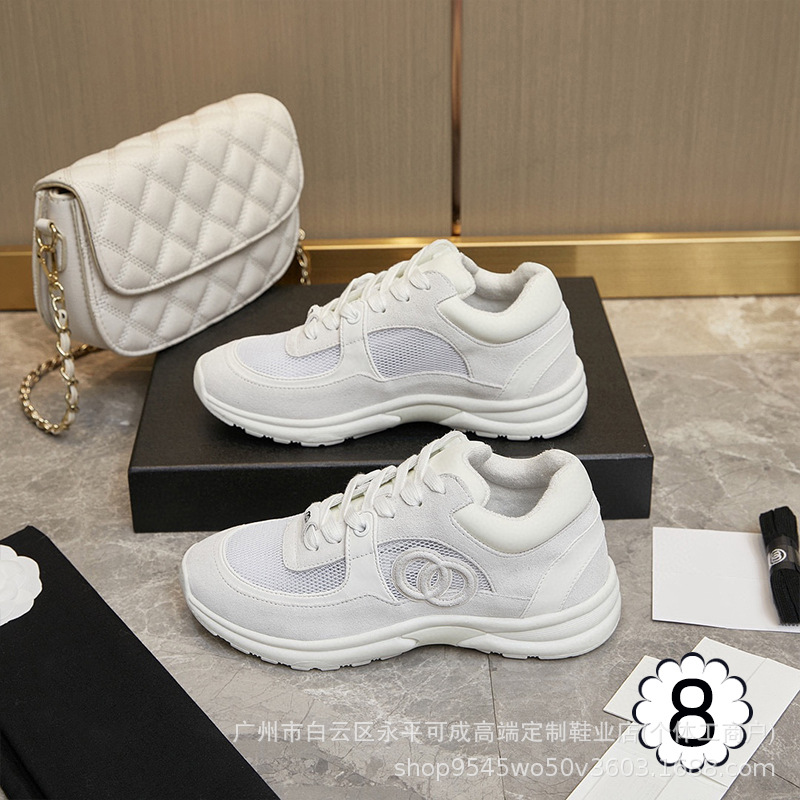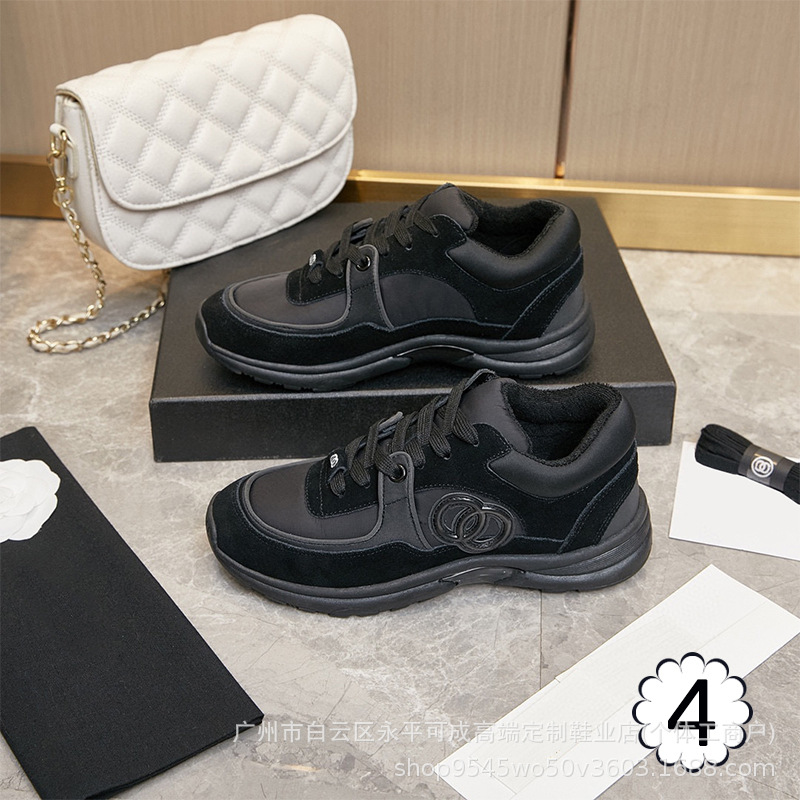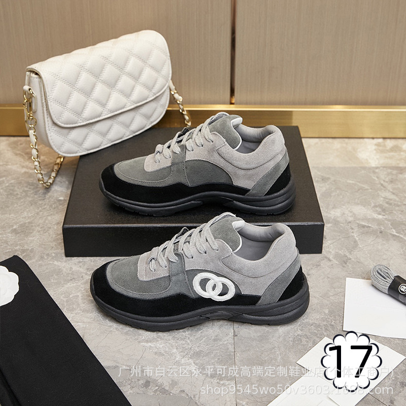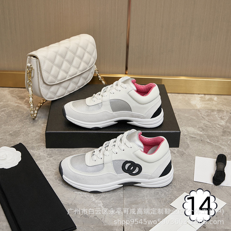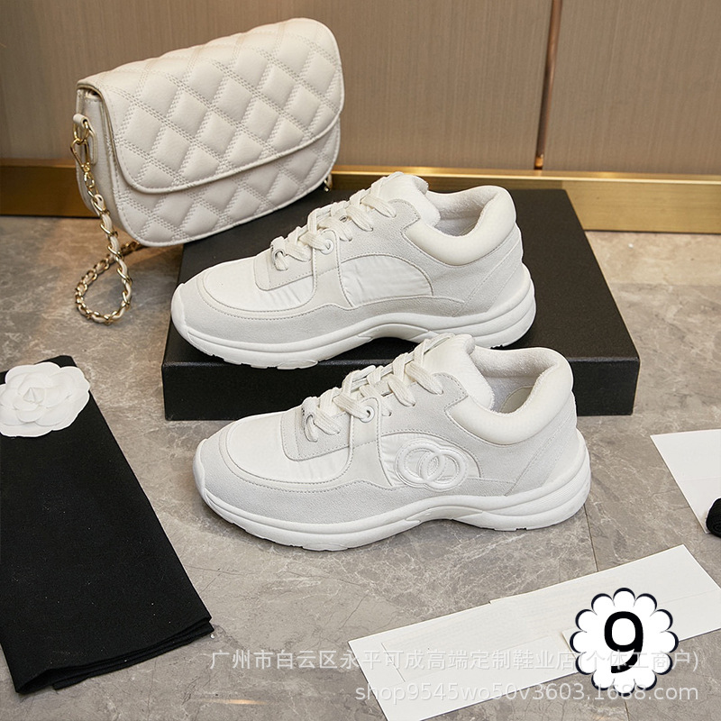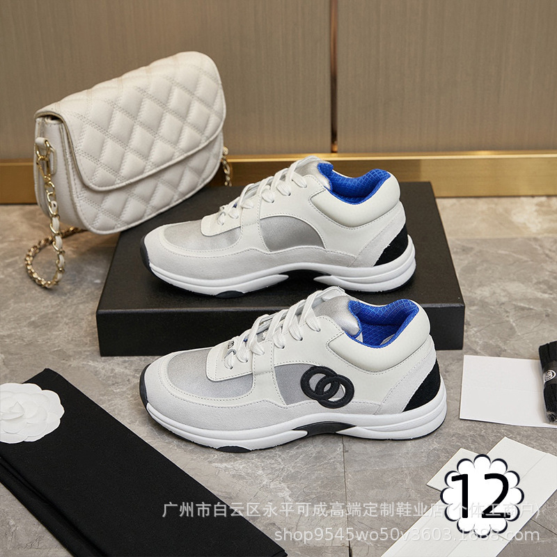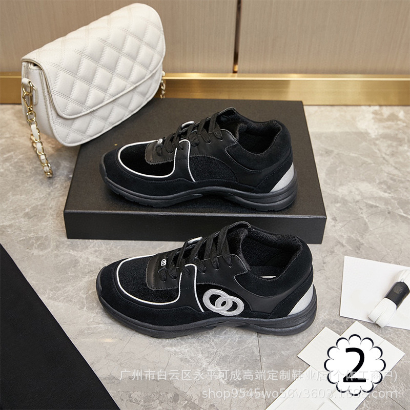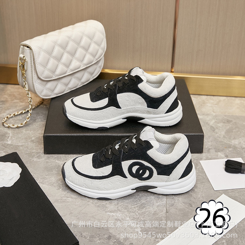 2023 새로운 스타일 샤넬 스타일 레이스 업 가죽 컬러 블록 운동화 캔버스 러닝 신발 커플 높이 증가 모든 매치 요가 신발스토어 가기