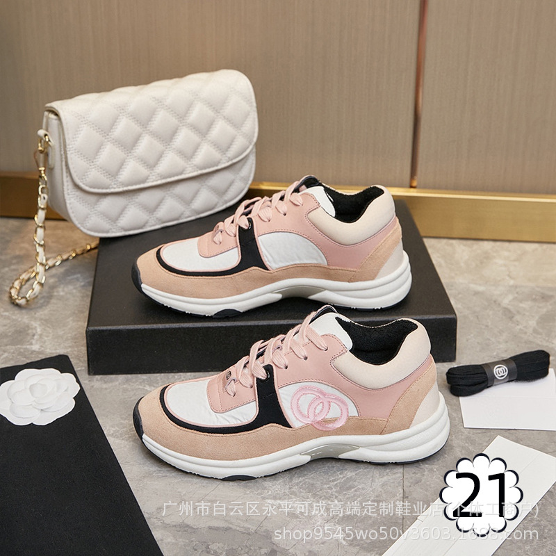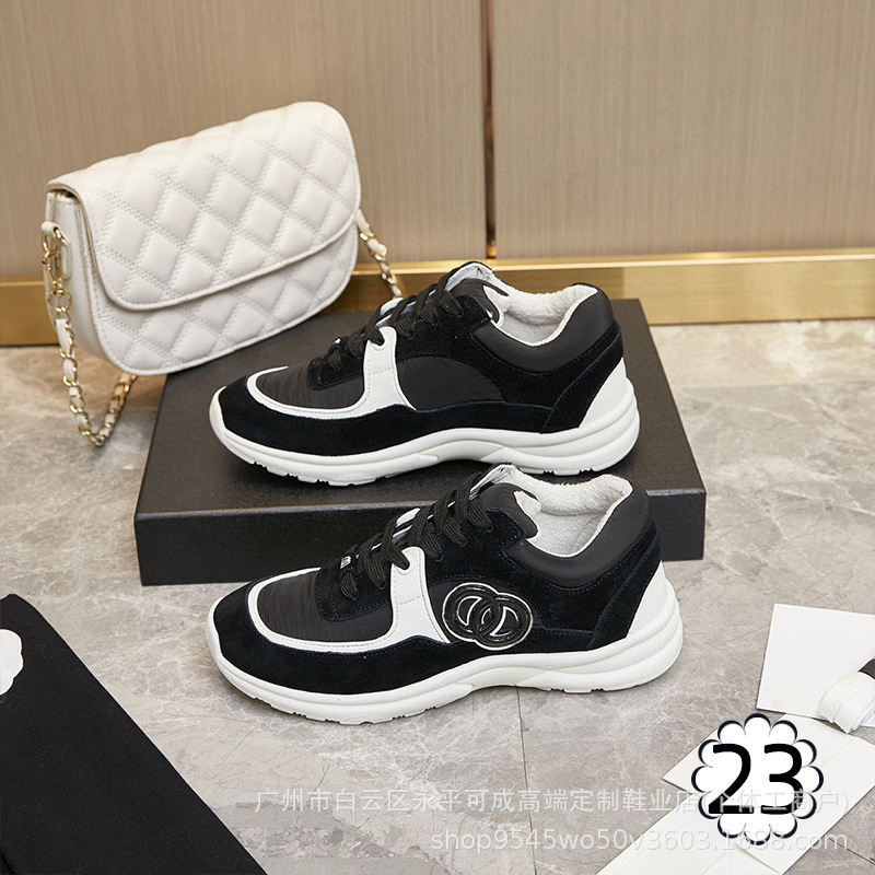 2023 새로운 스타일 샤넬 스타일 레이스 업 가죽 컬러 블록 운동화 캔버스 러닝 신발 커플 높이 증가 모든 매치 요가 신발