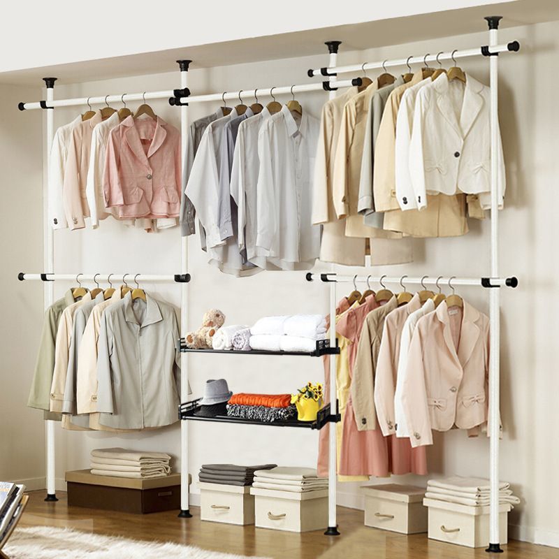 높은 탑 스탠드 옷 옷걸이 실내 다기능 옷 옷걸이 바닥 서 수직 프리 어셈블리 탄소 강철 프레임 옷장