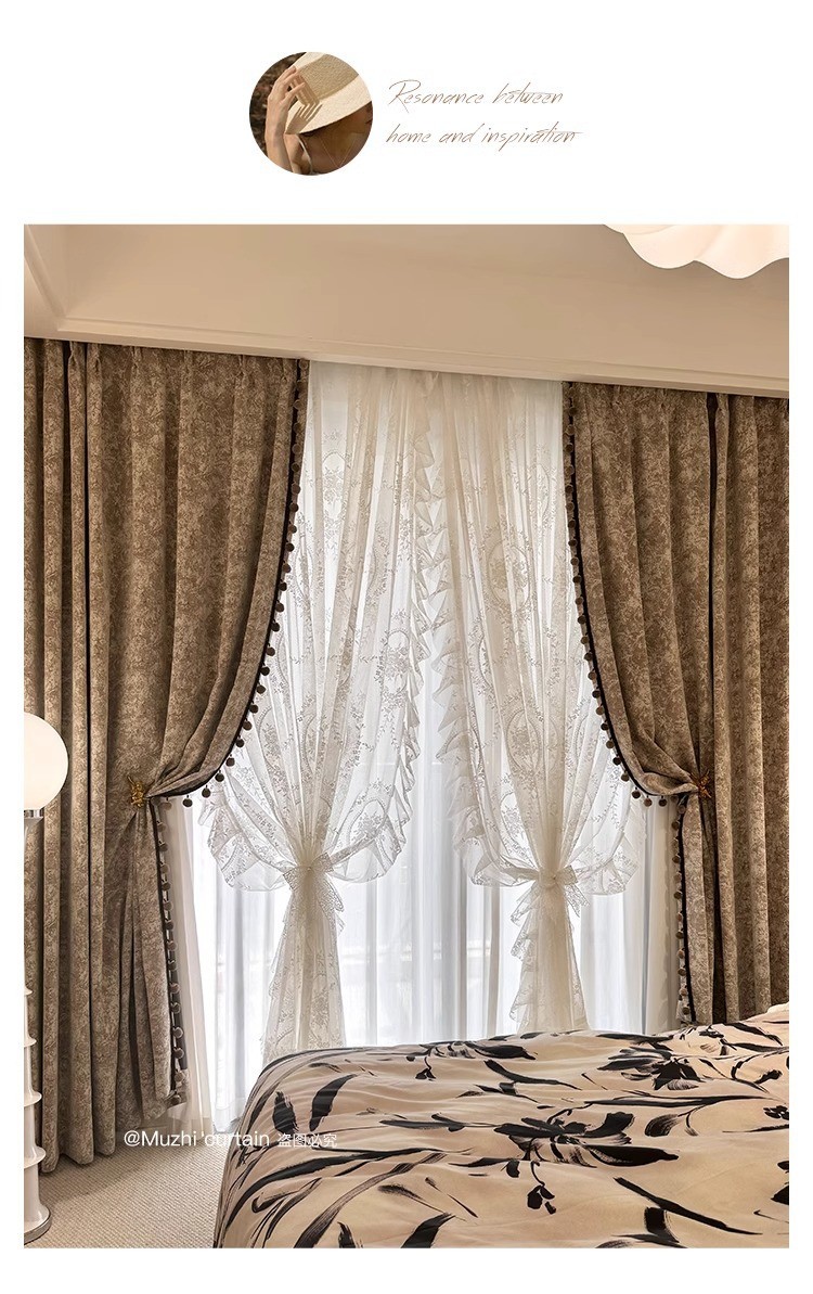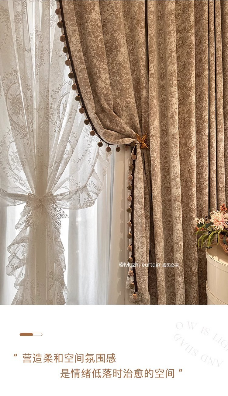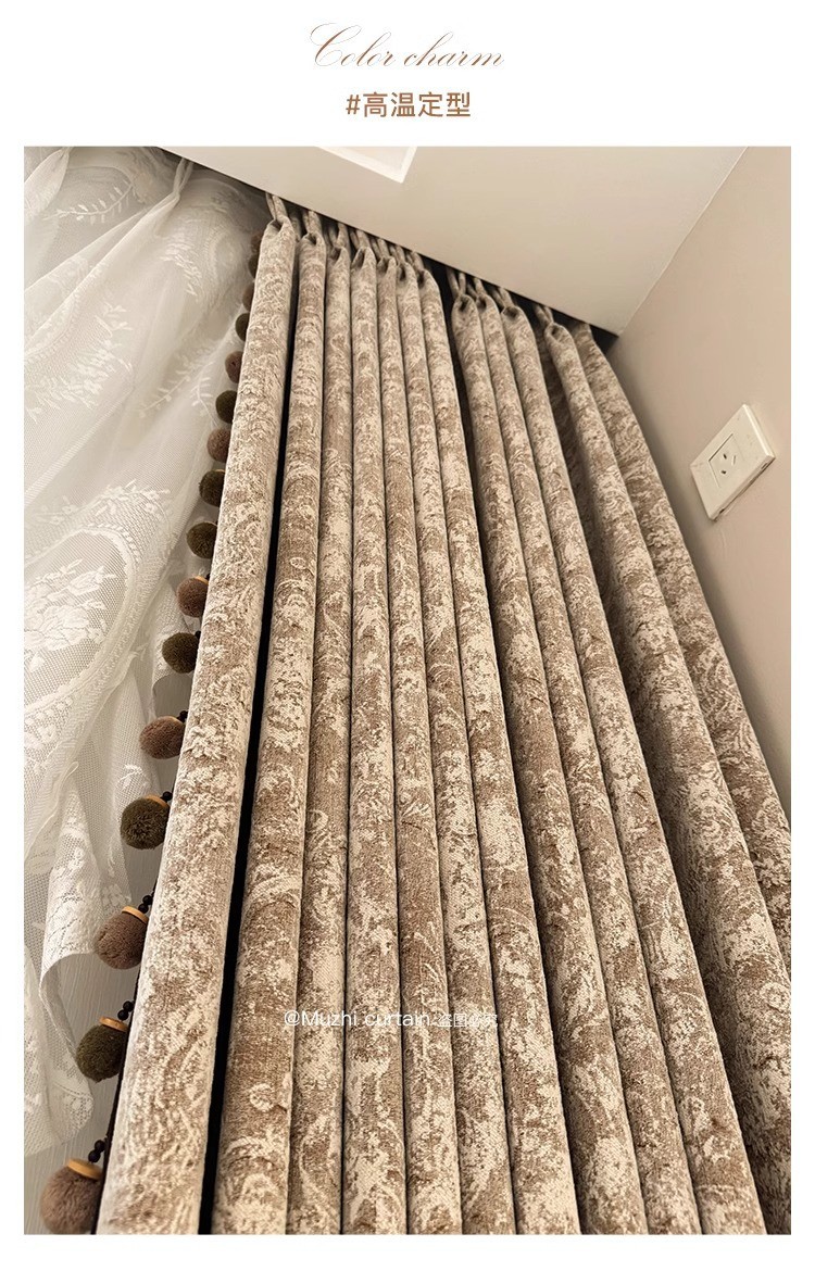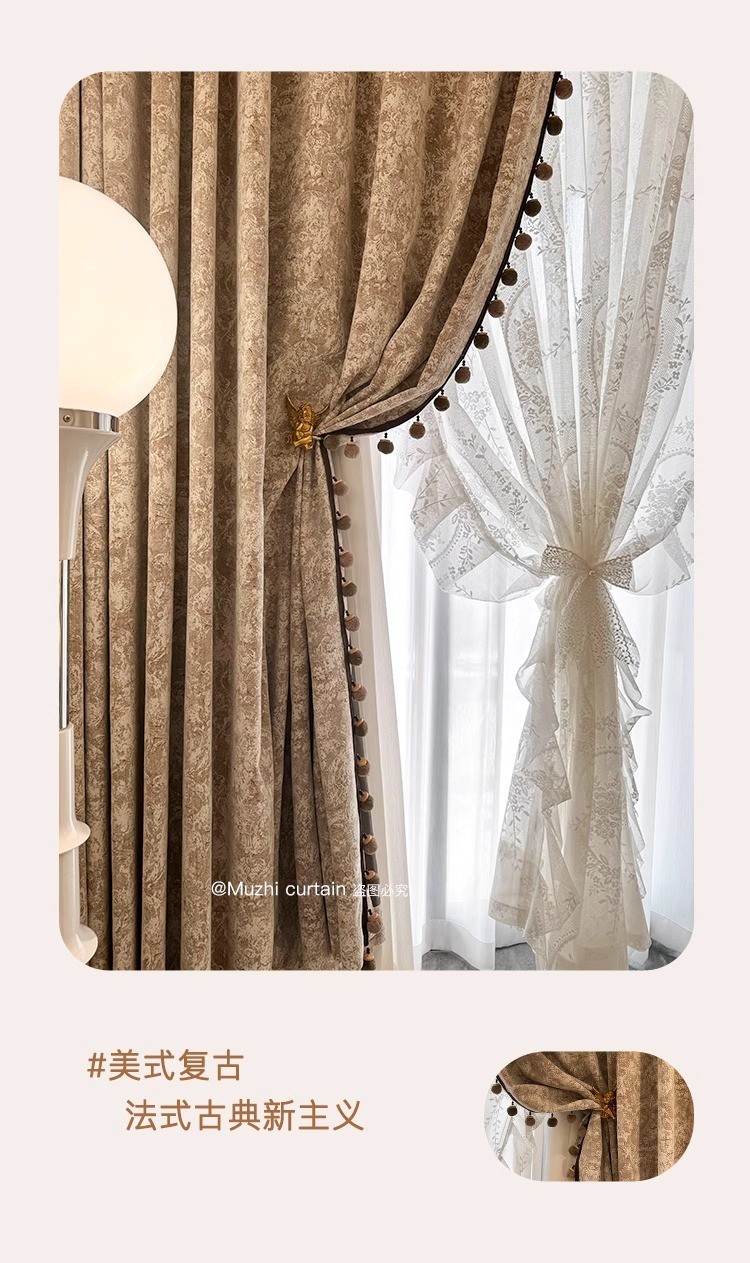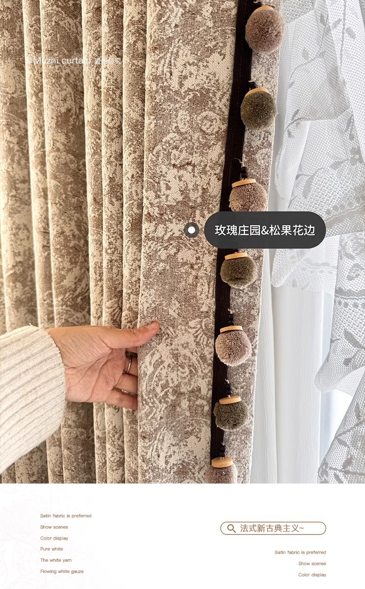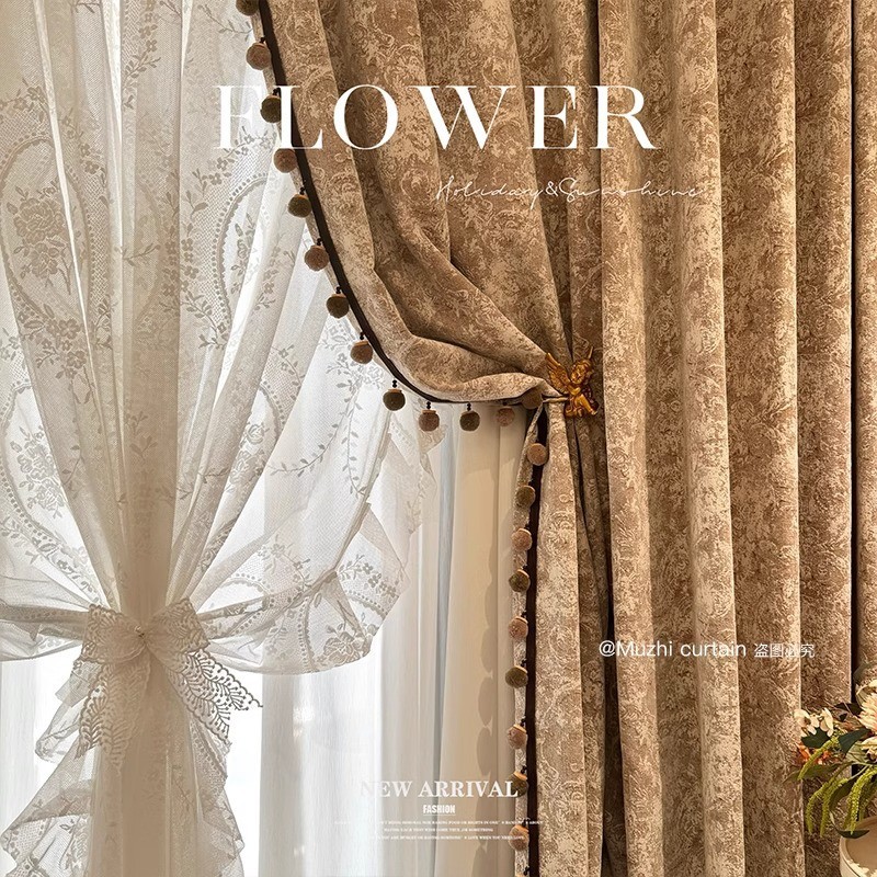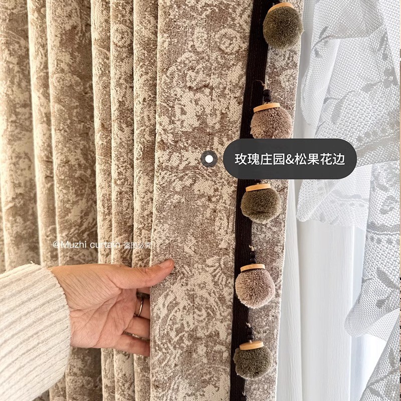 2025 새로운 미국 스타일의 복고풍 장미 매너 chenille 자카드 음영 전체 집 커튼 거실 침실 처리