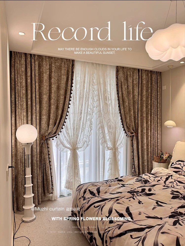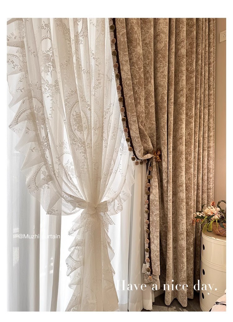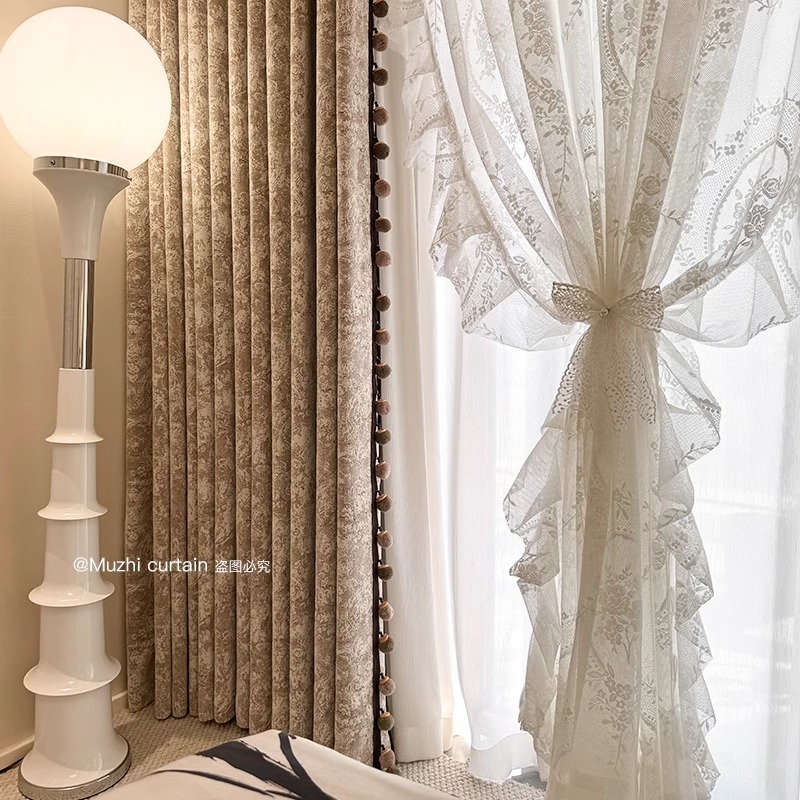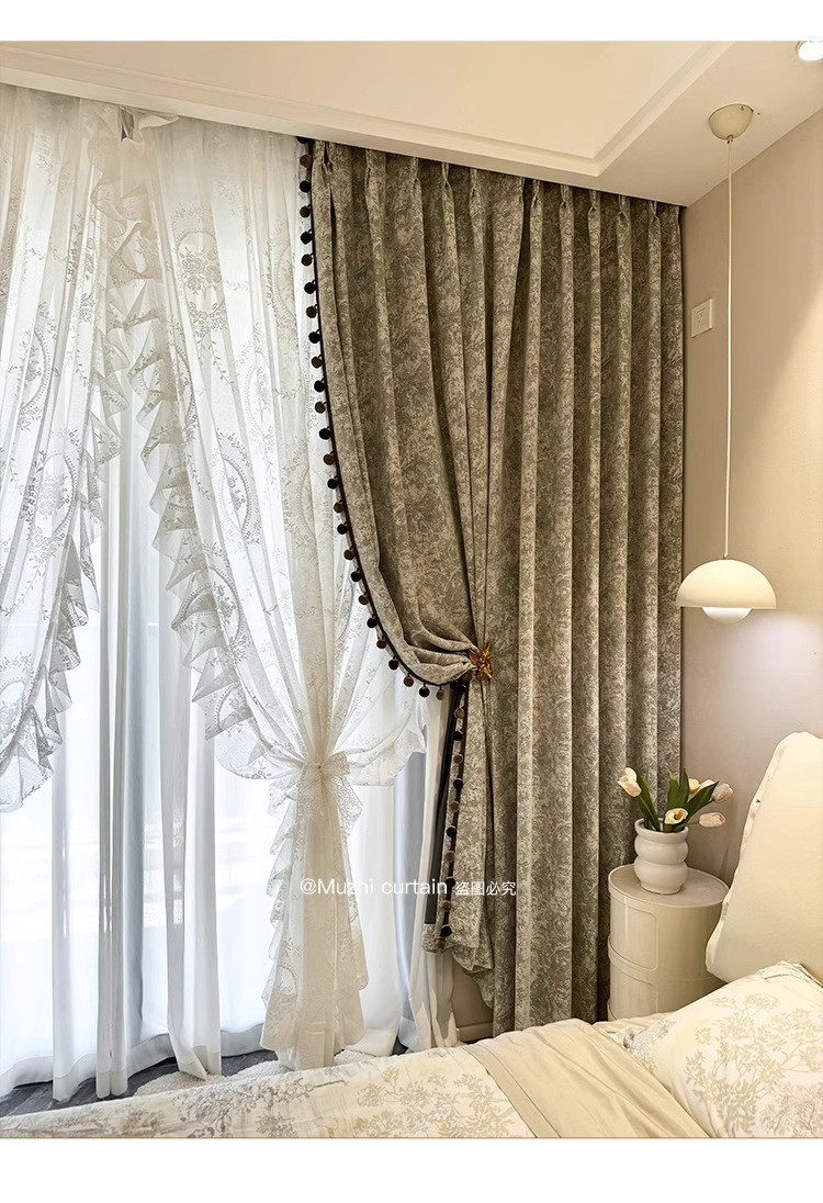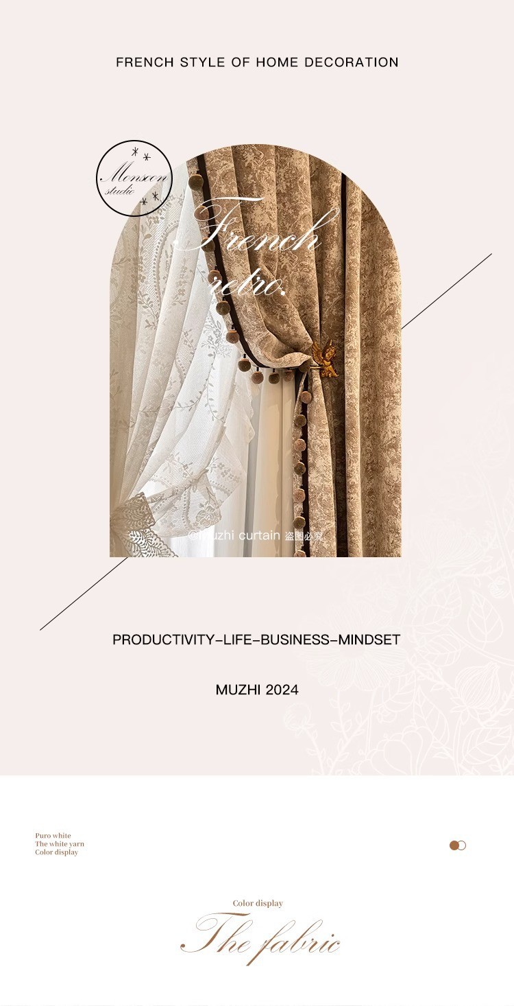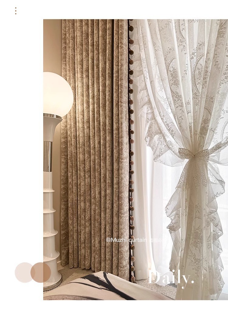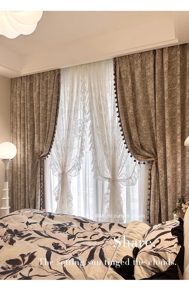 2025 새로운 미국 스타일의 복고풍 장미 매너 chenille 자카드 음영 전체 집 커튼 거실 침실 처리
