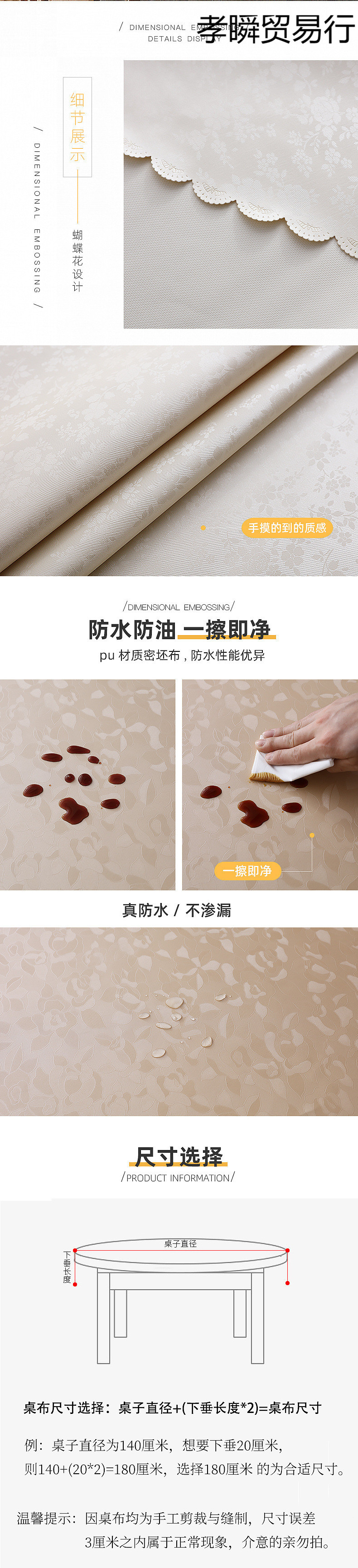 둥근 테이블 식탁보 방수 및 내유성 세탁 방지 가정용 식탁 매트 호텔 라운드 테이블 테이블 테이블 테이블 옷감스토어 가기