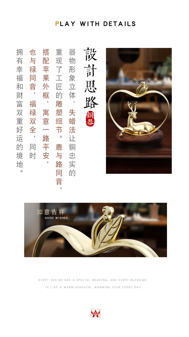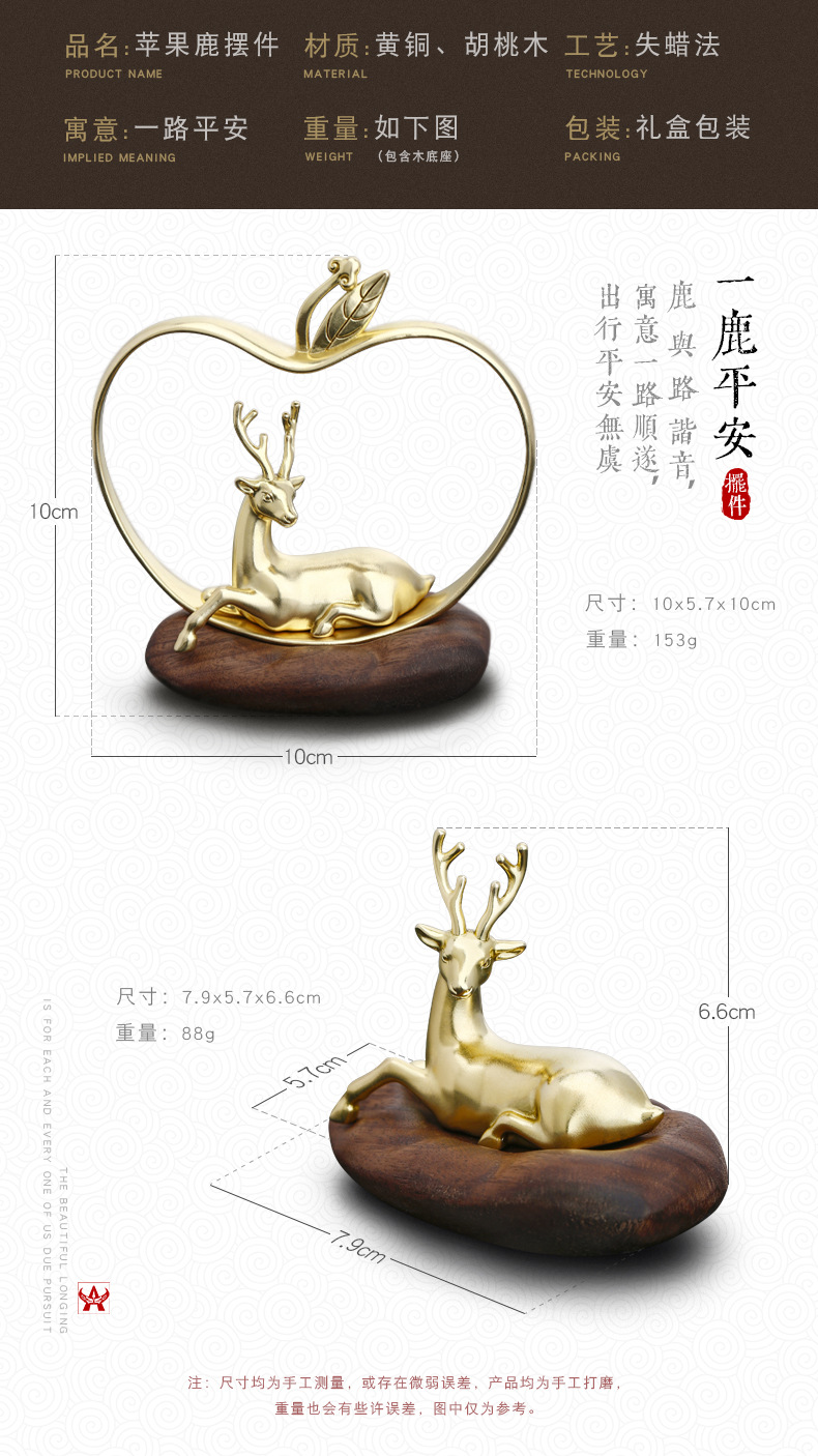안전한 여행 고급 자동차 장식품 황동 사슴 센터 콘솔 장식 하이 엔드 센스 자동차 자동차 창조적 인 인테리어