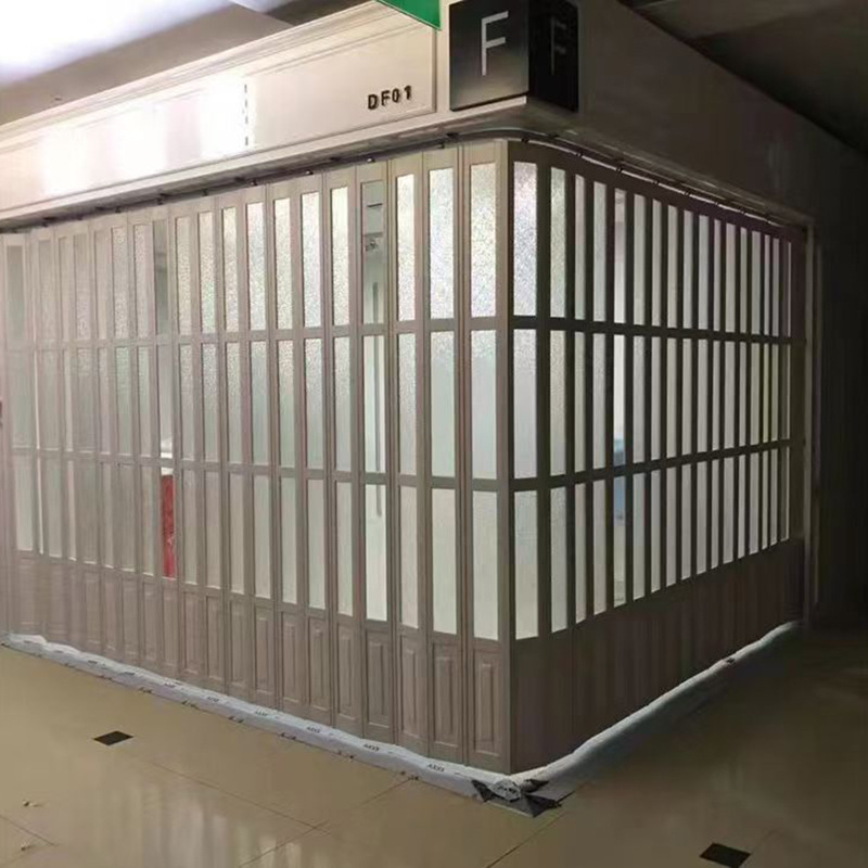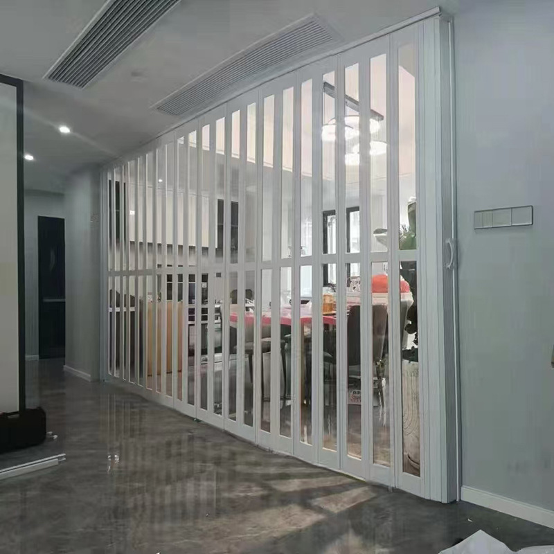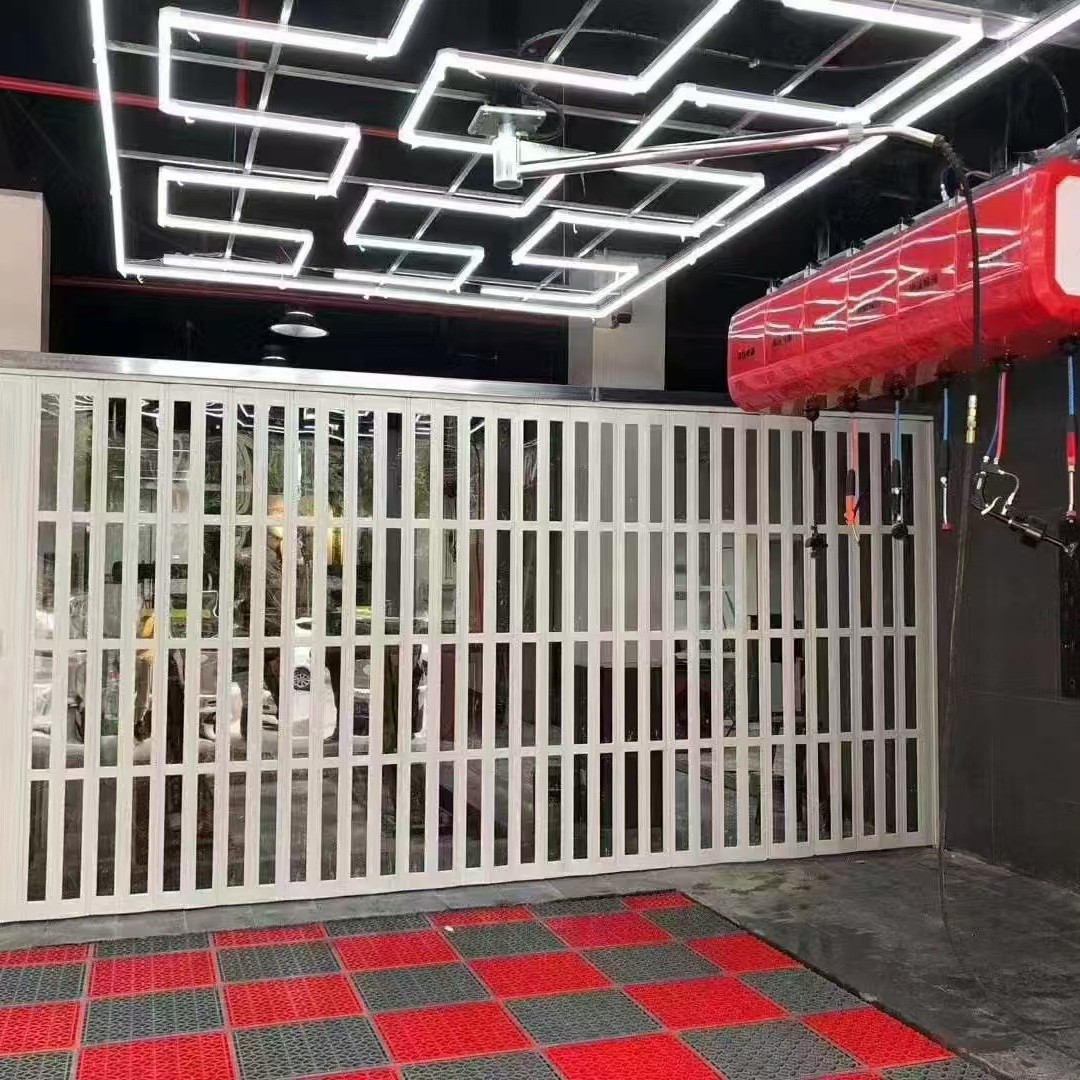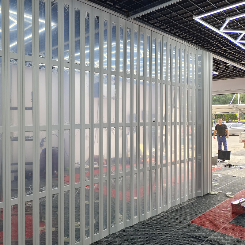 세차장 접이식 문 PVC 크리스탈 슬라이딩 문 상점 투명 크리스탈 접이식 문 천장 슬라이딩 트랙리스 블라인드 도어스토어 가기