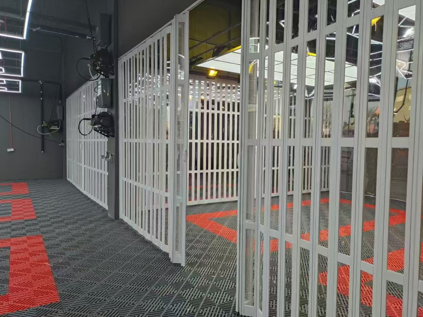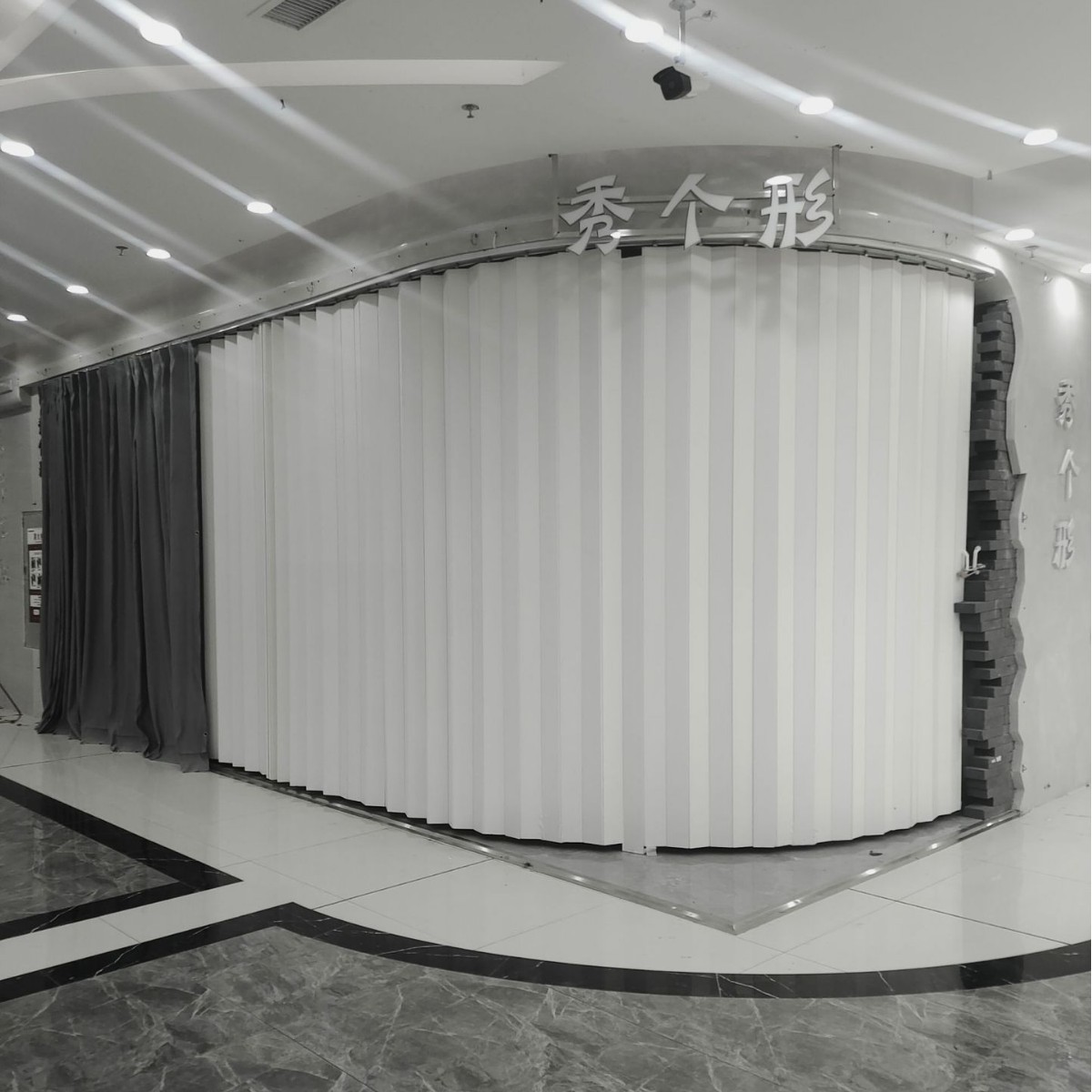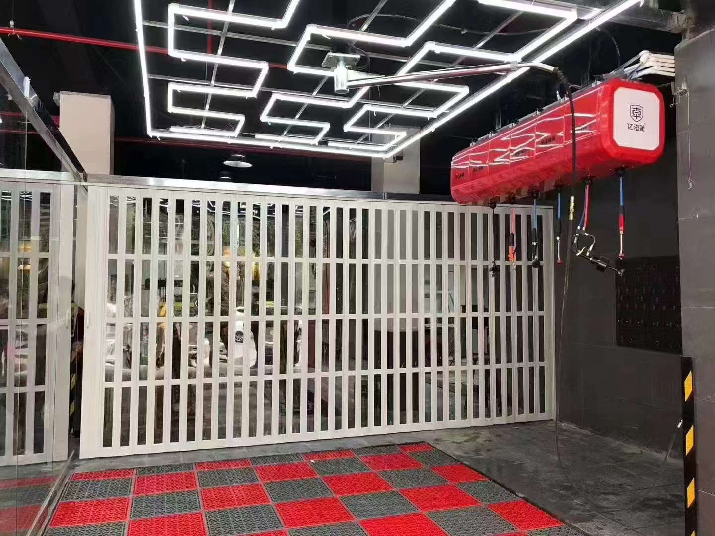 세차장 접이식 문 PVC 크리스탈 슬라이딩 문 상점 투명 크리스탈 접이식 문 천장 슬라이딩 트랙리스 블라인드 도어스토어 가기