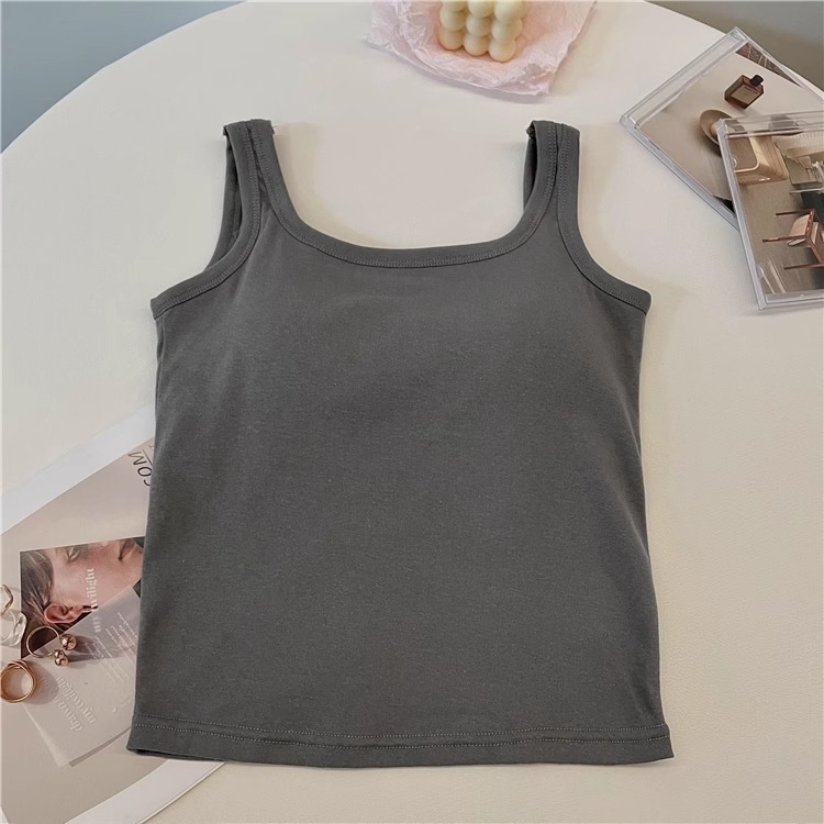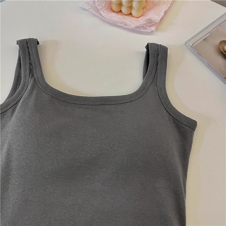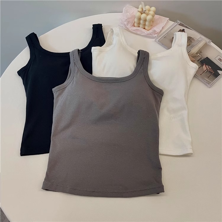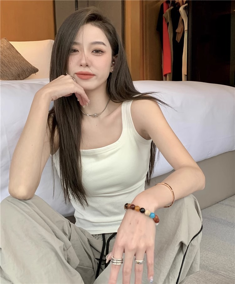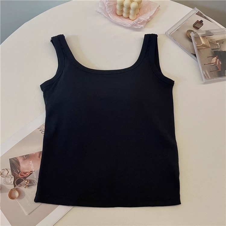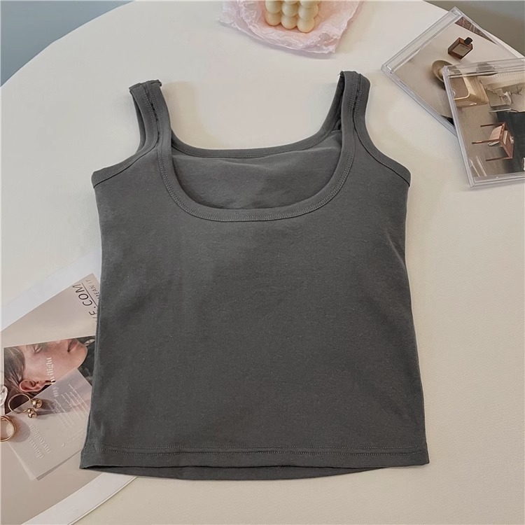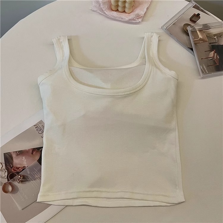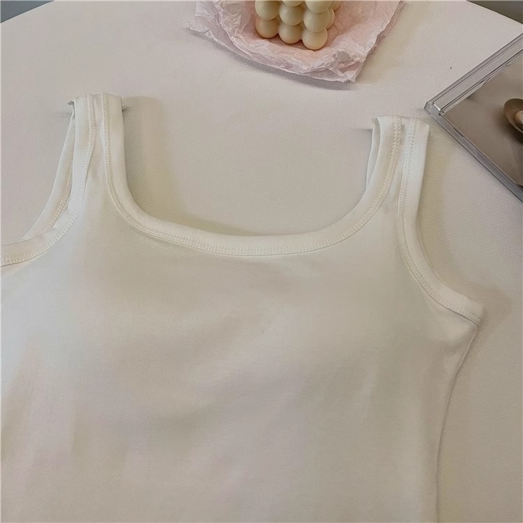 여름 솔리드 컬러 넓은 어깨 조끼 가슴 패드와 아름다운 뒷면 슬림 핏 민소매 내부와 외부 착용베이스 쇼트 탑스토어 가기