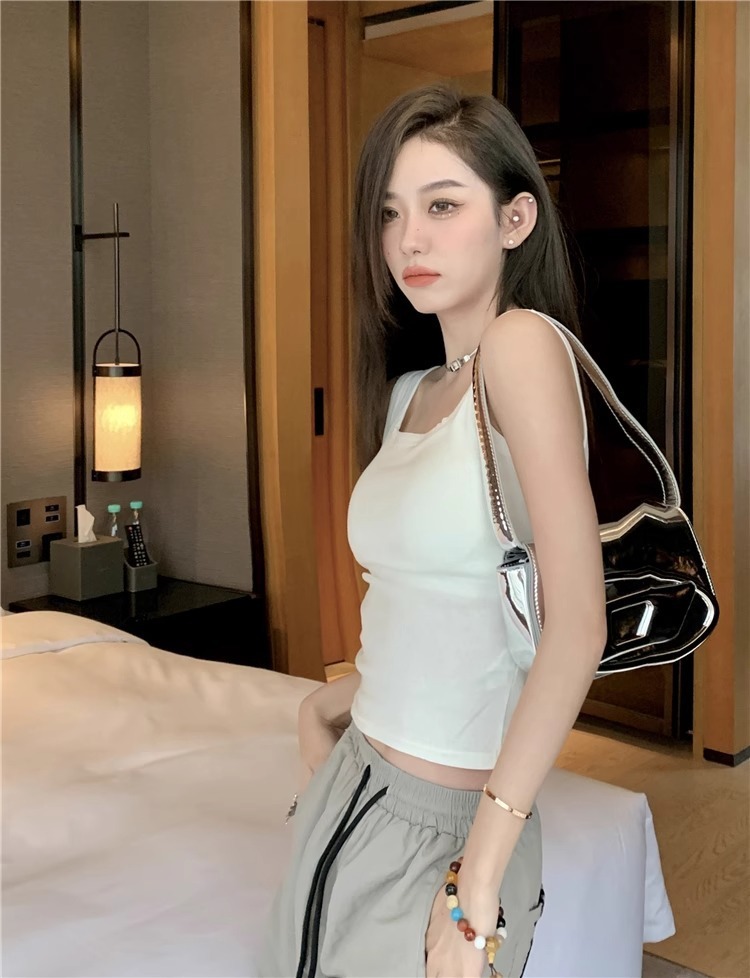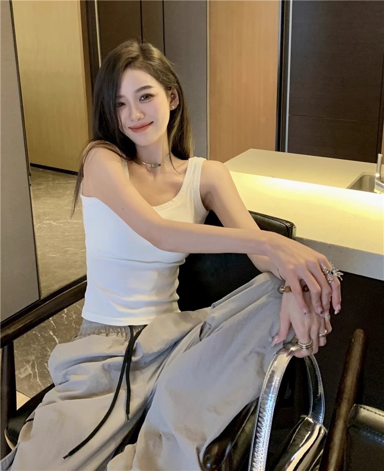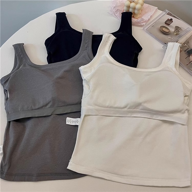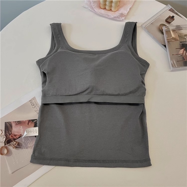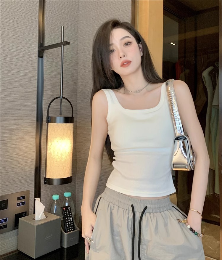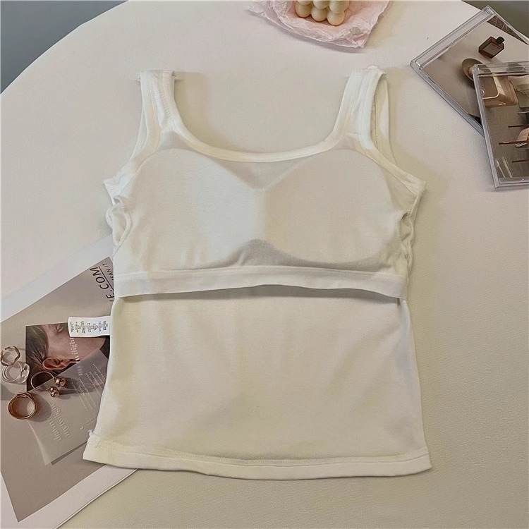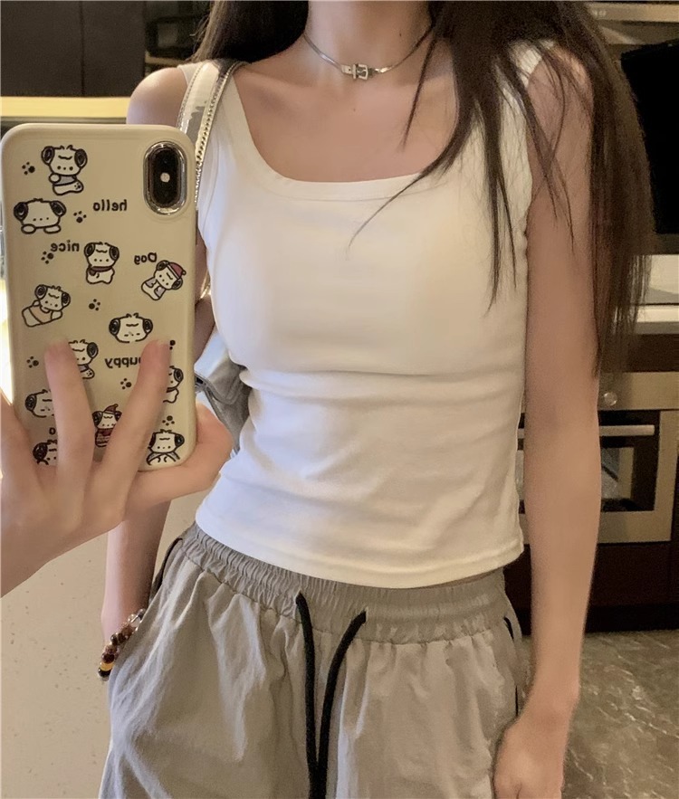 여름 솔리드 컬러 넓은 어깨 조끼 가슴 패드와 아름다운 뒷면 슬림 핏 민소매 내부와 외부 착용베이스 쇼트 탑스토어 가기