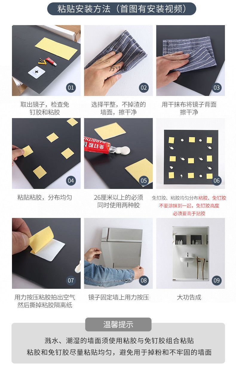 욕실 거울 벽에 붙어있는 구멍이없는 방폭 직사각형 욕실 벽걸이 거울 거울 거울 인터넷-유명한 화장품 거울스토어 가기