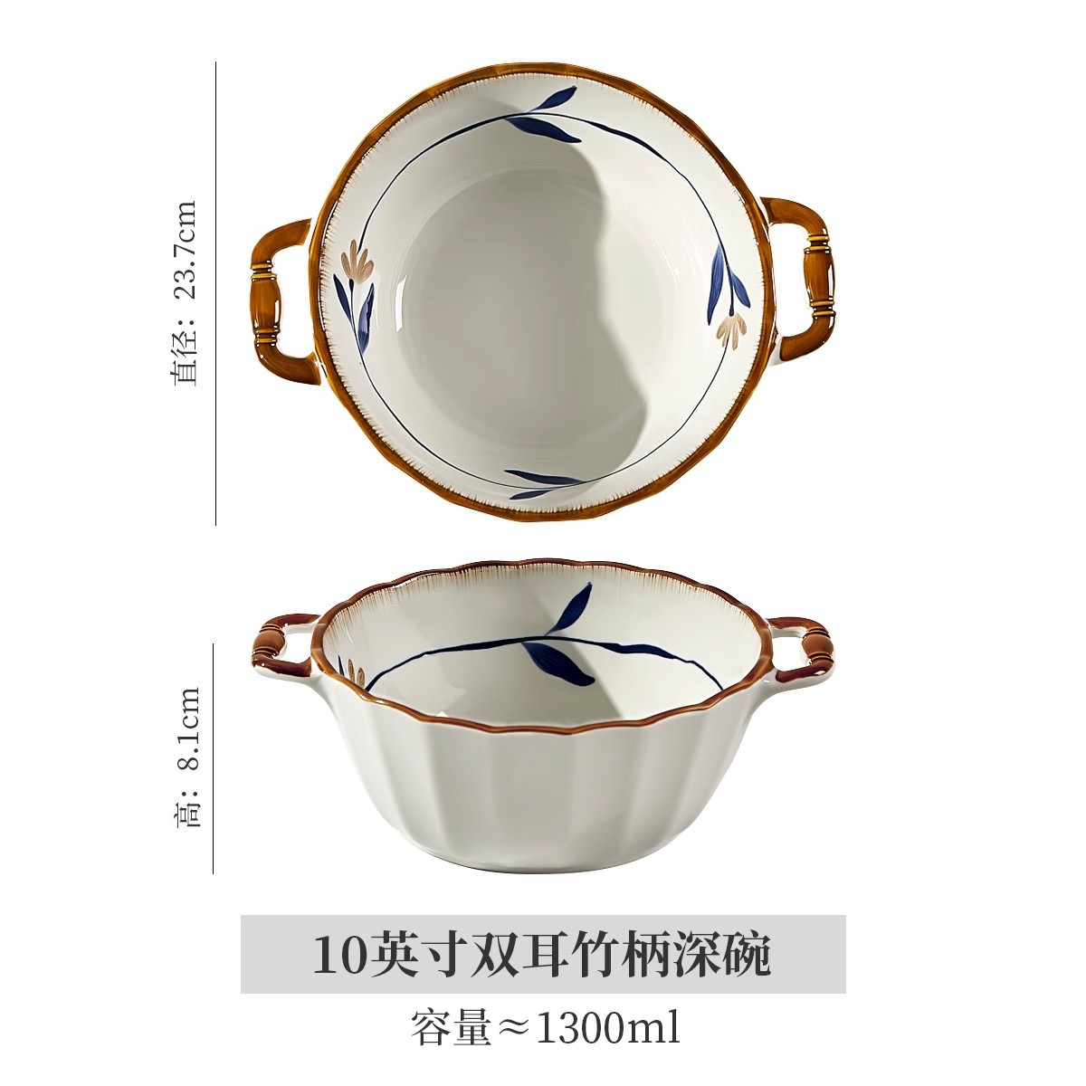 • Lantingxu 10inch 이중 귀 대나무 손잡이 깊은 그릇